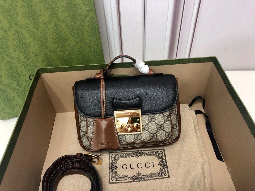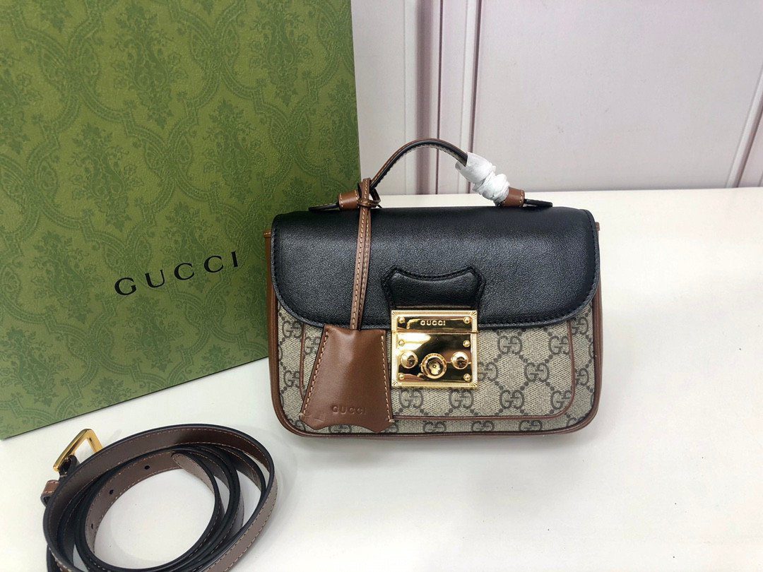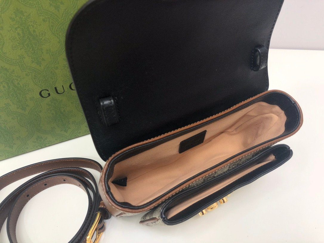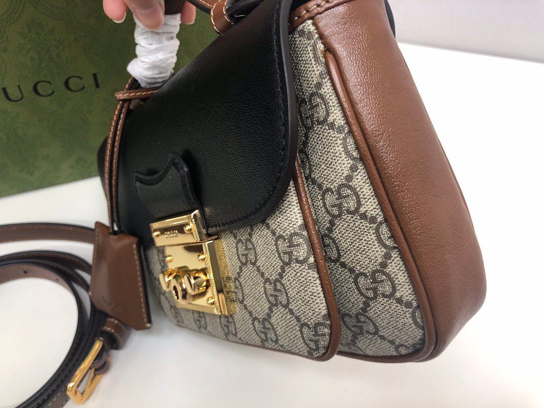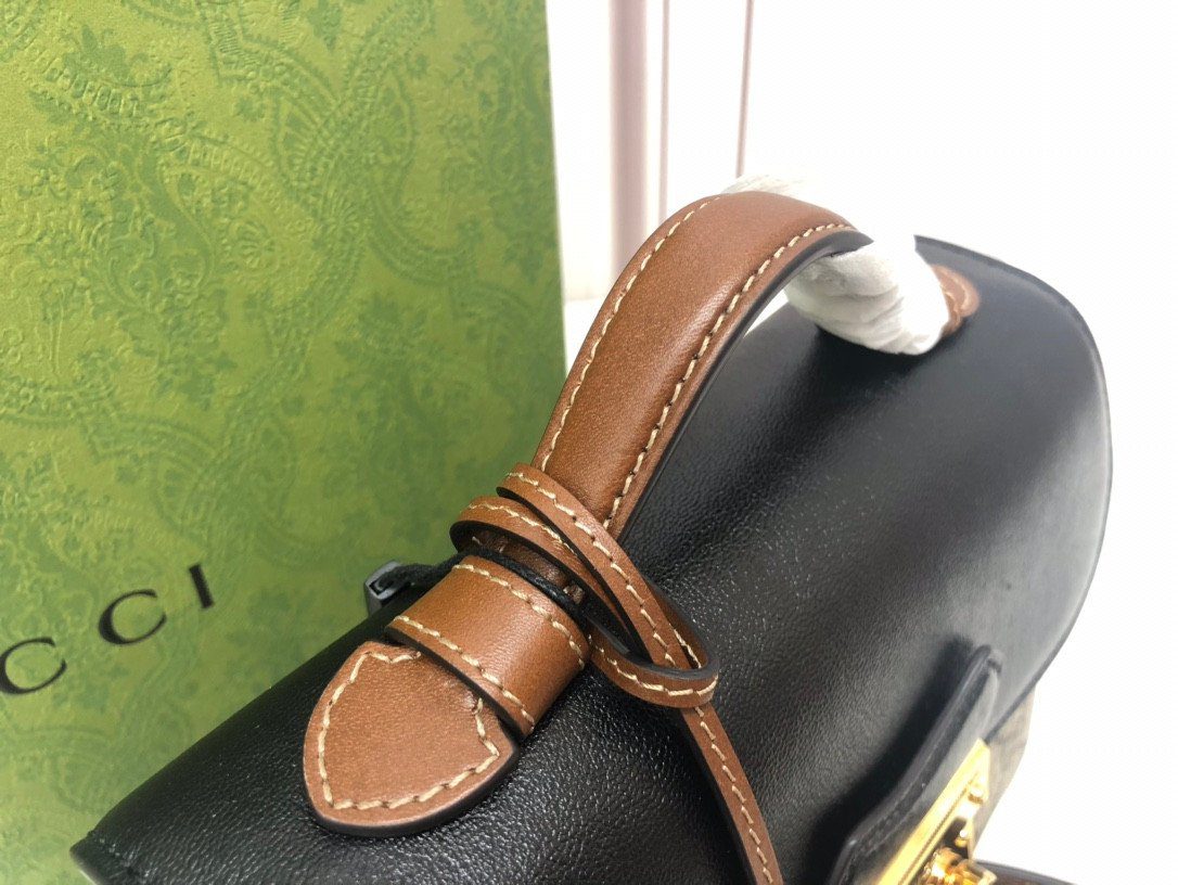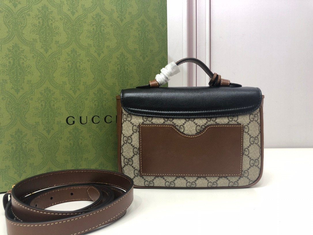 **精湛工艺,标志性撞色** 这款包袋严格遵循至臻标准打造,选用优质的“原厂级”皮革材质,确保了卓越的耐用性与奢华的触感。在设计上,它巧妙地将品牌标志性的米色与乌木色 GG Supreme 帆布,与光滑细腻的黑色皮革翻盖形成了美妙的撞色对比。包身四周饰以浓郁的棕色皮革滚边,优雅地勾勒出包袋轮廓,在增添层次感的同时,也注入了一抹复古怀旧的韵味。