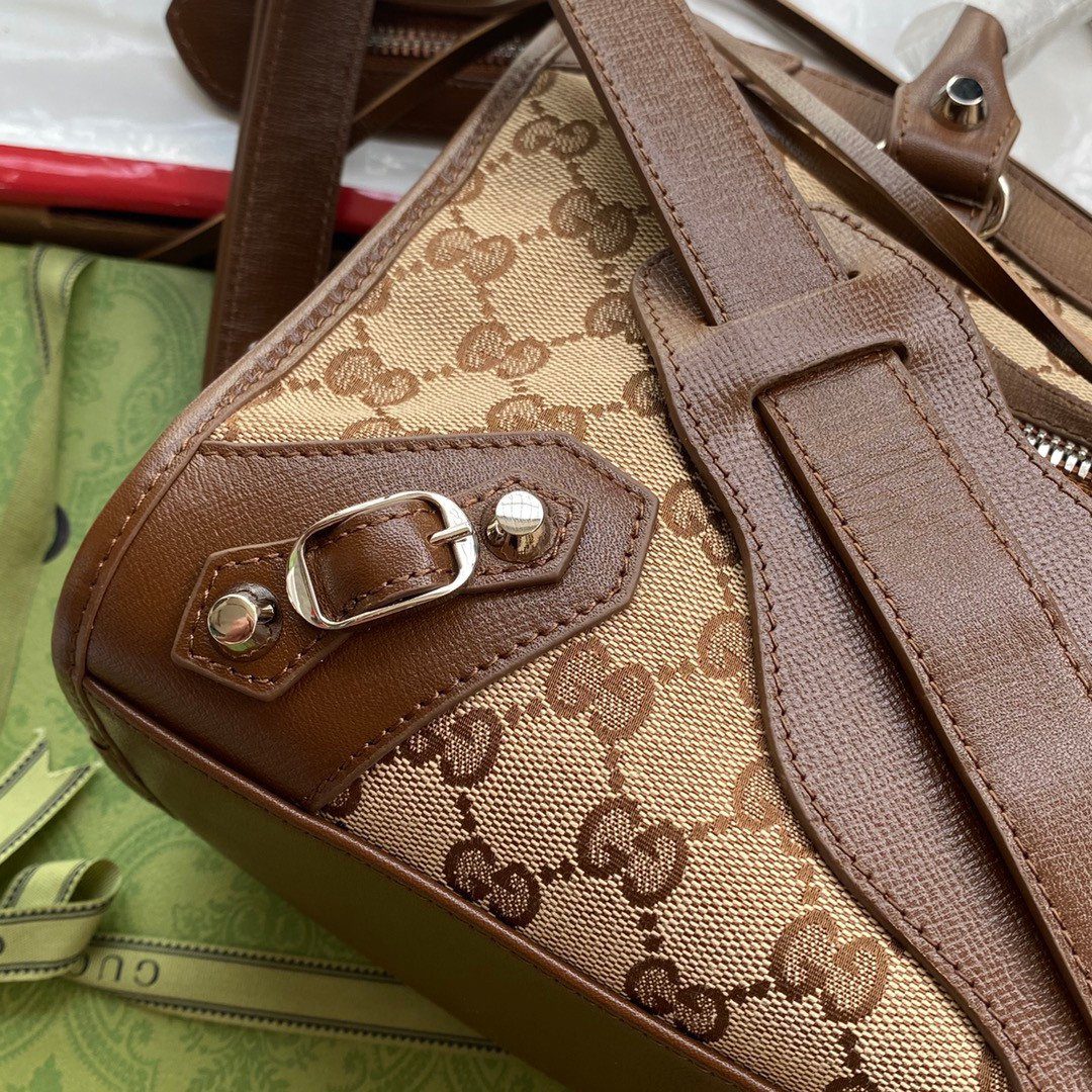 **风格的传奇融合** 这次联名合作将两大品牌最具辨识度的元素无缝融合,打造出令人惊喜且充满巧思的设计。它沿袭了 Balenciaga 经典机车包那传奇且前卫的包身轮廓,并将其完全包裹在 Gucci 极具历史底蕴的米色与乌木色 GG Supreme 帆布之中。