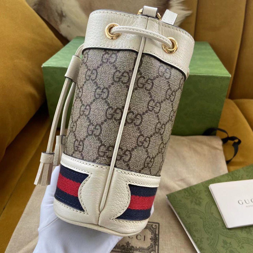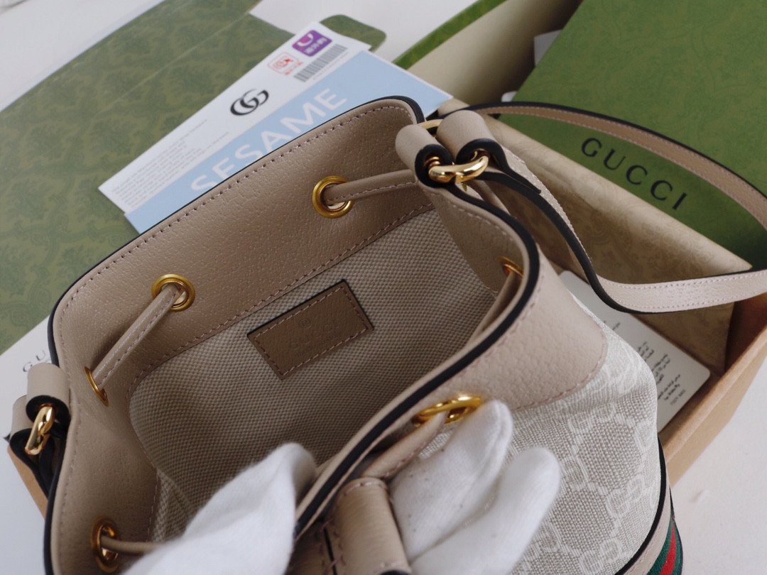 向您的客户隆重推介本系列的最新力作——Gucci Ophidia Nano 水桶包,这堪称终极的“造型神器”。这款小巧精致且备受追捧的包型,完美诠释了奢华高雅的格调,并醒目地展示了品牌标志性的双G Monogram 图案。