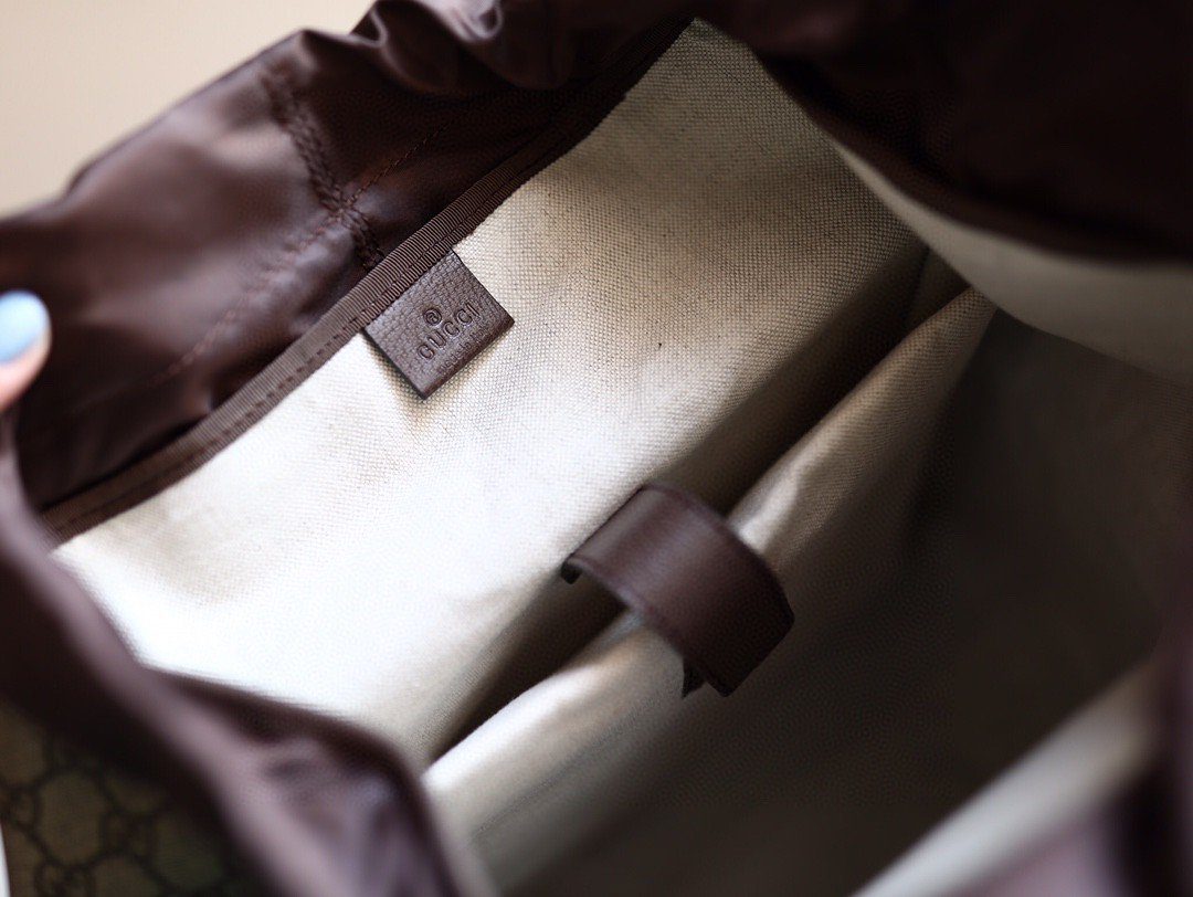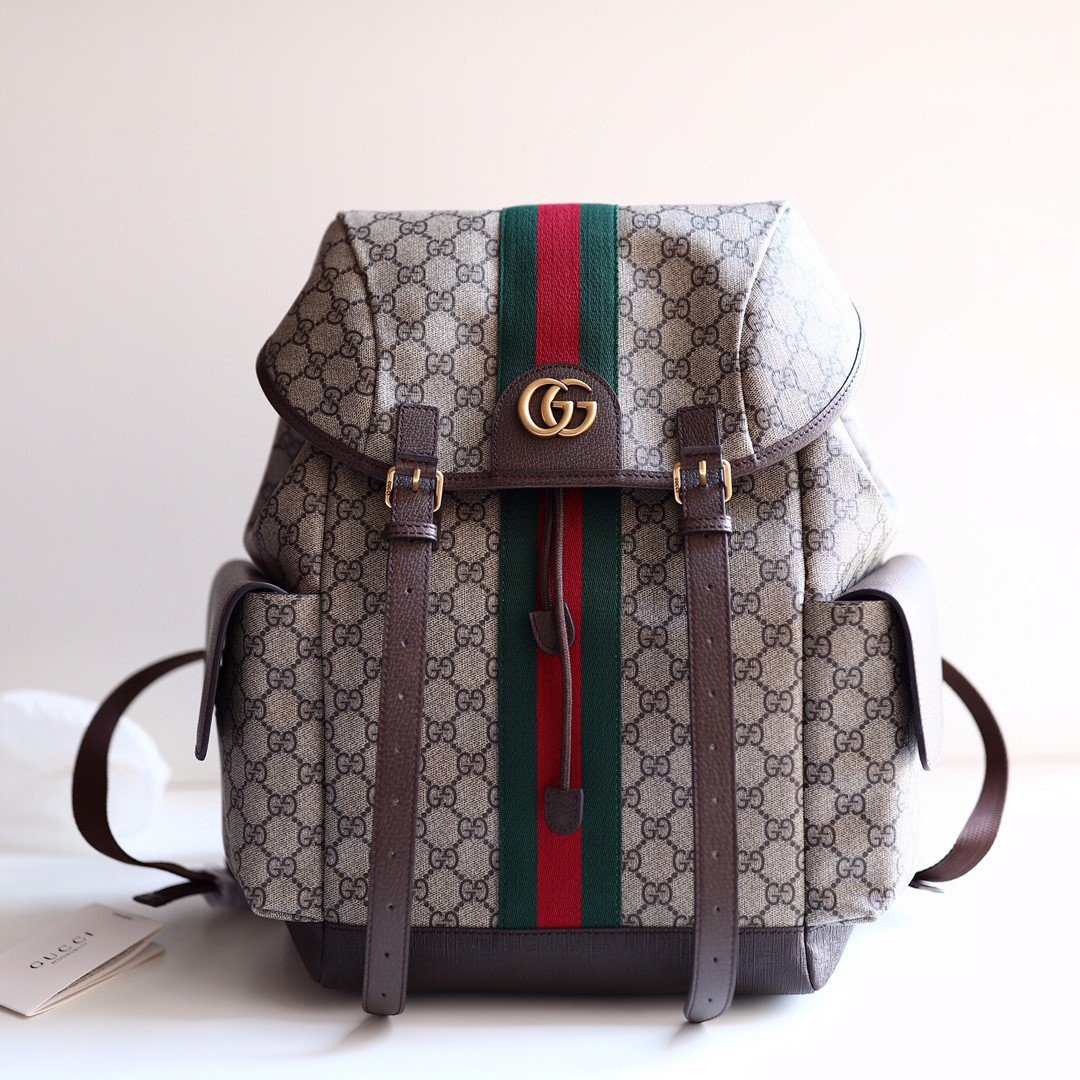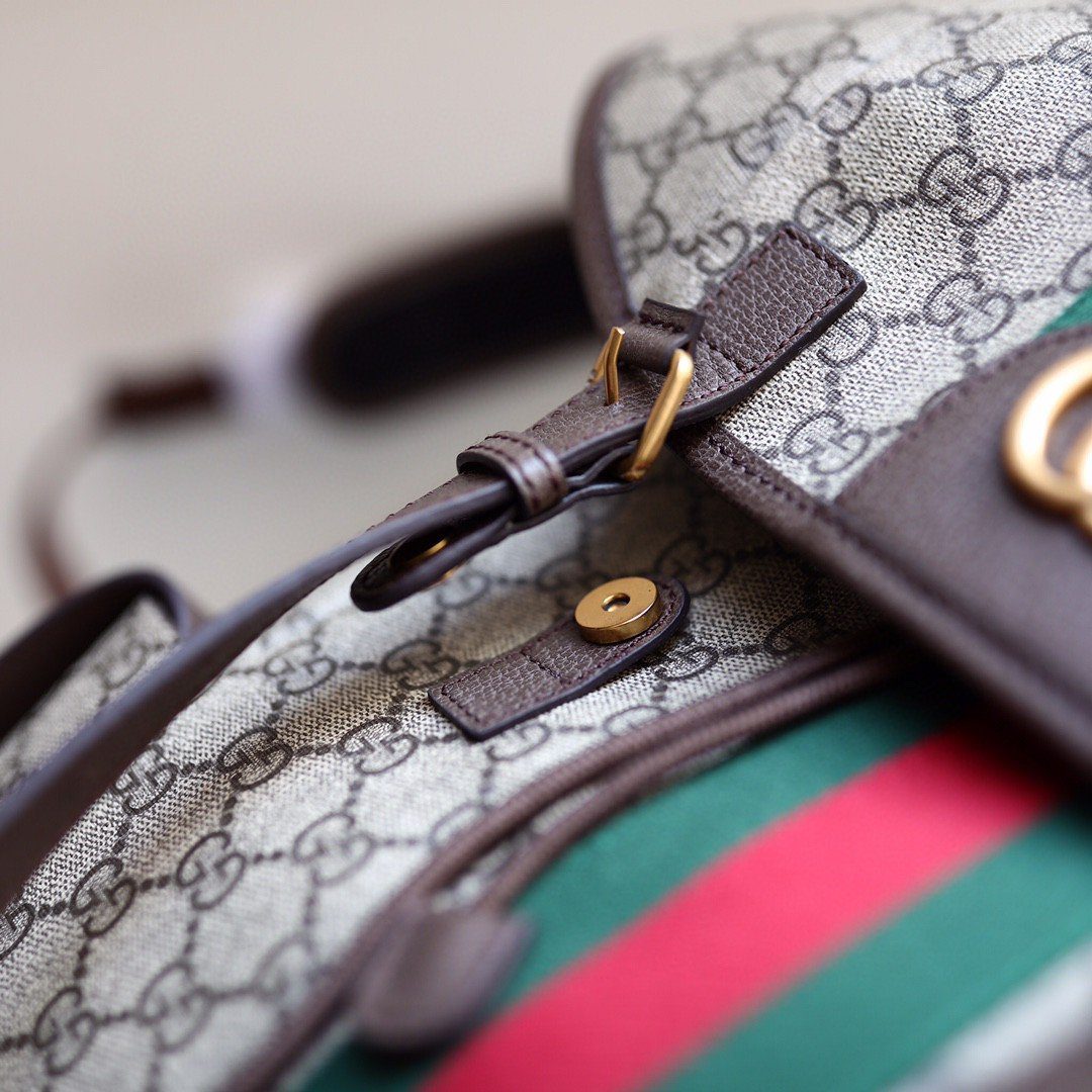 **标志性细节与精湛工艺** 这款包袋完美融合了品牌两大最具辨识度的标志性元素,缔造出经典的组合:历史悠久的 GG 字母交织图案,以及标志性的红绿条纹织带(Web)。包身选用耐磨的 GG Supreme 帆布制成,边缘、底部及肩带处均饰以质感细腻的高级棕色皮革滚边,令整体外观更显尊贵典雅。包身前翻盖中央镶嵌着该系列标志性的“双 G”金属配件,这一经典图腾贯穿于整个 Ophidia 系列之中,成为其一以贯之的设计主题。