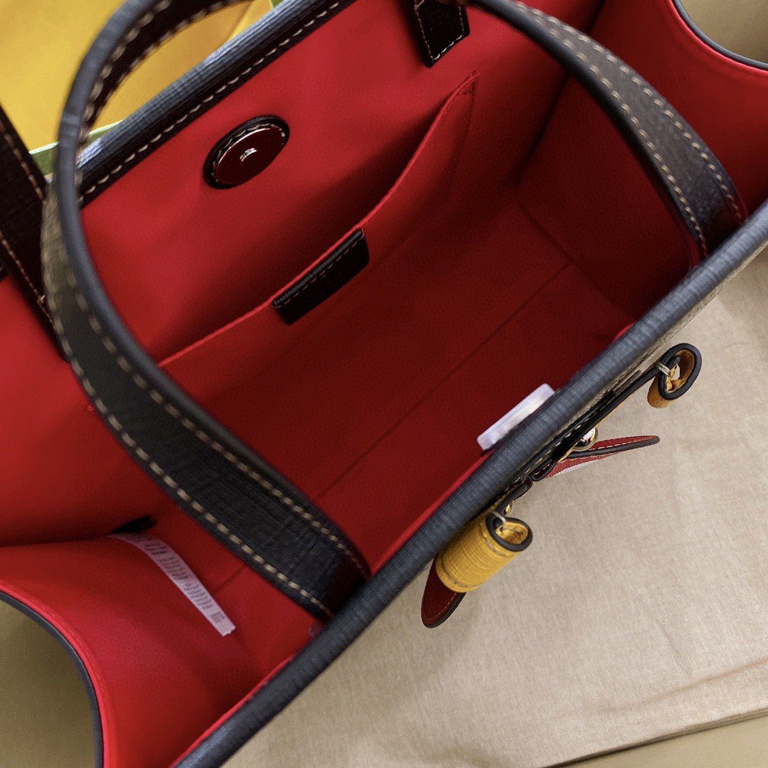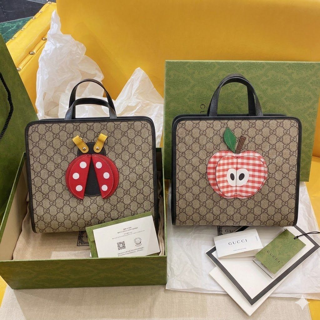 **标志性帆布与俏皮 3D 细节** 这款包袋选用品牌标志性的、极具耐磨特性的经典 GG Supreme 老花帆布精心打造,呈现出结构挺括且充满复古韵味的基础轮廓。包身边缘由坚韧的黑色皮革饰边优雅勾勒,搭配圆润的皮革手柄,确保手提时倍感舒适。