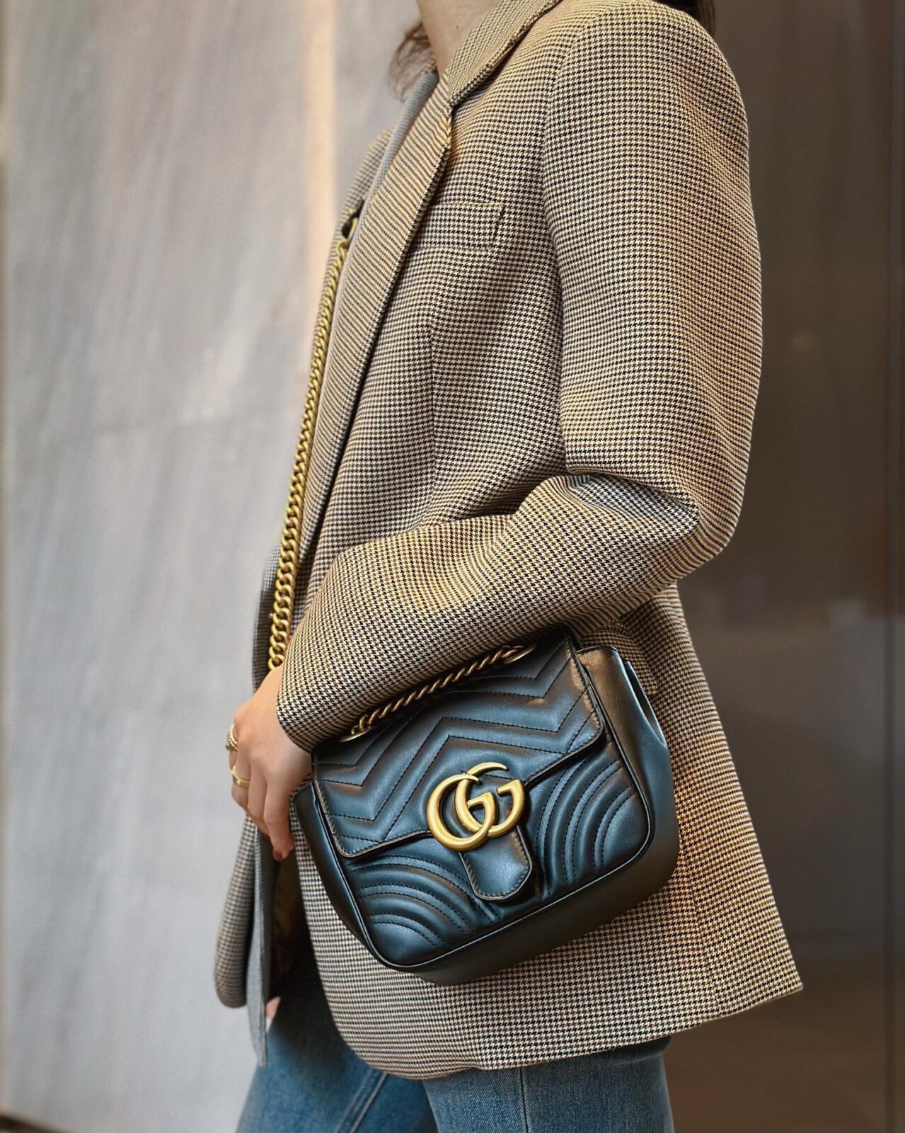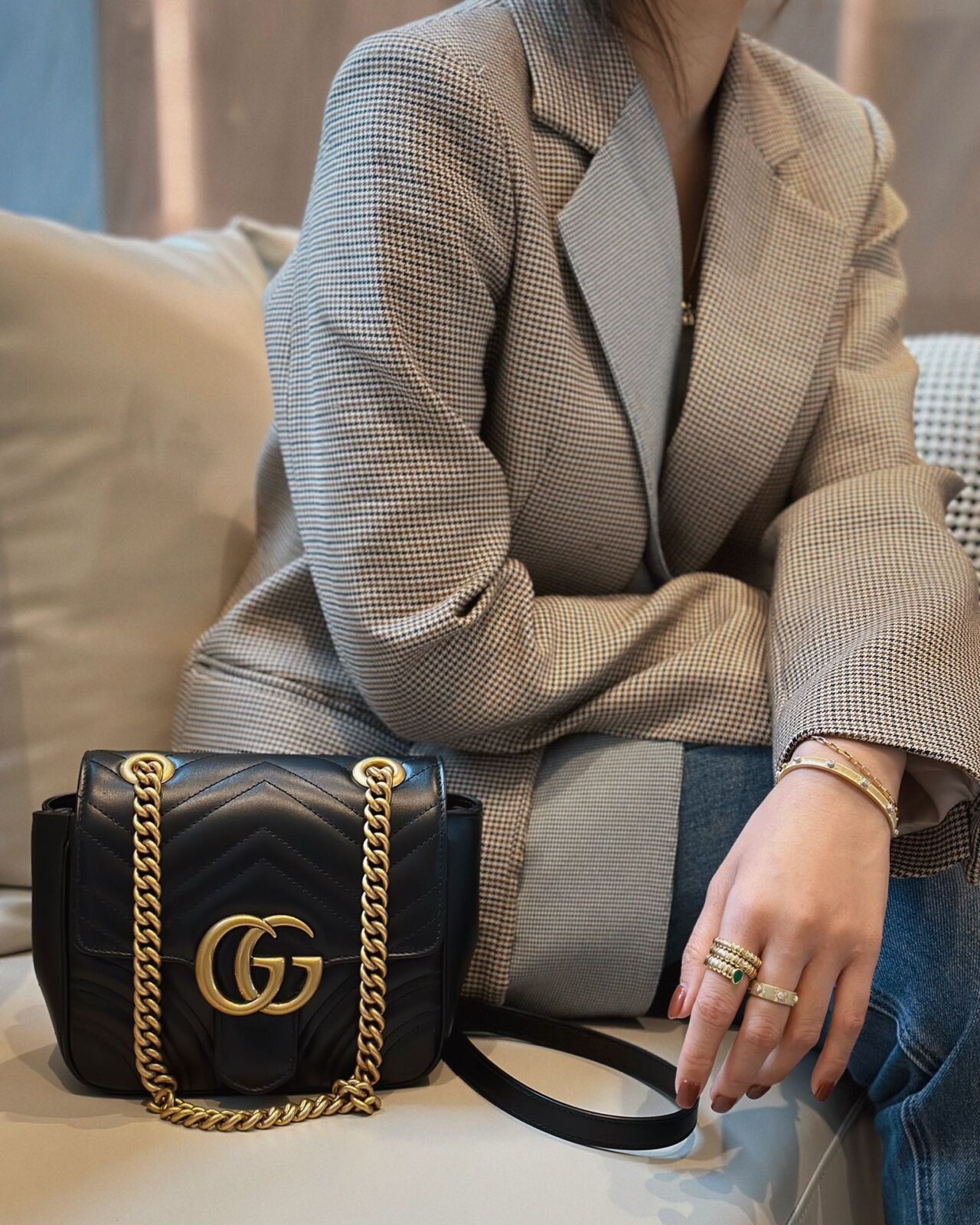 核心设计元素:V形绗缝工艺,复古金色双G(Double G)金属配件