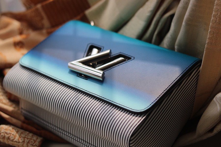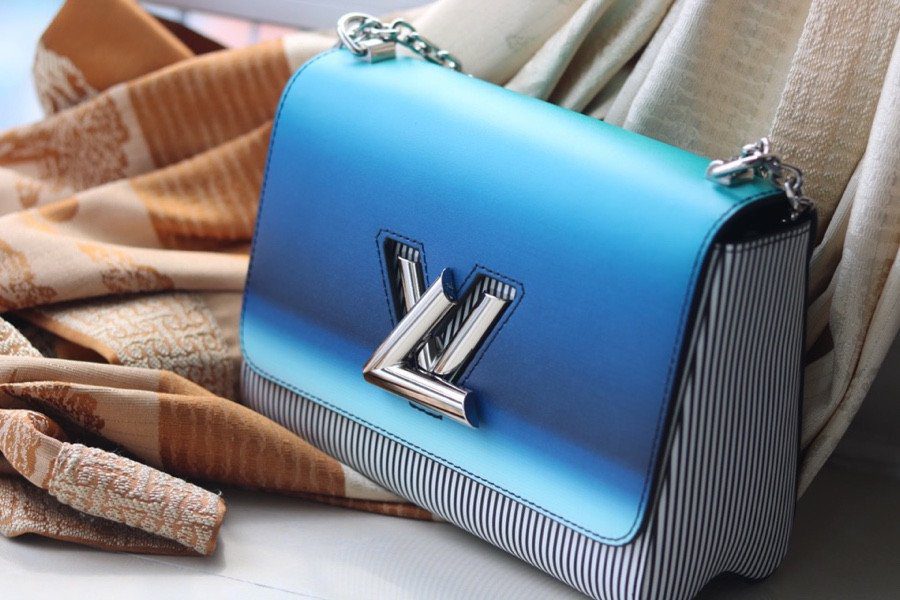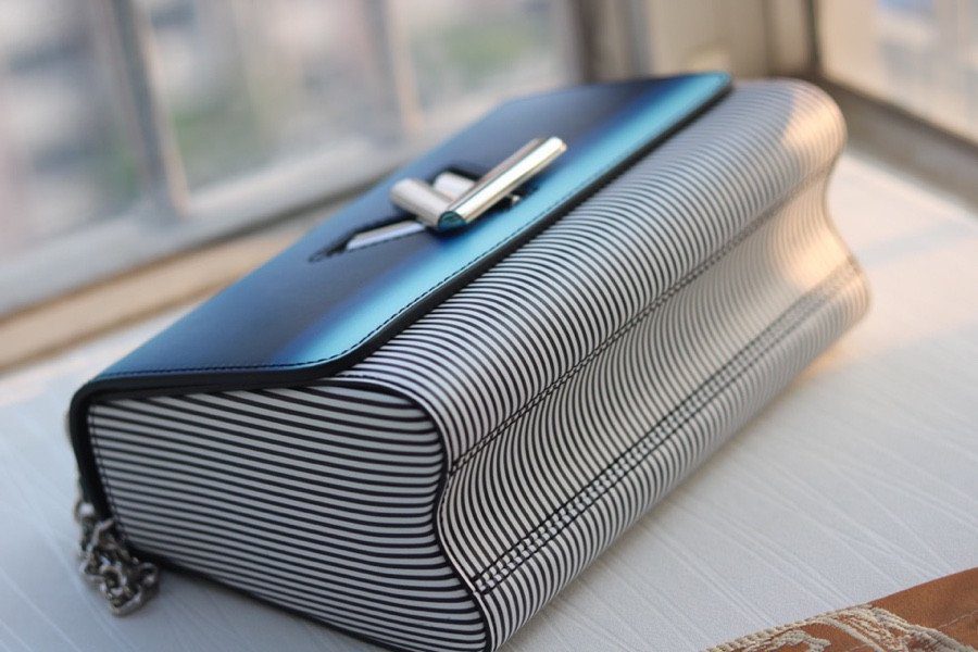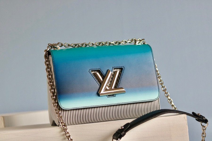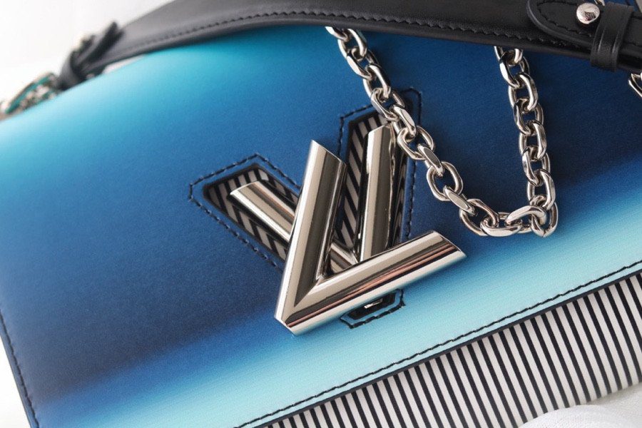 由 Nicolas Ghesquière 为 2020 春夏系列倾力呈献,这款新古典风格的 Twist MM 手袋在备受推崇的经典廓形基础上,注入了耳目一新的鲜活气息。该手袋最引人注目的亮点在于其手工喷绘的翻盖——呈现出明亮且充满活力的渐变蓝色调——与包身那充满波普艺术风格的黑白条纹形成了强烈的视觉反差。