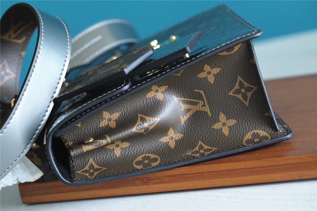 Spring Street 手袋以其惊艳的姿态,彰显出大胆前卫的时尚宣言;它是对经典包型的现代演绎。这款迷人的单品选用闪耀着金属光泽的银灰色 Monogram Vernis 漆皮精制而成,其光洁的表面压印着标志性的 Monogram 花卉图案及 LV 字母标识。