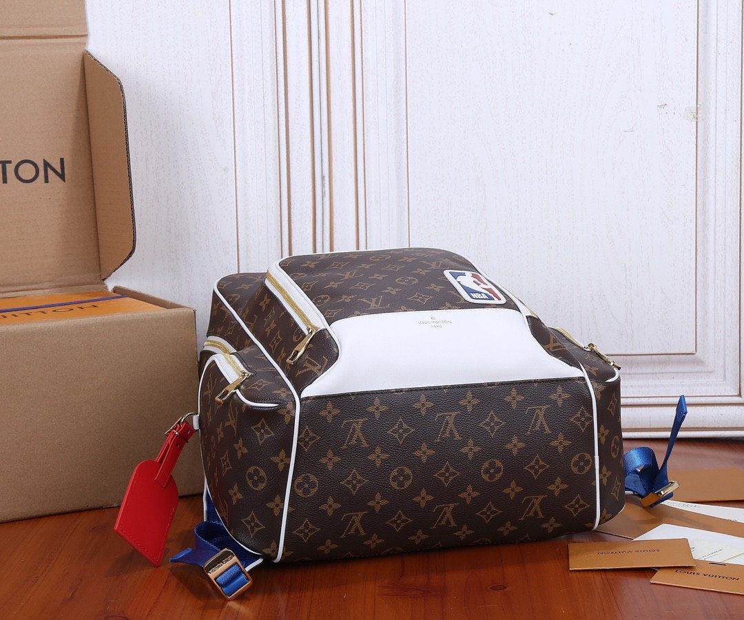 背上 LV x NBA New Backpack,大胆彰显源自街头潮流的时尚宣言。这款独家单品出自 Virgil Abloh 操刀设计的极具前瞻性的联名系列,备受追捧,一包难求。这款非凡的背包巧妙地重塑了品牌经典的 Monogram 涂层帆布,为其注入了 NBA 标志性的活力配色。其引人注目的外观设计亮点纷呈:清爽的白色牛皮饰边、充满活力的蓝色肩带、鲜红色的拉链头,以及一枚醒目的 NBA 标志贴饰。