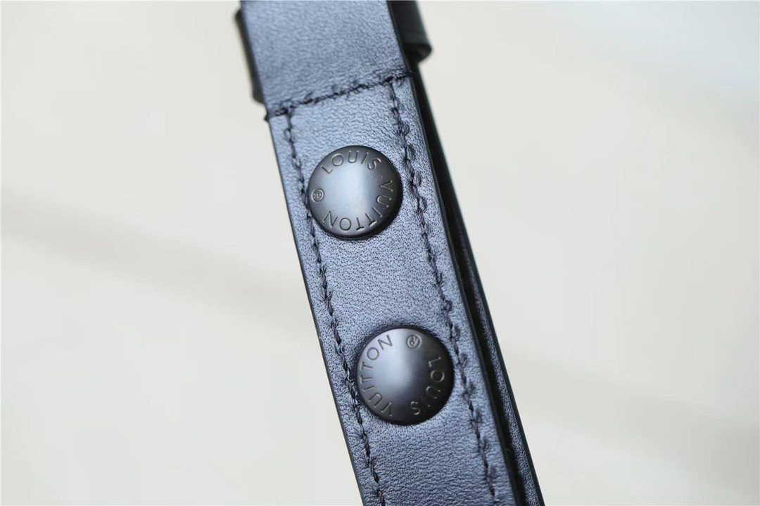 五金配件:哑光黑色金属饰件,包括标志性的 LV Circle 锁扣及可拆卸链条