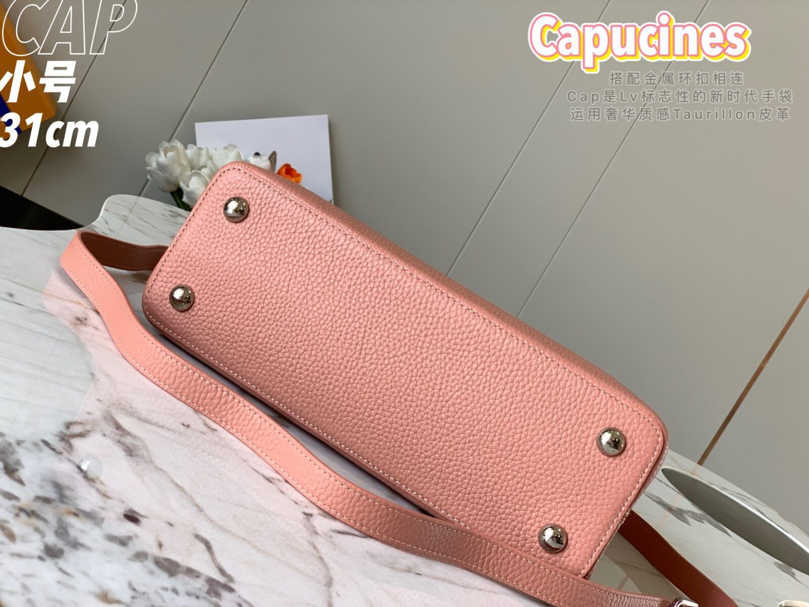 珍稀蟒蛇皮元素被巧妙地运用于坚固的顶部手柄、醒目的 LV 品牌首字母标识以及独特的顶部翻盖之上,从而营造出令人惊叹的材质对比之美。其设计充分展现了 Capucines 系列标志性的多功能特质,特别是其巧妙的双向翻盖设计:您可以将翻盖收纳至包内,大胆展示镶嵌有蟒蛇皮的 LV 标识;亦可将翻盖置于包外,让一朵精致的 Monogram 花卉图案优雅地绽放于蟒蛇皮表面之上。包身配以优质拉丝钢金属配件及完全可拆卸的肩带,能够轻松适应多种背携方式,完美契合您的心情或出席场合。