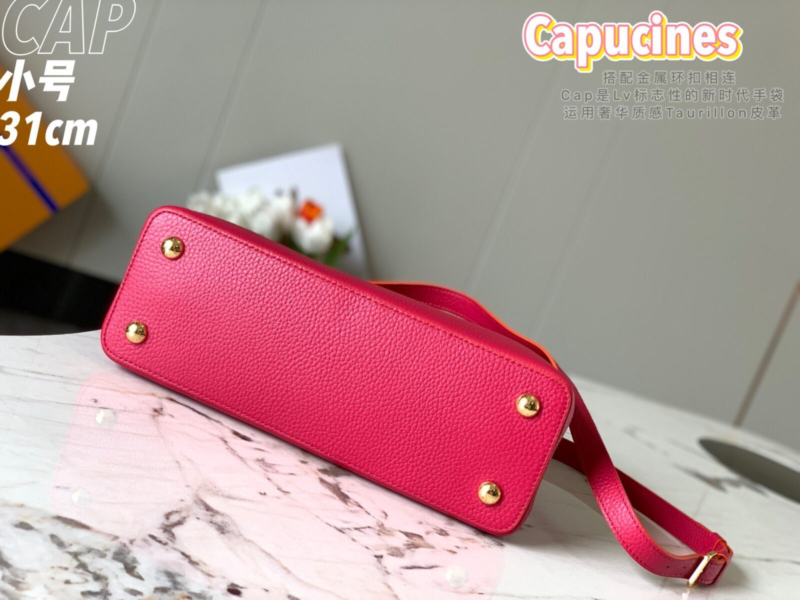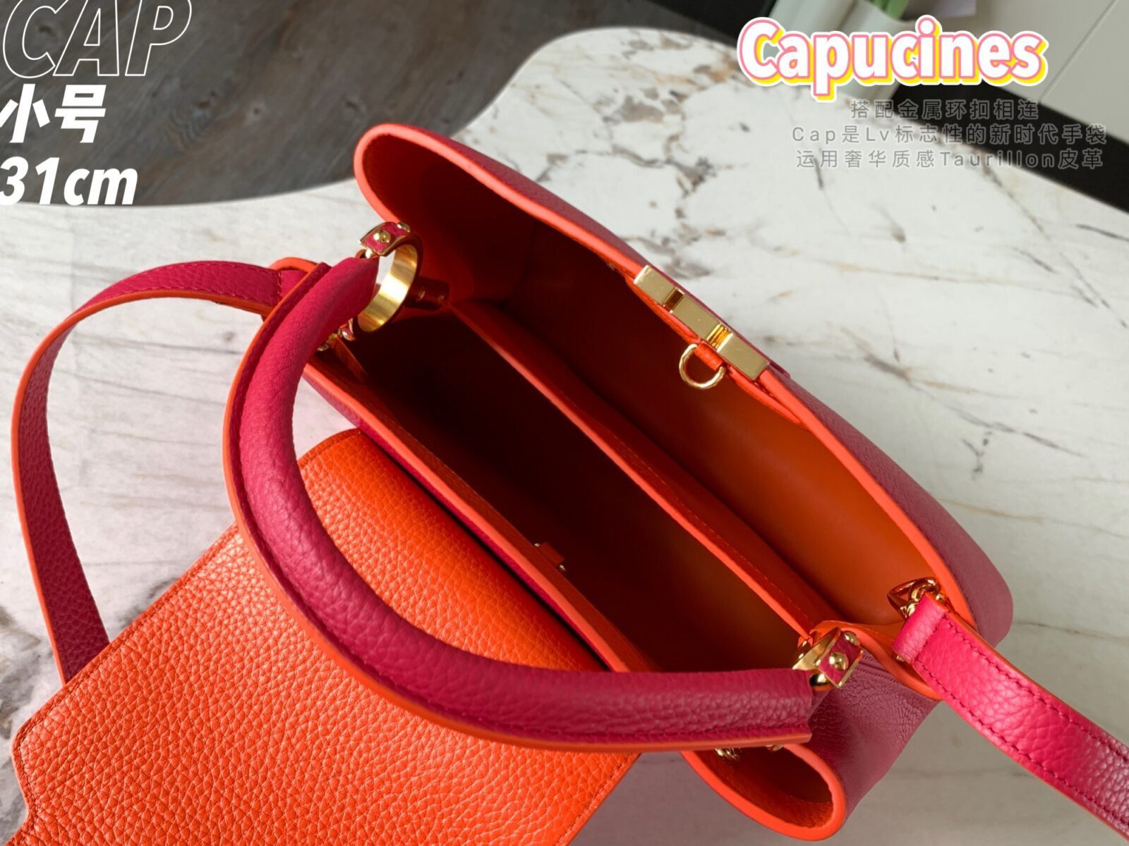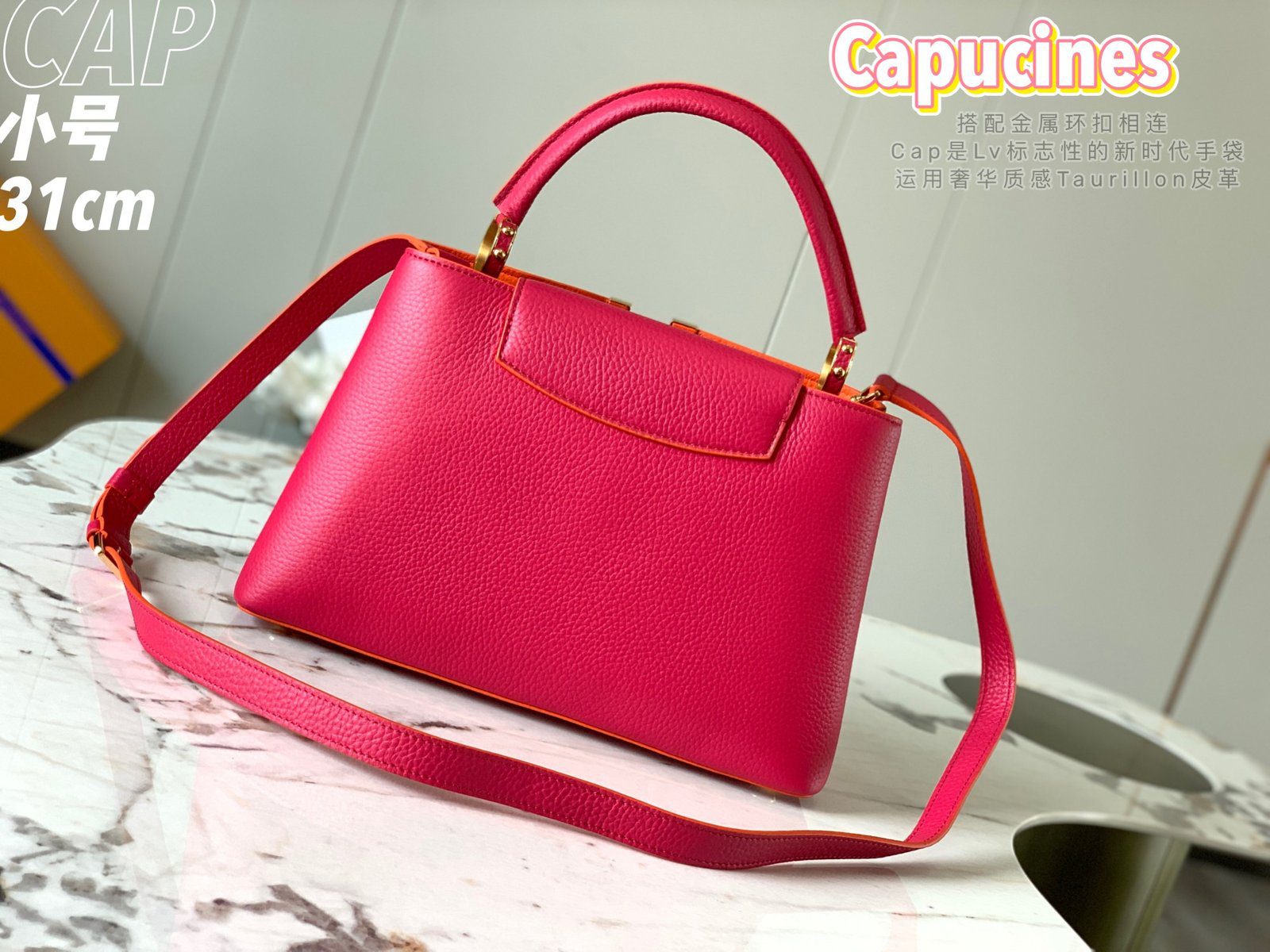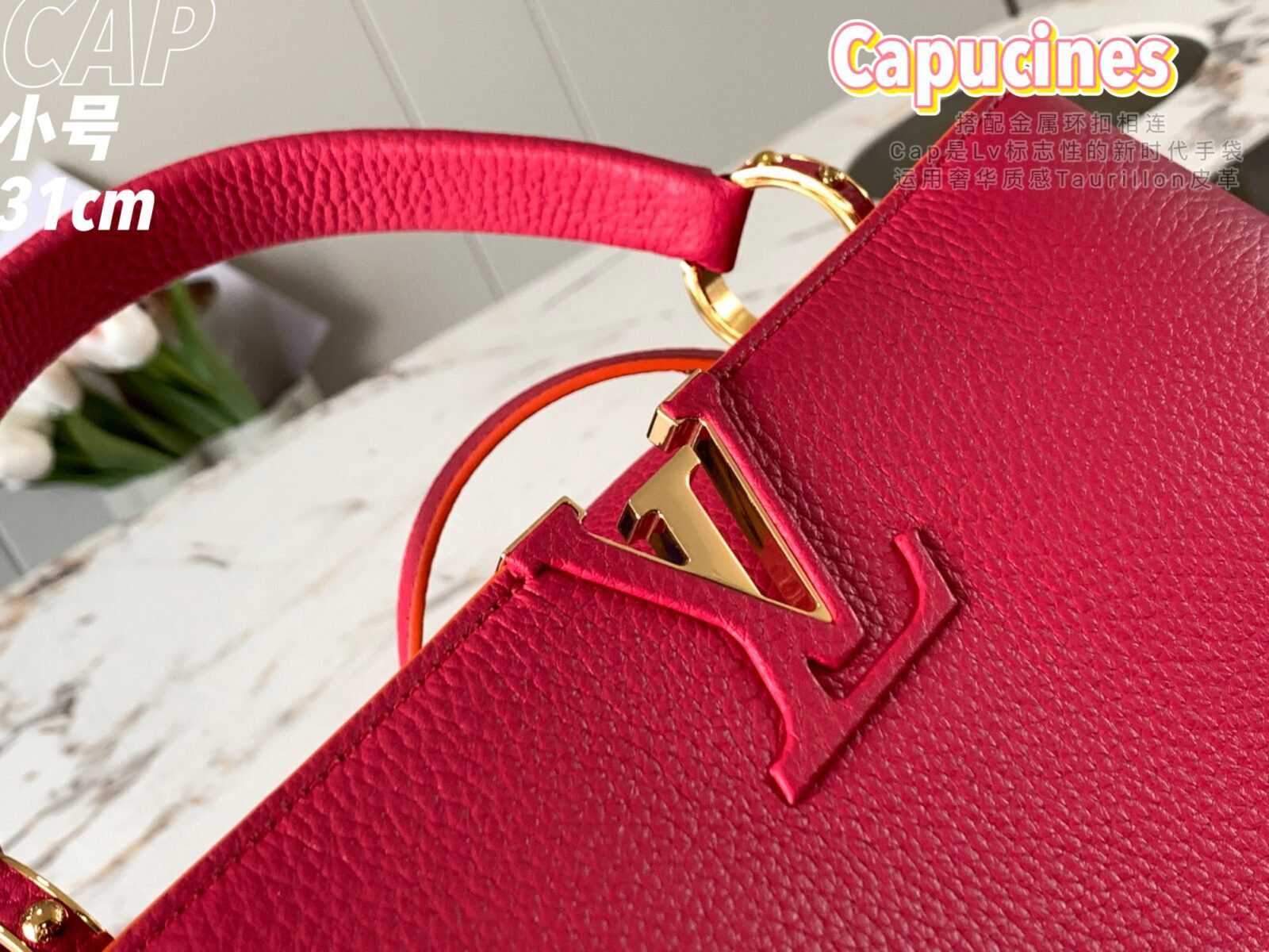 路易威登 Capucines 手袋得名于巴黎的卡普辛街(Rue des Capucines)——正是路易威登首家专卖店的诞生地。作为一款永恒的经典杰作,它能为任何衣橱增添一抹深邃的精致格调与历久弥新的时尚风范。这款精美之作由进口优质全粒面 Taurillon 牛皮巧手打造,皮质呈现出细腻饱满的荔枝纹理,堪称现代奢华的终极象征。