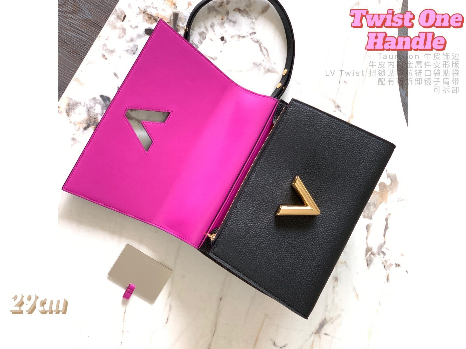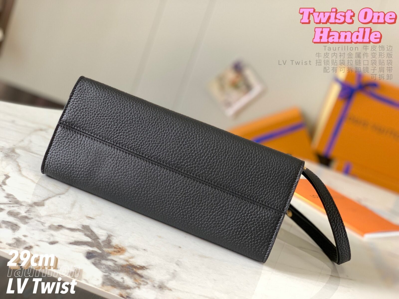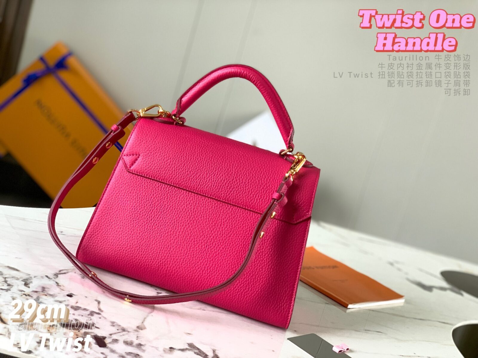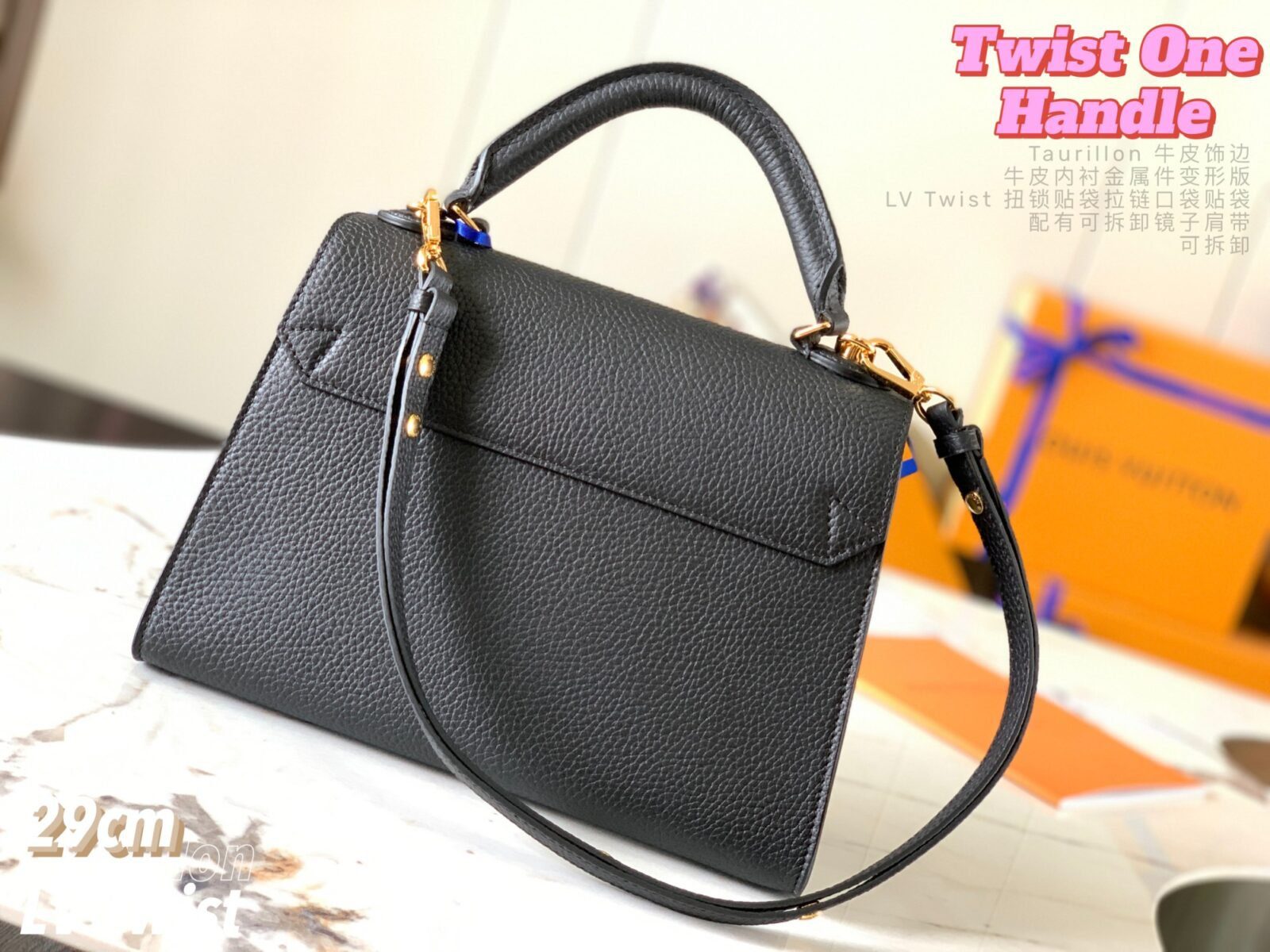 五金配件:金色金属饰件,配有标志性的可旋转 LV Twist 扭锁