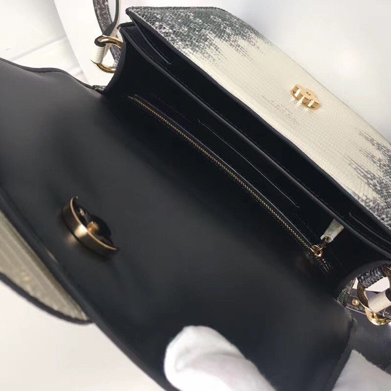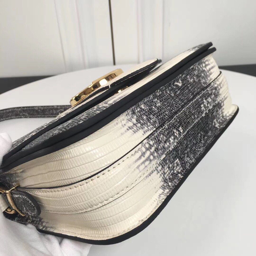 双色拼接蜥蜴皮:采用现代感十足的白色蜥蜴皮为主体,搭配黑色渐变边缘饰边,营造出大胆前卫的艺术风格外观。