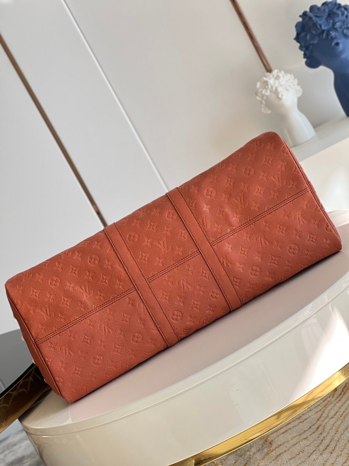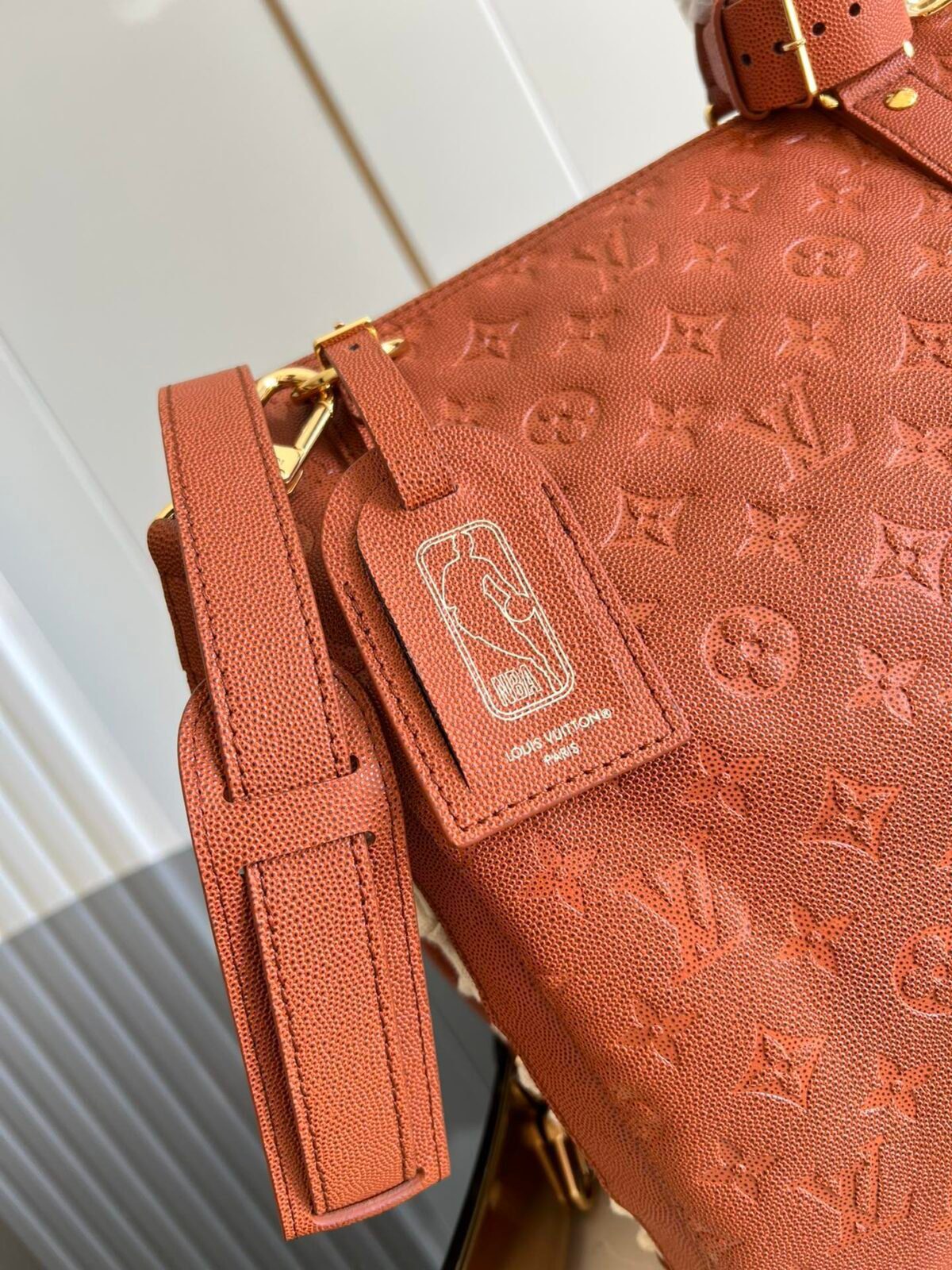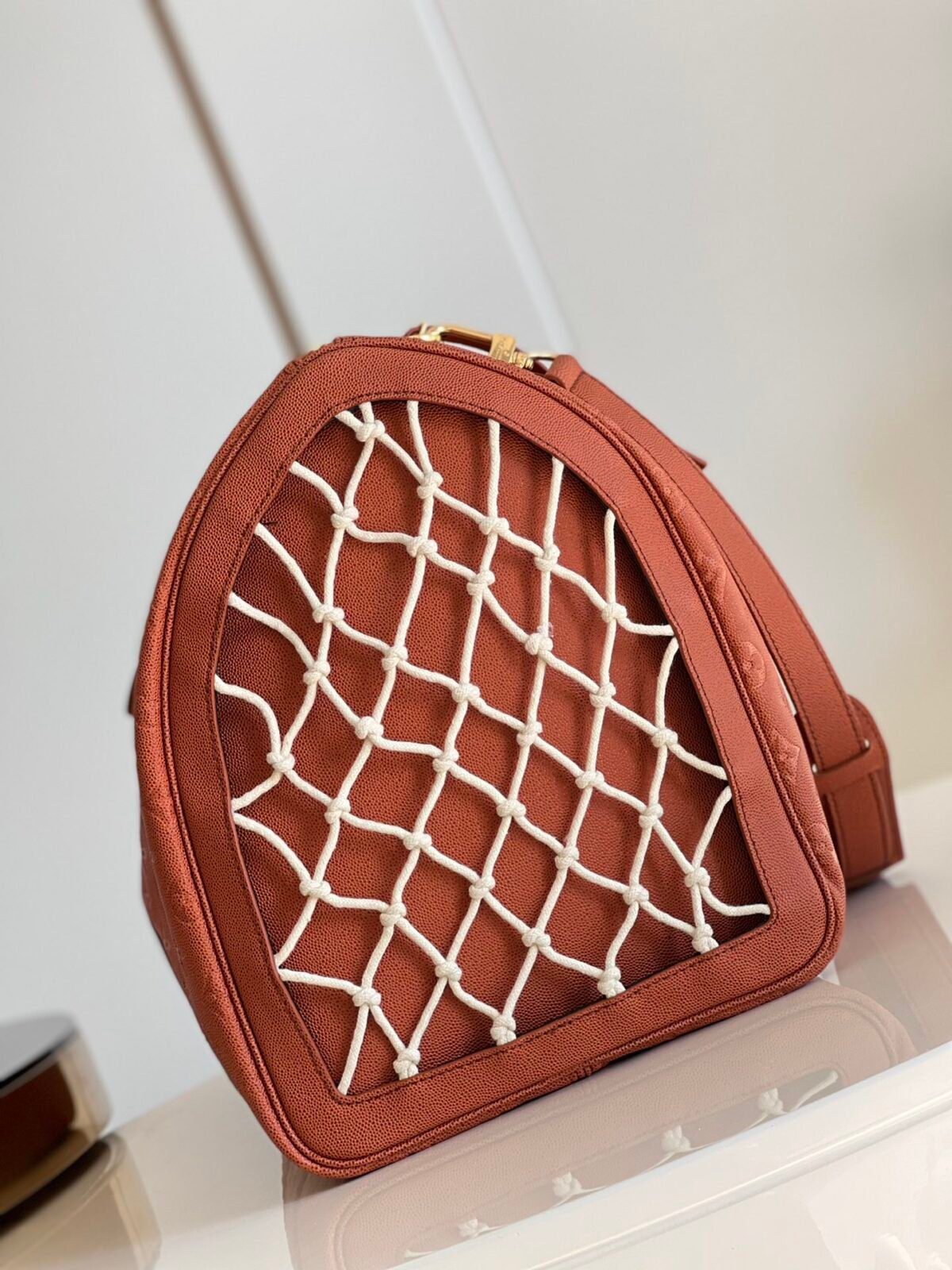 这款旅行袋采用精湛工艺打造,其触感完美复刻了职业篮球的真实质感;包身选用柔软且呈现复古棕色的粒面皮革,并于表面深压印有 Louis Vuitton 标志性的 Monogram 图案。其引人注目的设计在细节处尽显巧思:标志性的 NBA 徽标贴饰被精心缝制于包身一角,并配有一枚印有专属 NBA 品牌标识的定制皮革行李牌。