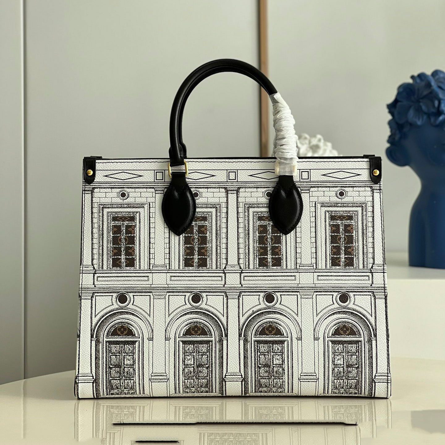 沉浸于高级时装与古典艺术的迷人交汇之中,尽享这款限量版 Louis Vuitton x Fornasetti OnTheGo Architettura MM 托特包带来的非凡体验。作为备受瞩目的 2021 秋冬独家胶囊系列力作,这款惊艳之作将路易威登(LV)备受推崇的经典包型,升华为一座可随身携带的建筑艺术杰作。