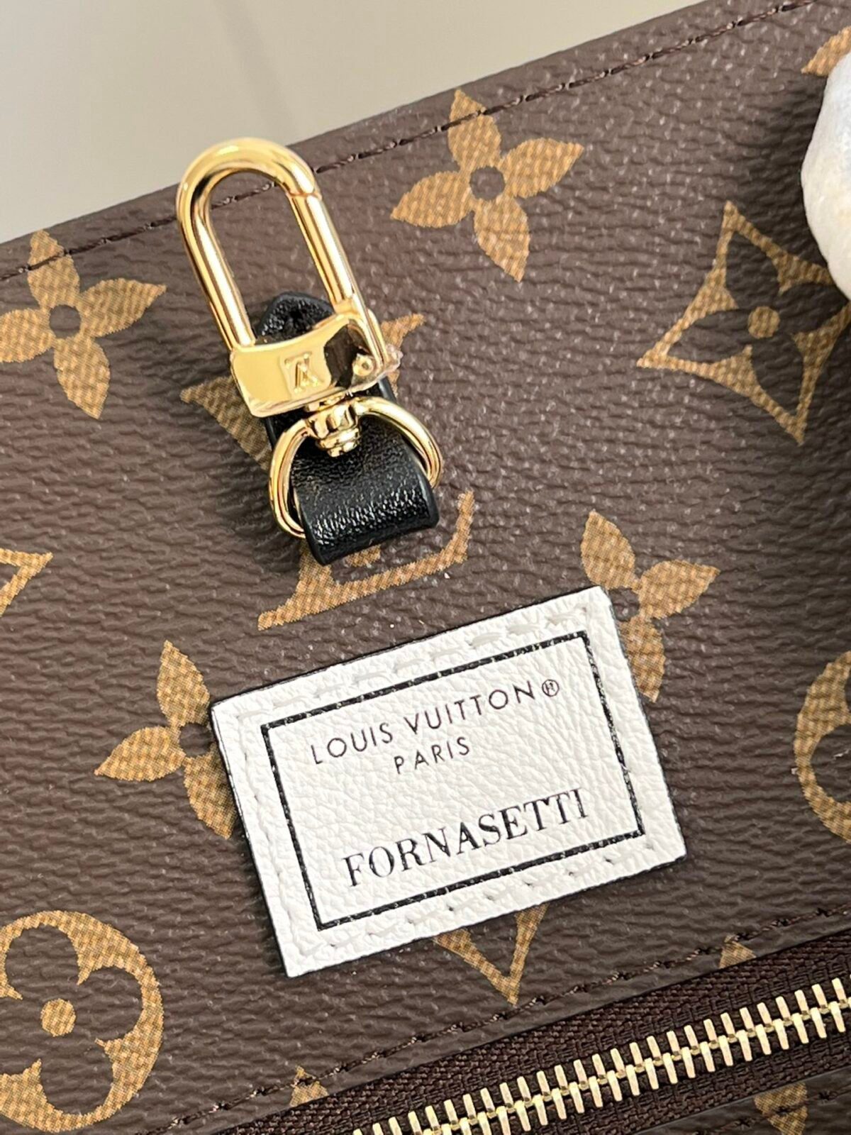 主要特色:独家 Fornasetti 建筑蓝图插画设计,Monogram 帆布透视“窗户”细节,双黑色皮革 Toron 顶部手柄,内置肩带,以及极其宽敞的主隔层空间。