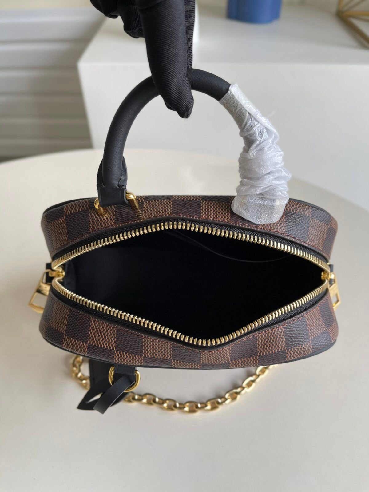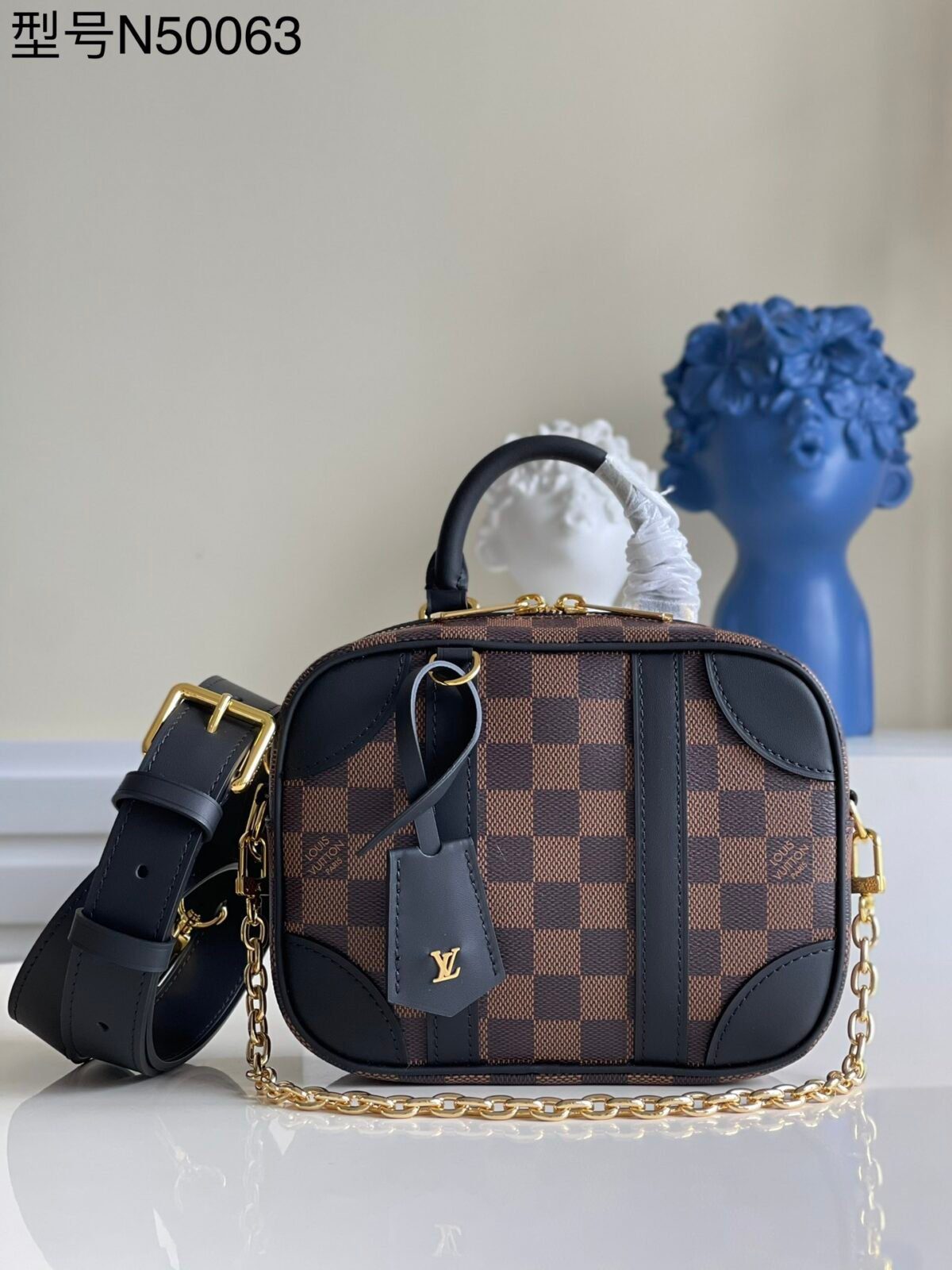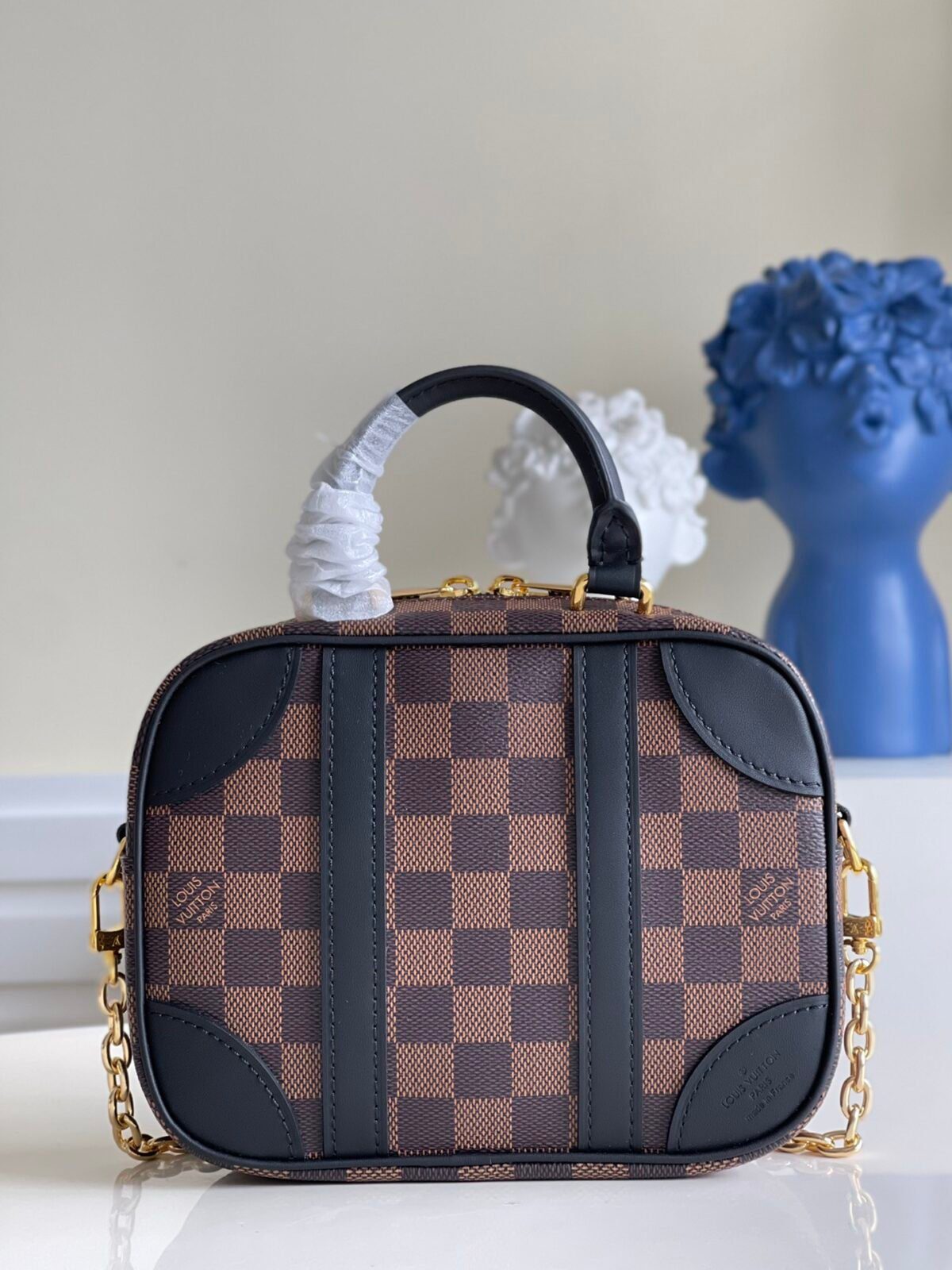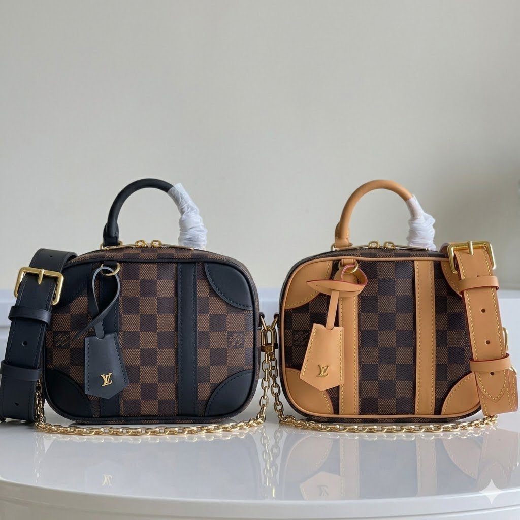 天然棕褐色饰边 (N50065):营造出一种温暖且充满品牌传承底蕴的美学氛围,采用浅棕/焦糖色的光滑皮革饰边,完美衬托出经典的 Damier Ebene 图案。
