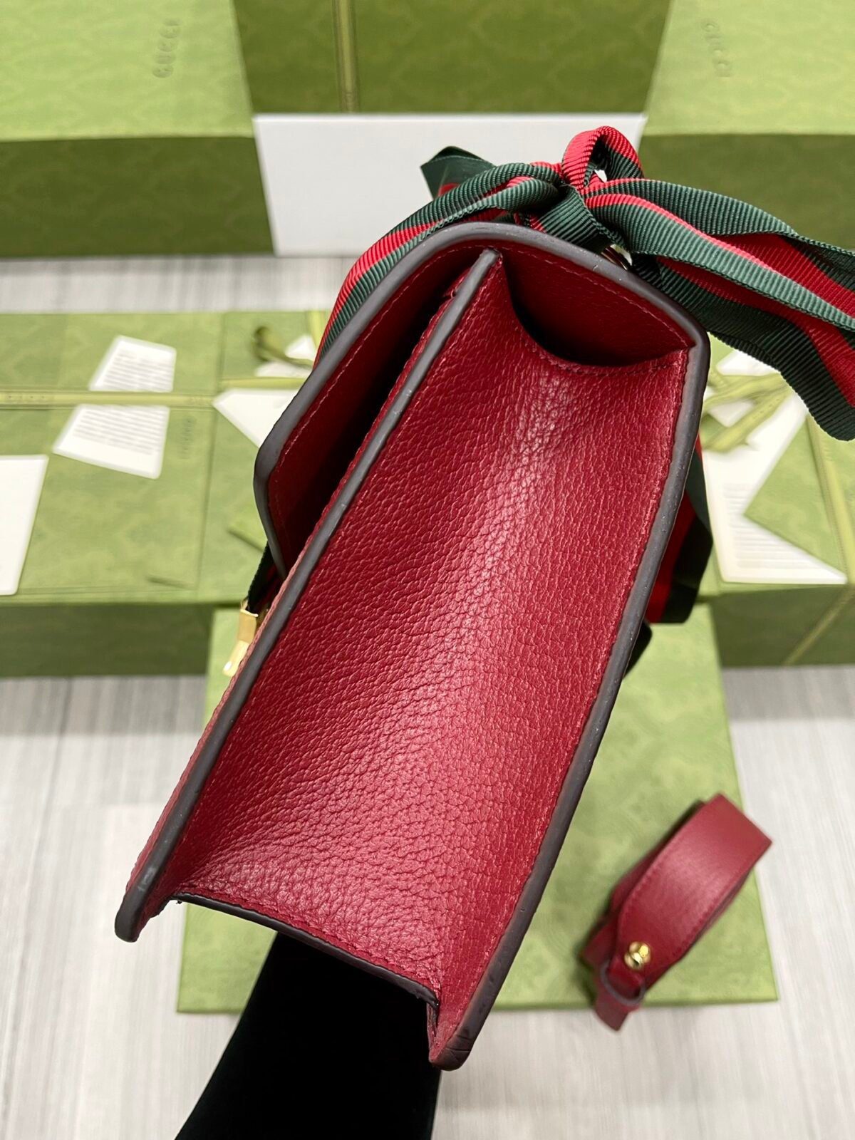 材质:GG Supreme 涂层帆布搭配光滑皮革饰边、尼龙织带及超细纤维内衬