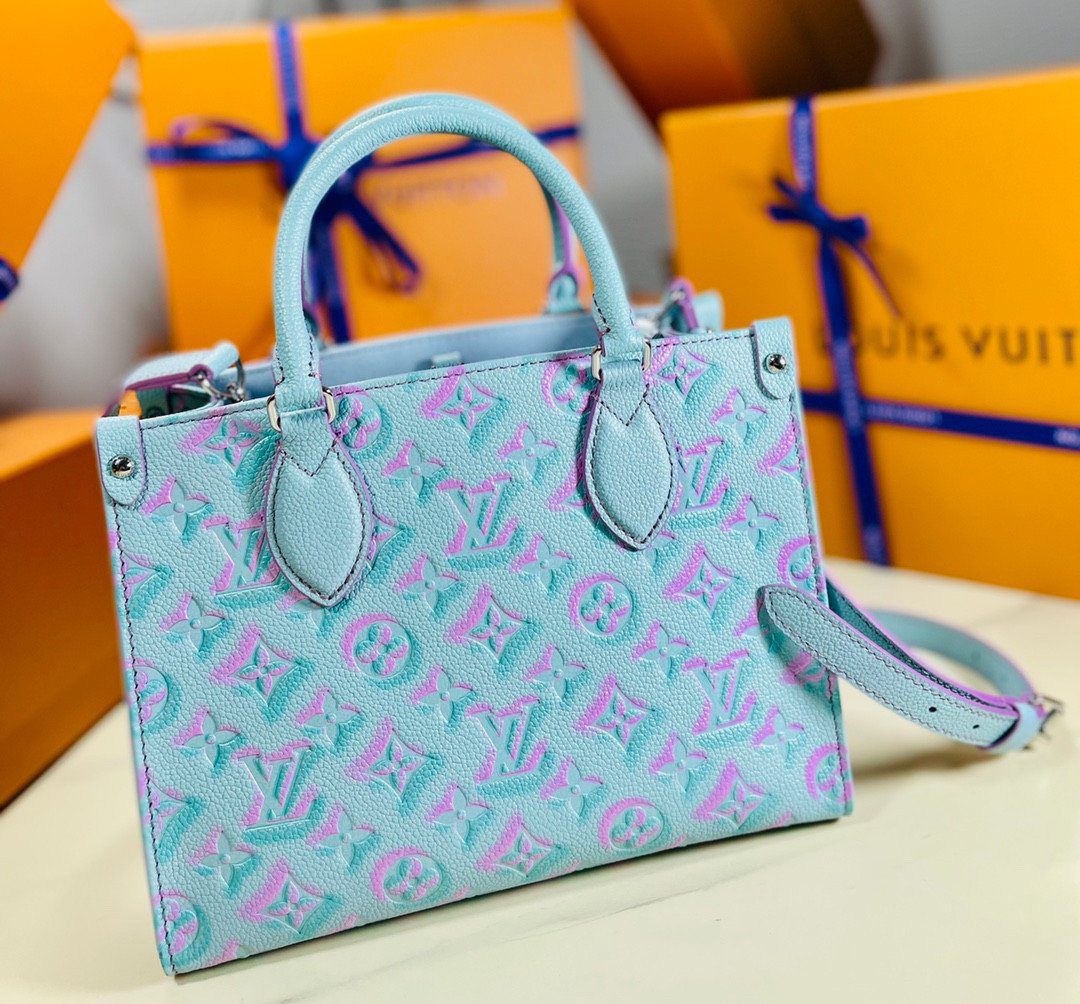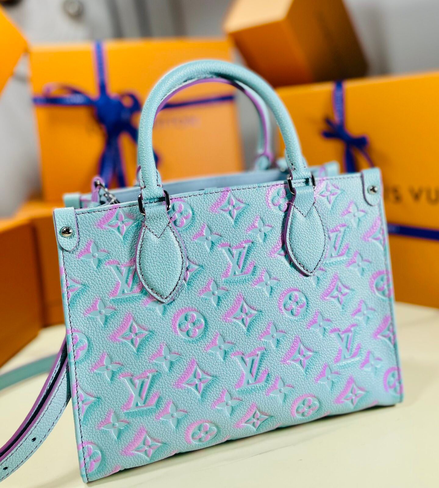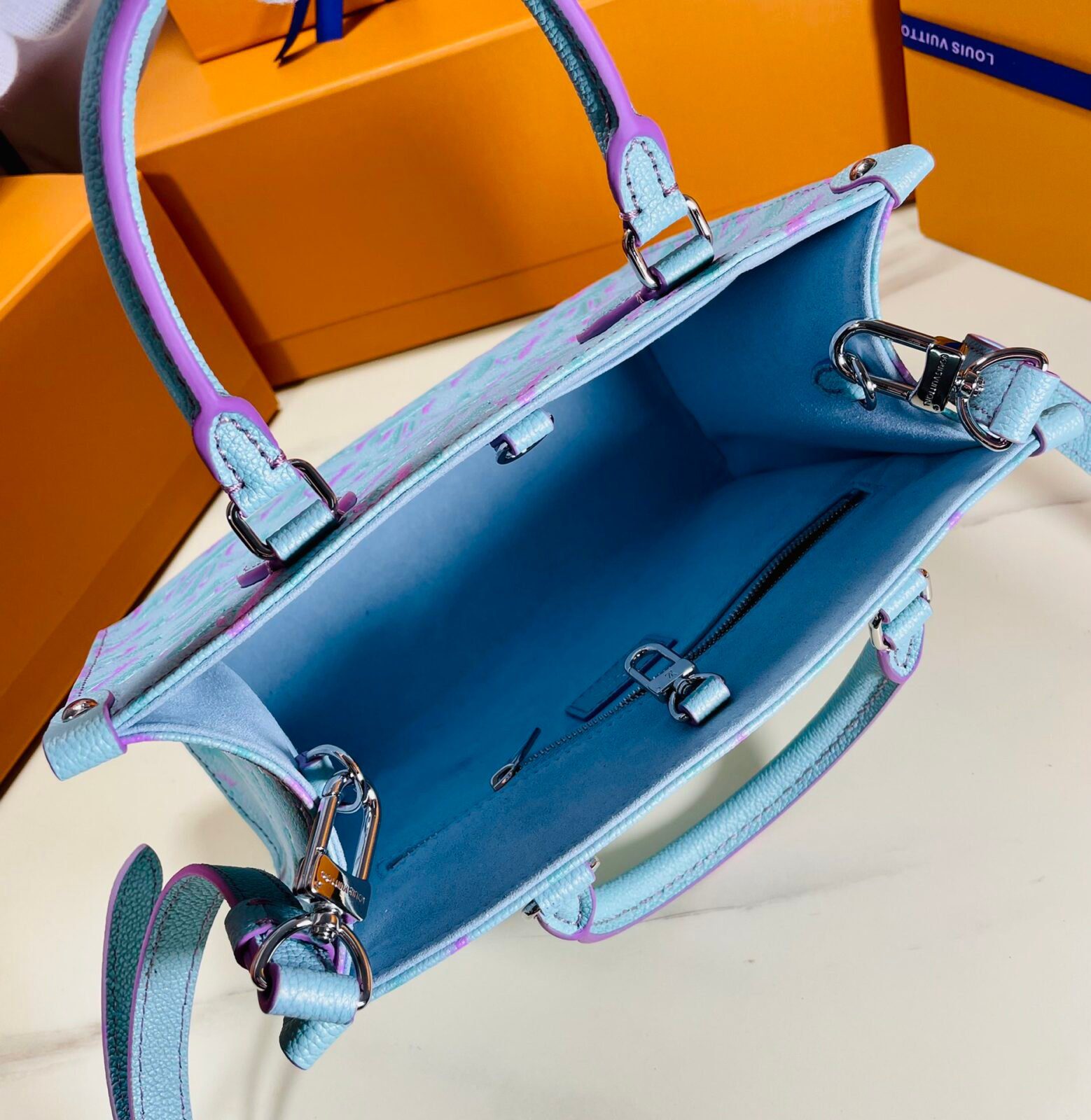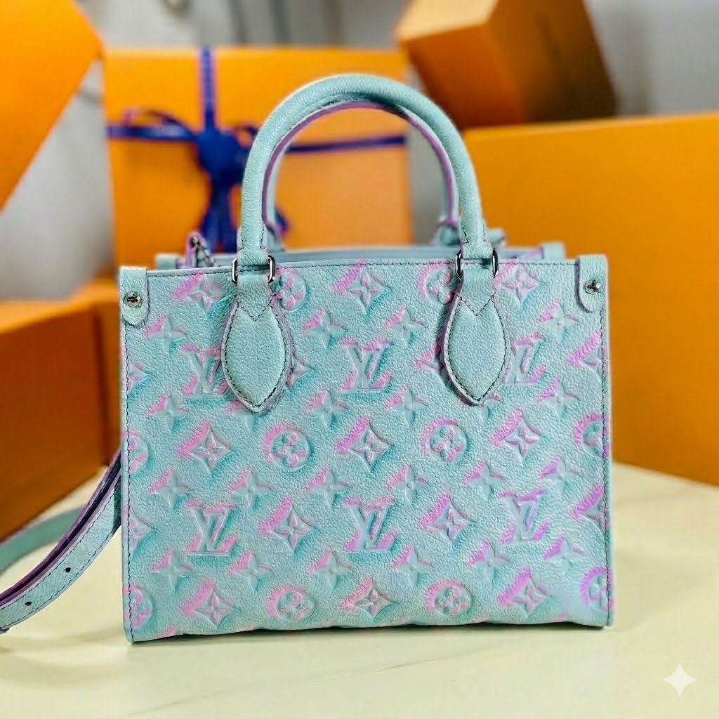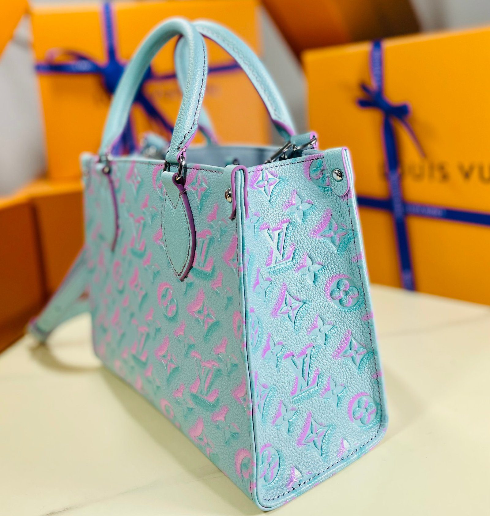 一抹春日喜悦:路易威登 Onthego PM 手袋特别版,礼赞春夏时节的盎然生机。这款特别发售的单品为品牌的标志性美学注入了全新活力,呈现出令人惊艳的柔和渐变色彩。明亮的水蓝色包身饰有深压纹超大号 Monogram Giant 图案,并以流转的粉紫渐变色加以点缀,完美捕捉了阳光明媚日子的愉悦氛围。