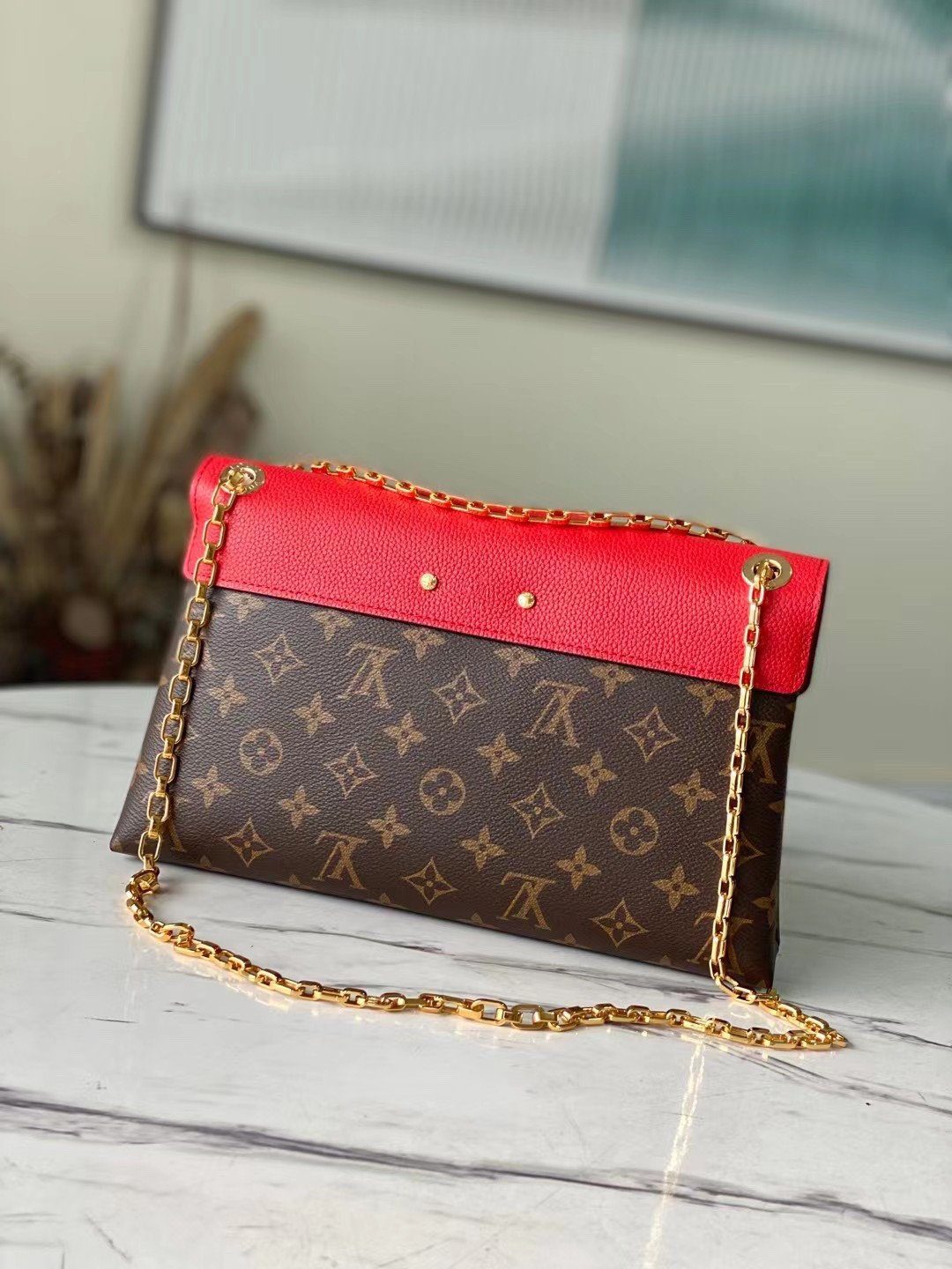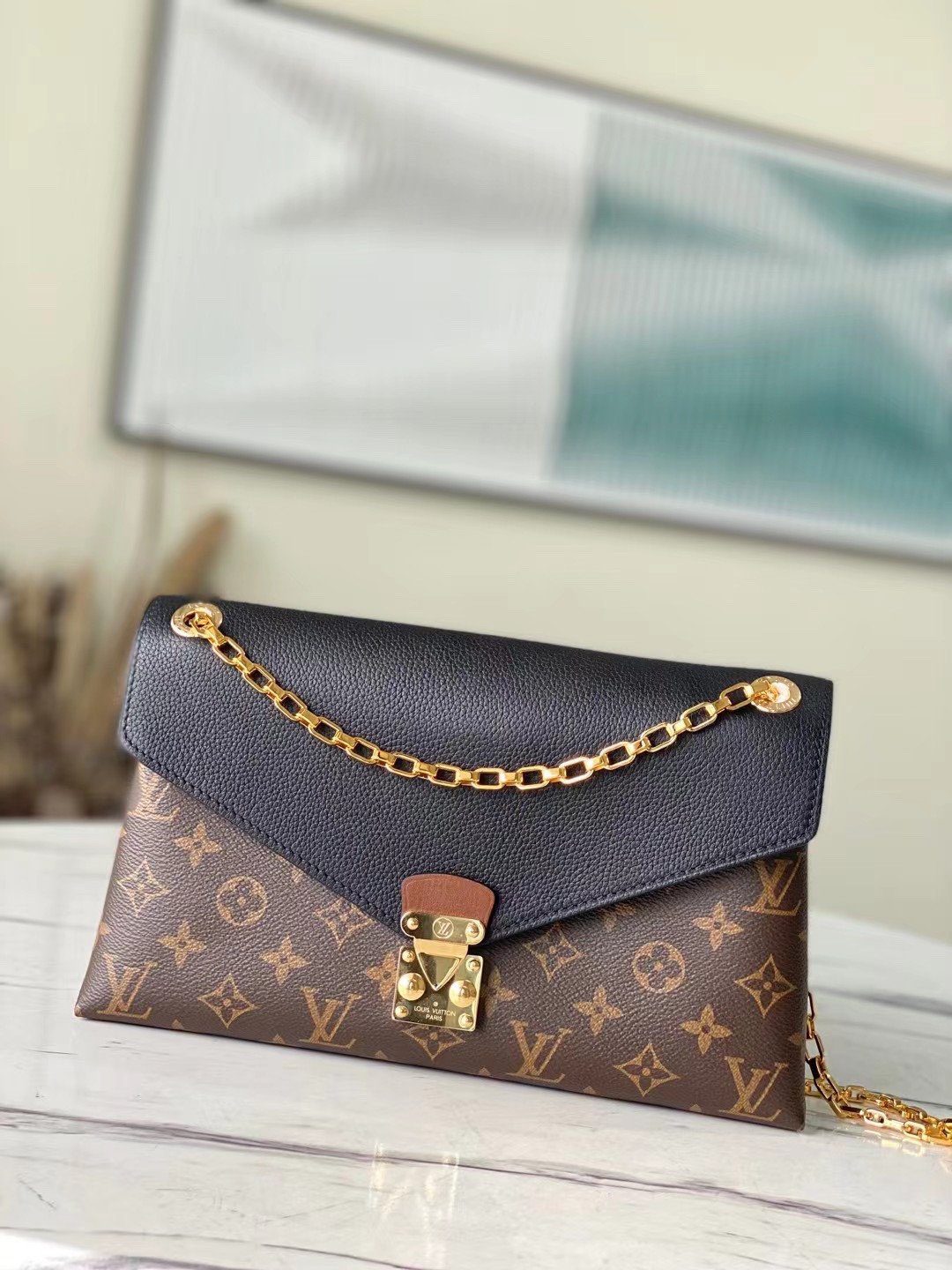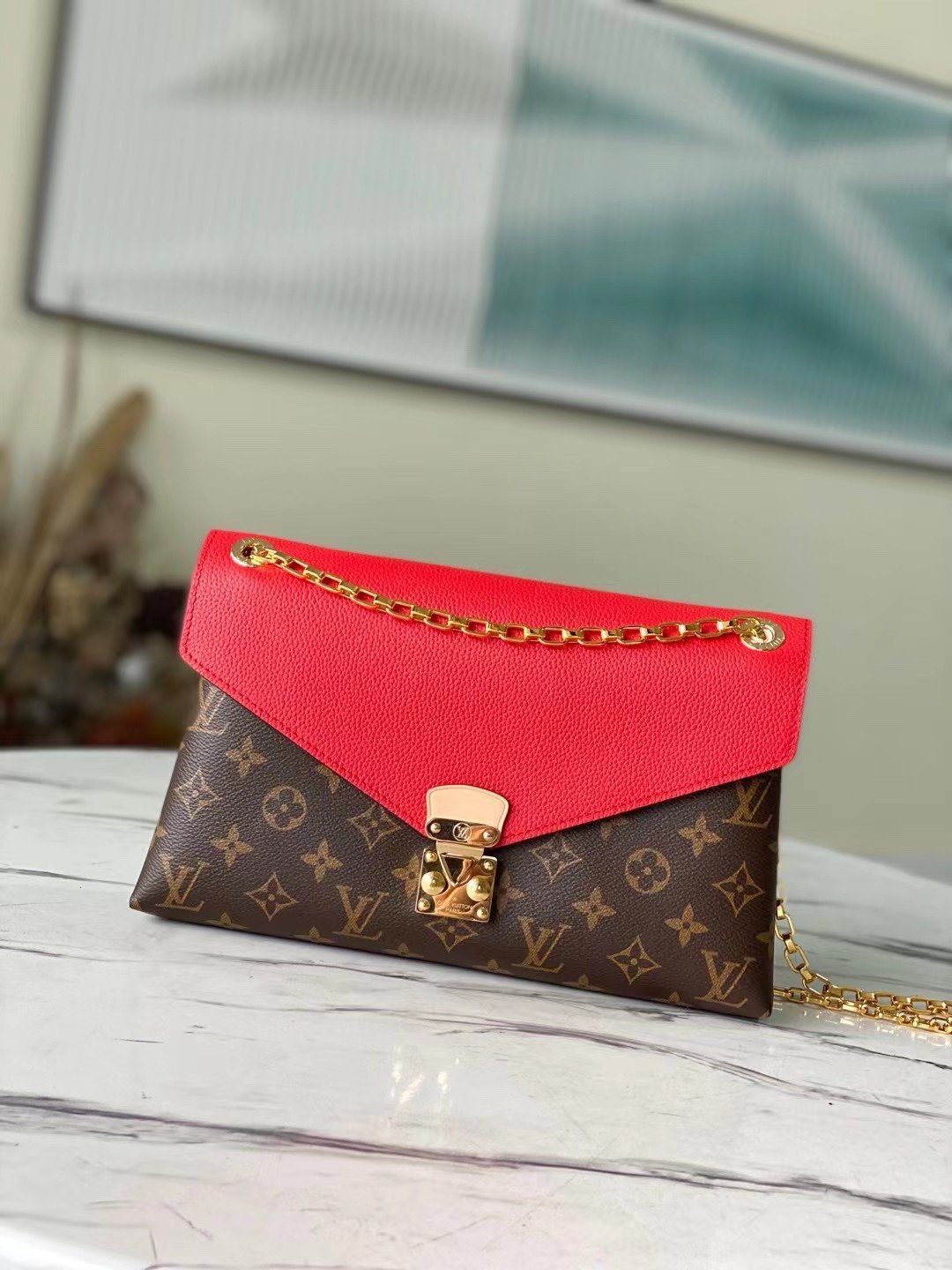 传统底蕴与现代优雅的完美融合——用路易威登(Louis Vuitton)Pallas Chain 手袋提升您的日常穿搭格调。这款极具时尚魅力的手袋设计独特,巧妙地将品牌标志性的 Monogram 涂层帆布与触感柔滑、色泽鲜亮的牛皮翻盖完美结合。优雅的褶皱细节与结构分明的信封式轮廓相得益彰,使其成为一款高度百搭的日夜皆宜之选,时刻散发着精致考究的迷人魅力。