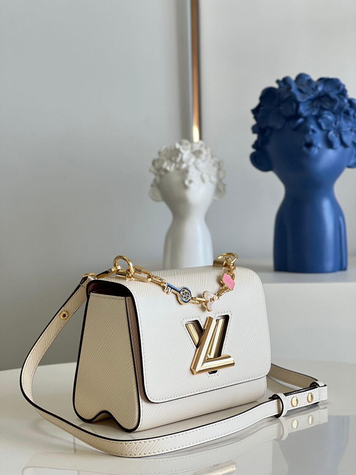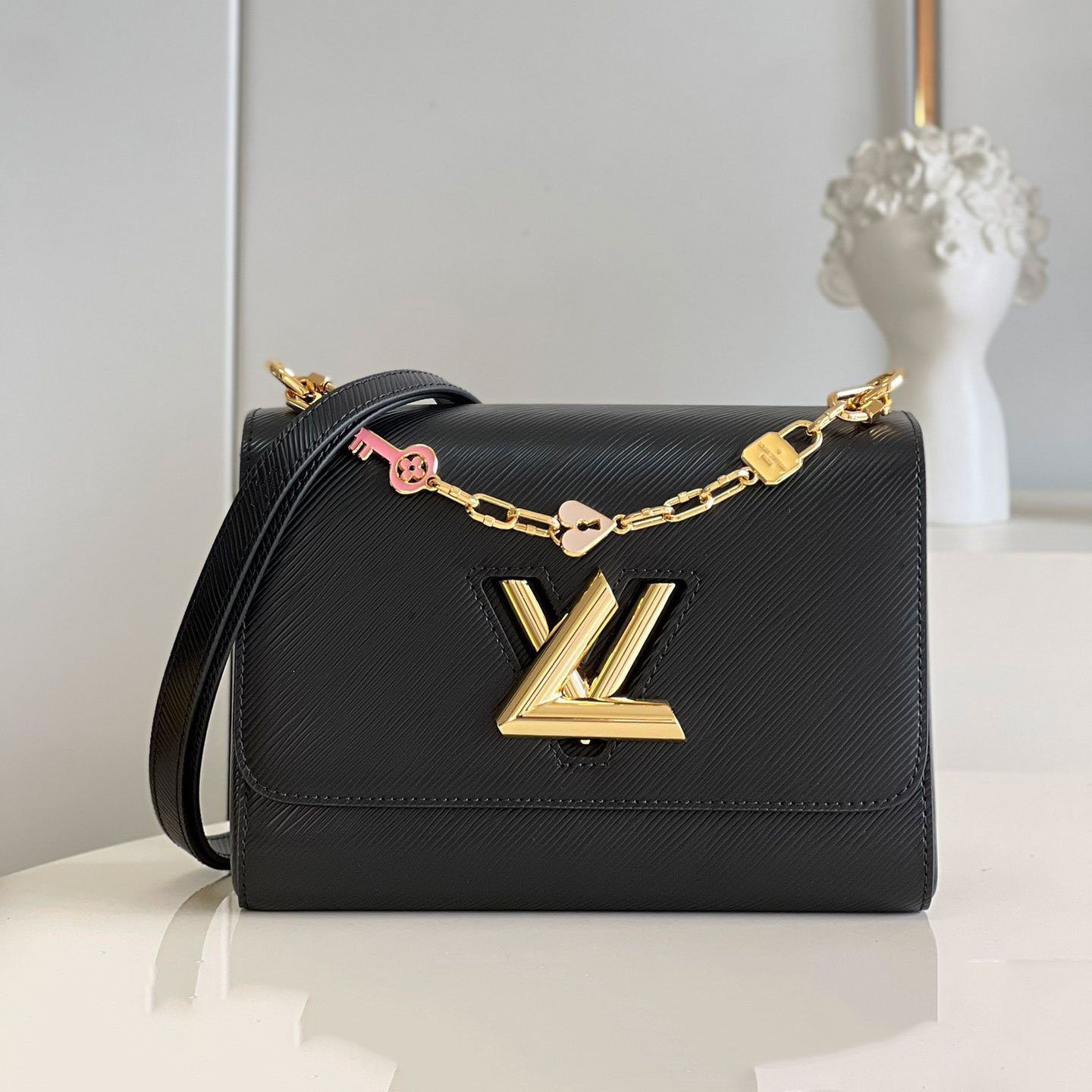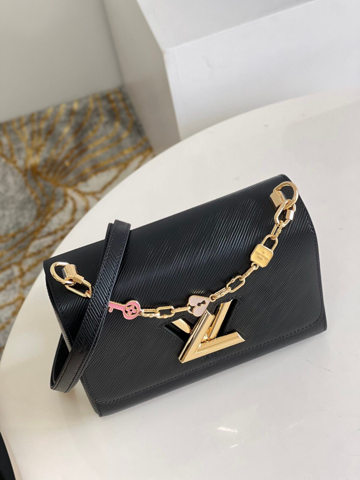 现代新古典主义杰作:路易威登 Twist PM 手袋于 2015 年早春系列中首度亮相,凭借其独特的魅力,迅速确立了其作为现代经典之作的地位。此特别版在原有基础上进一步升华了新古典主义美学,配有一条独家定制的珠宝式链条,并点缀着充满趣味的珐琅吊坠——包括一颗爱心、一把钥匙以及一把精致的粉色挂锁。这是一款极具辨识度的精致单品,旨在助您在日间的优雅造型与晚间的迷人风情之间实现完美过渡。