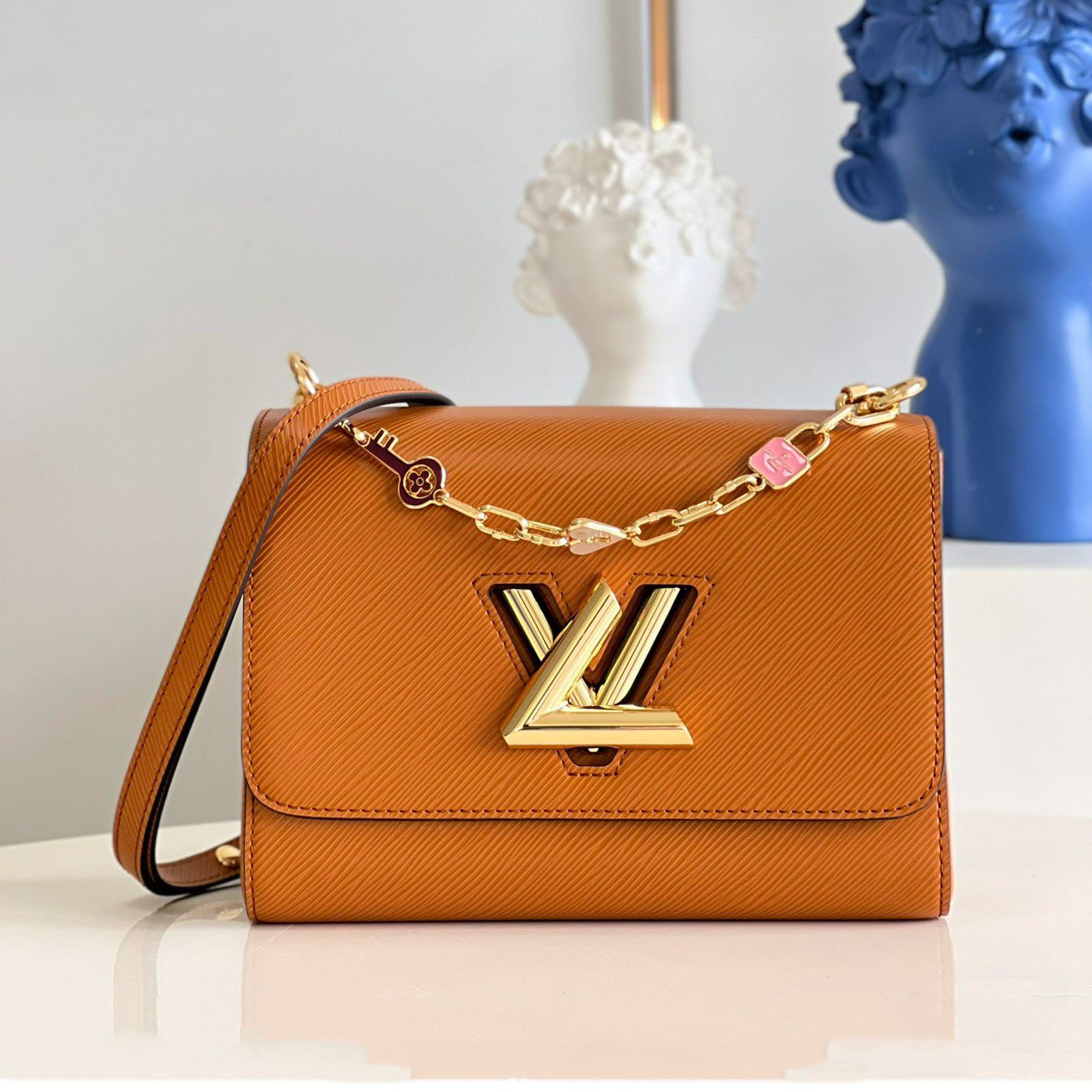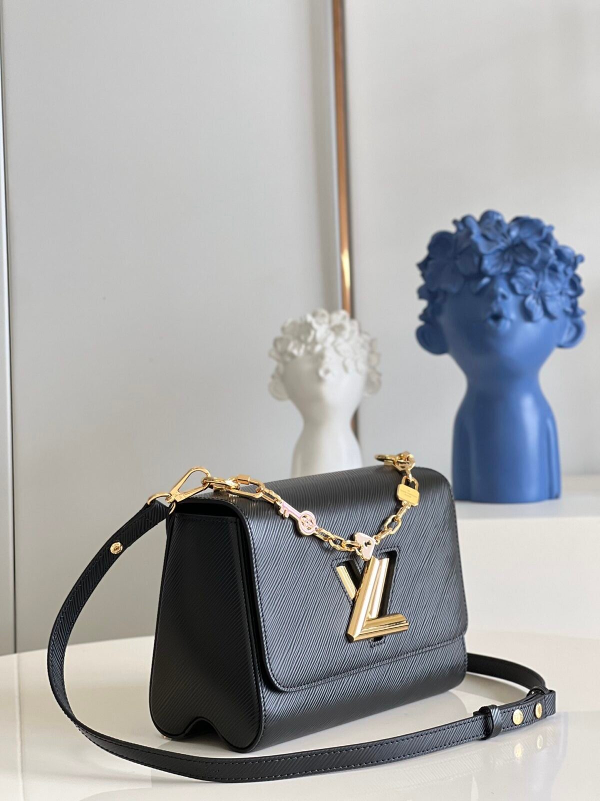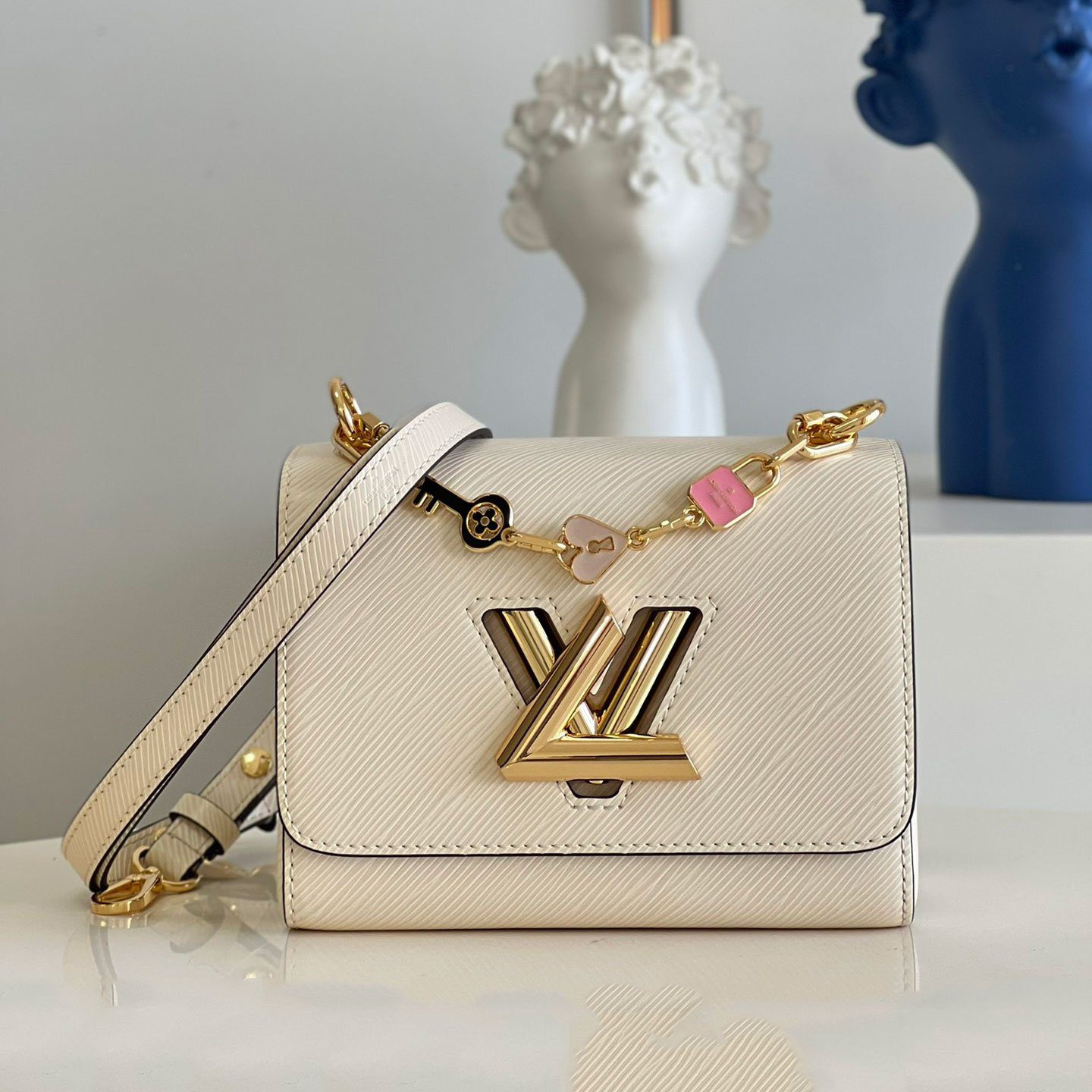 现代新古典主义杰作:路易威登 Twist PM 手袋于 2015 年早春系列中首度亮相,凭借其独特的魅力,迅速确立了其作为现代经典之作的地位。此特别版在原有基础上进一步升华了新古典主义美学,配有一条独家定制的珠宝式链条,并点缀着充满趣味的珐琅吊坠——包括一颗爱心、一把钥匙以及一把精致的粉色挂锁。这是一款极具辨识度的精致单品,旨在助您在日间的优雅造型与晚间的迷人风情之间实现完美过渡。