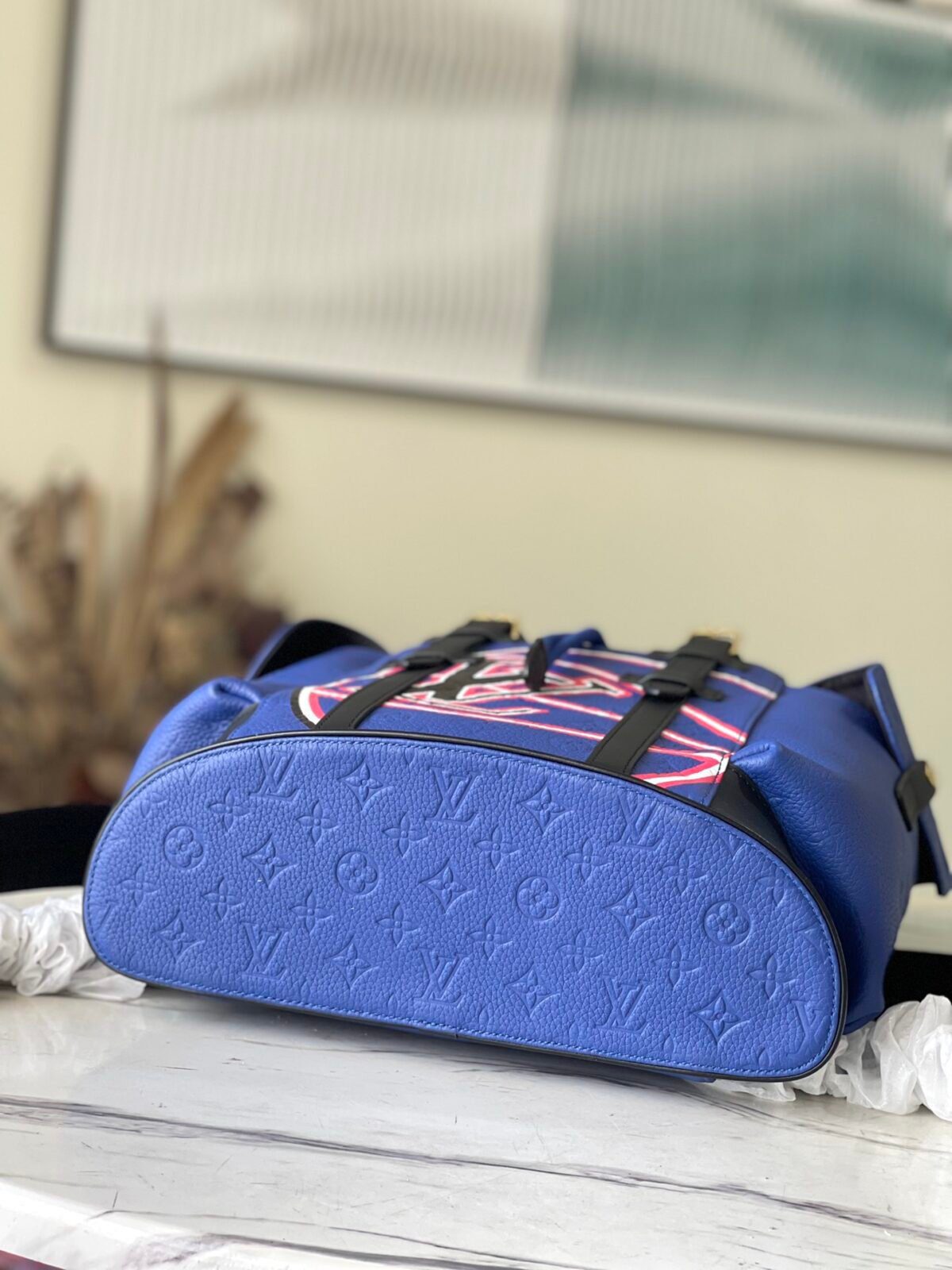 LV 路易威登 x NBA Christopher 双肩包 MM(中号) 38x44x21厘米 限量版 蓝色 老花 颗粒小牛皮皮革双肩包