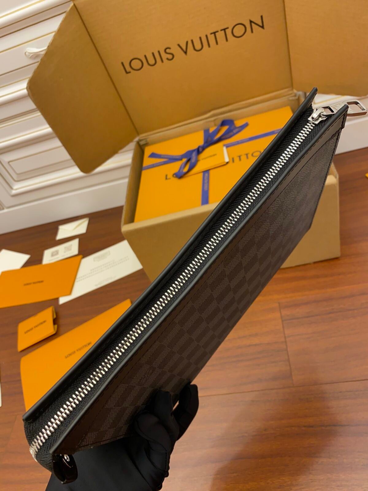 品味专业人士的现代必备之选——用 Louis Vuitton Kasai 手拿包升级您的日常随身装备。这款手拿包完美融合了阳刚气概与优雅格调,专为那些注重高效收纳与整洁有序的现代男士而设计。它采用品牌标志性的 Damier Graphite 帆布精心打造,呈现出利落、专业的视觉美感,无论是在商务会议中还是国际旅途中,都能实现无缝衔接,游刃有余。