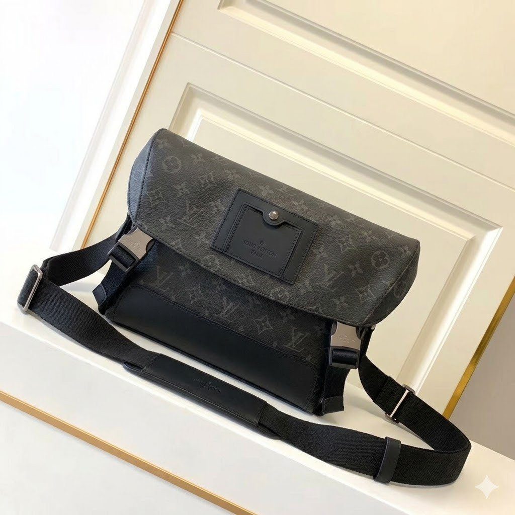 马术经典的现代重塑:路易威登 Saumur Messenger 包袋是对诞生于 1986 年的标志性 Saumur 包袋的一次大胆且充满现代感的致敬。这款经过重新设计的信使包最初灵感源自赛马世界,它在保留历史经典轮廓的同时,注入了犀利且充满都市气息的时尚锋芒。包身选用充满阳刚魅力的 Monogram Eclipse 帆布打造,完美平衡了品牌深厚的历史传承与现代街头潮流的审美意趣。