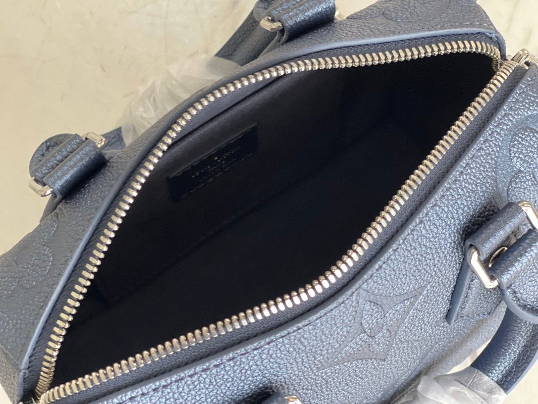 精湛工艺与标志性细节——这款手袋的每一个细节都旨在致敬路易威登深厚的品牌传承。从经典的建筑感廓形,到手工缝制的 Toron 手柄,Speedy 20 处处流露着精致优雅的格调。设计点睛之笔在于那枚刻有品牌标志的挂锁与钥匙,在确保随身物品安全无虞的同时,更彰显出独一无二的时尚品味。闪耀的金属配件为整体设计增添了一抹璀璨光彩,无论是搭配经典的“经典黑”(Noir)还是流光溢彩的“珠光蓝”饰面,都相得益彰,完美契合。