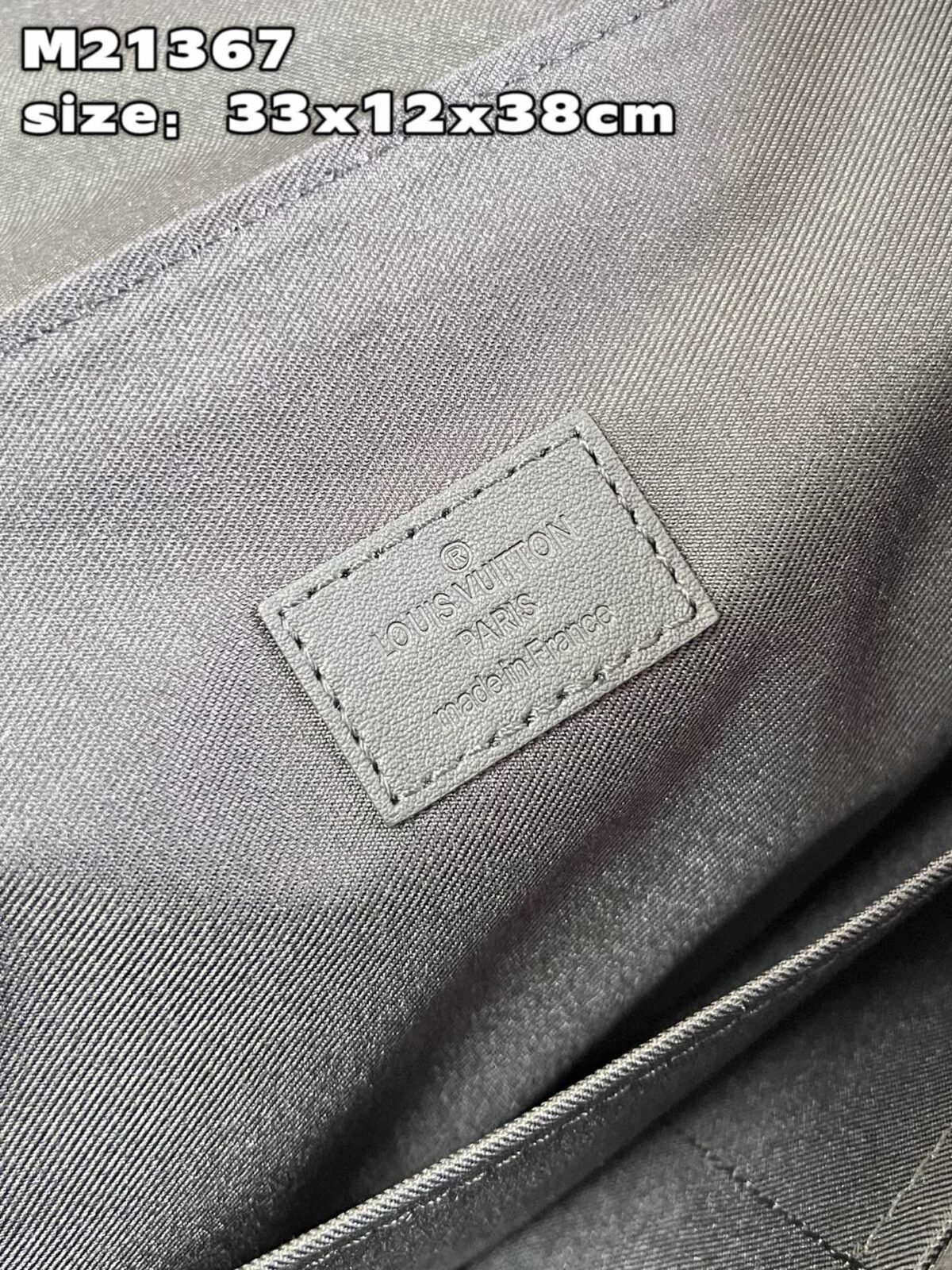 主要特征:磁吸式翻盖闭合、宽敞主隔层、正面拉链外袋、哑光黑色 LV 字母标识、可调节织物肩带、顶部皮革提手。