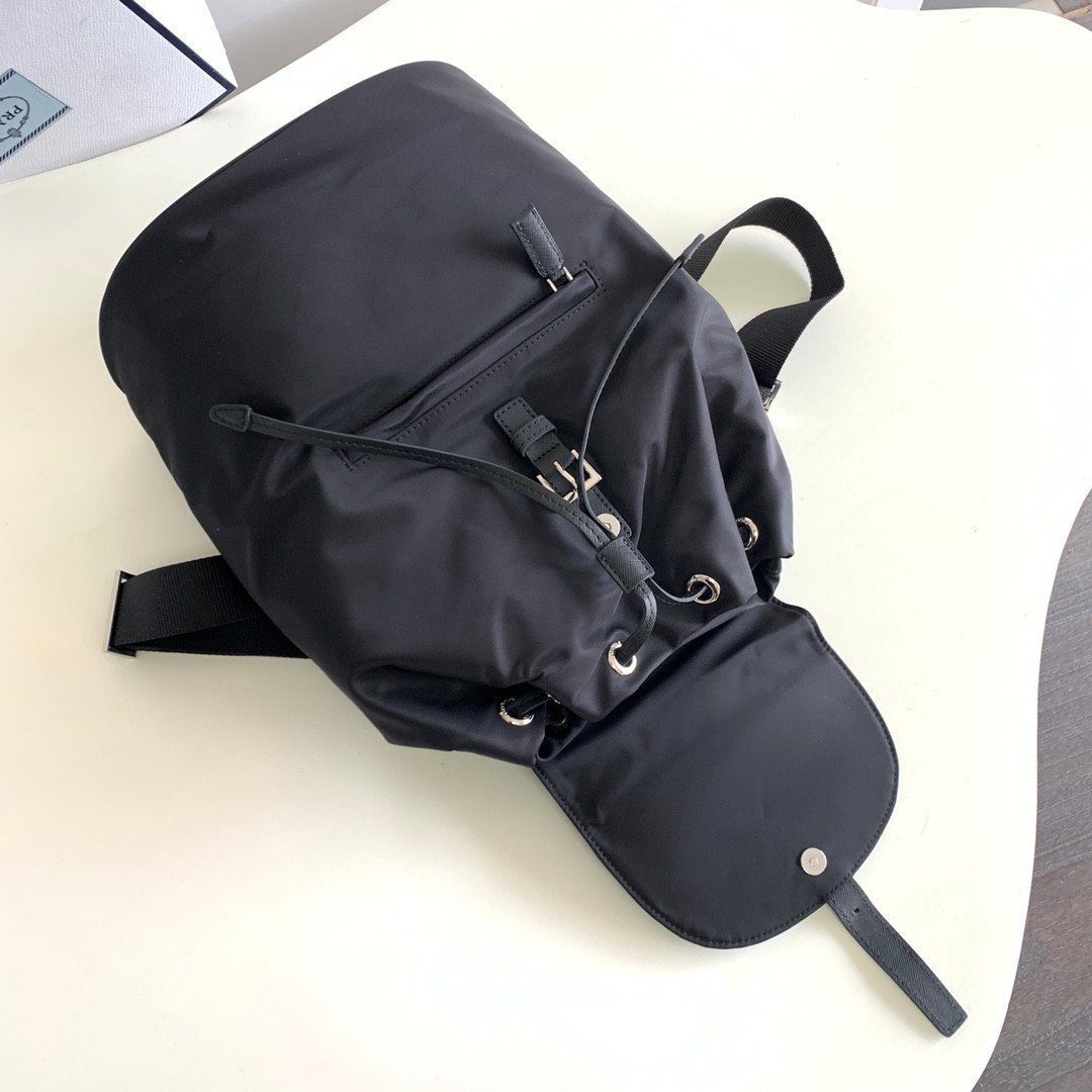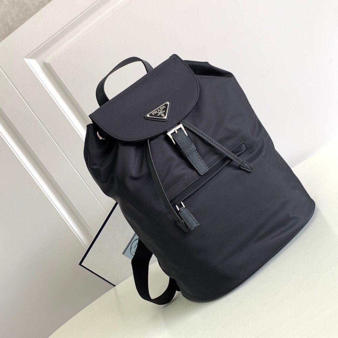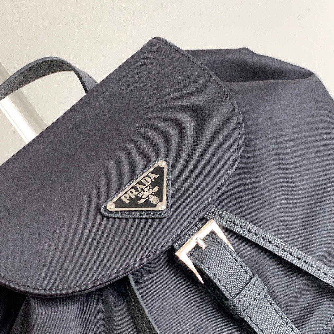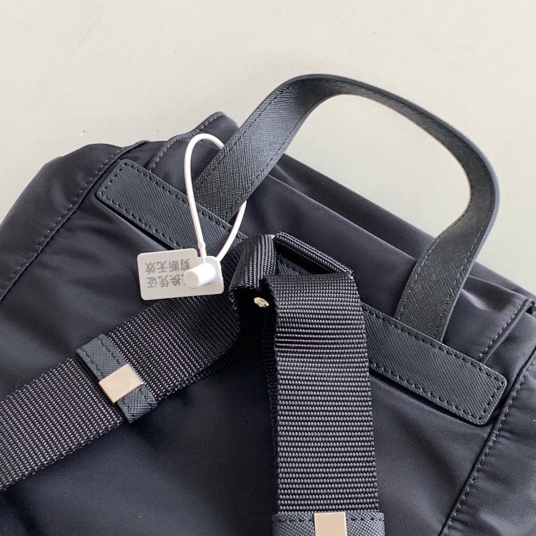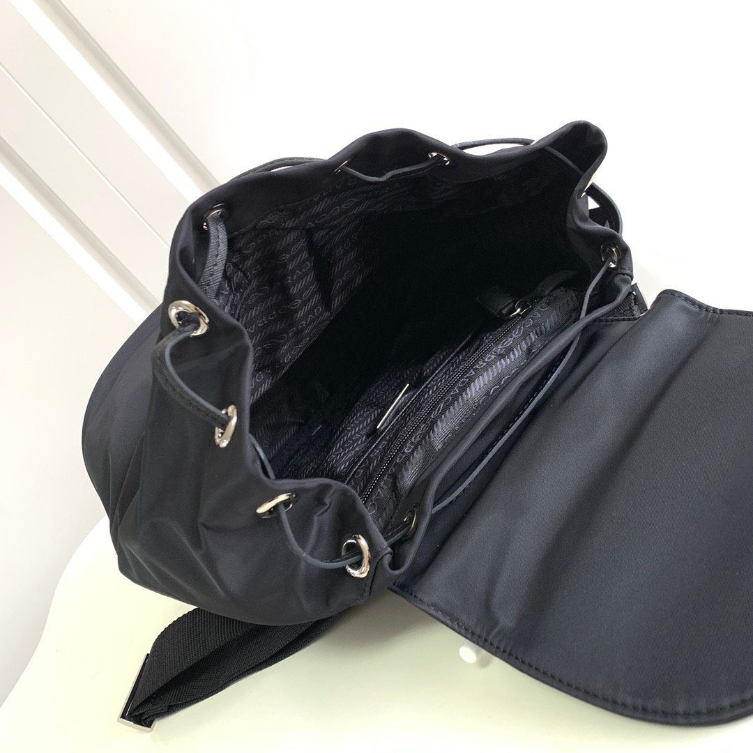 这款双肩包在设计上充分考量了极致的实用性,配备可调节的编织肩带,确保佩戴舒适且贴合身形。包盖通过时尚的搭扣与磁吸扣轻松固定,开启后即可见宽敞的主收纳空间,内衬采用 Prada 标志性的品牌印花面料。为了提供更高效的收纳体验,包身外部设有一个便捷的拉链口袋,便于快速存取常用物品;内部则配有一个安全的拉链口袋,用于妥善保管您的贵重物品。