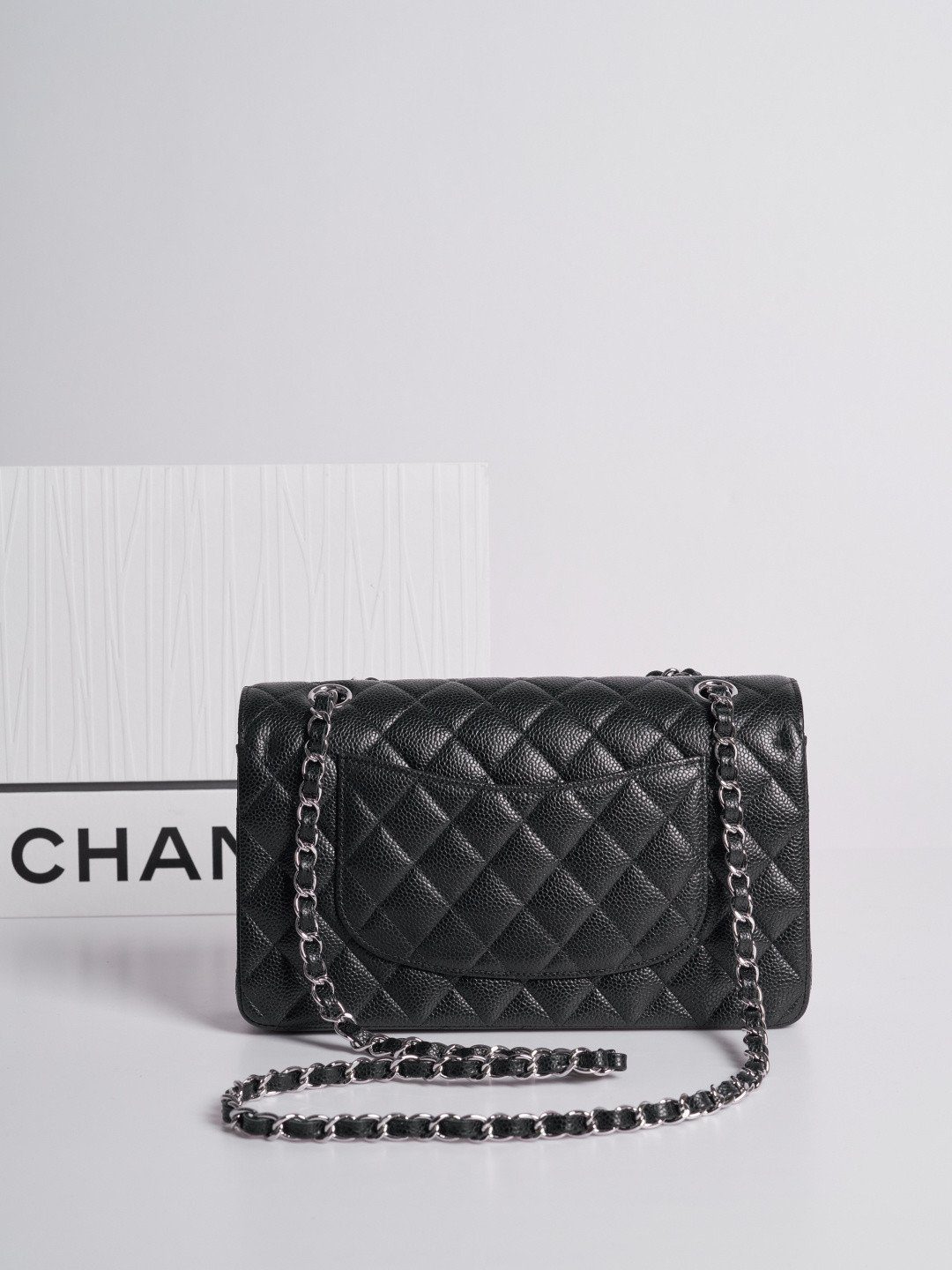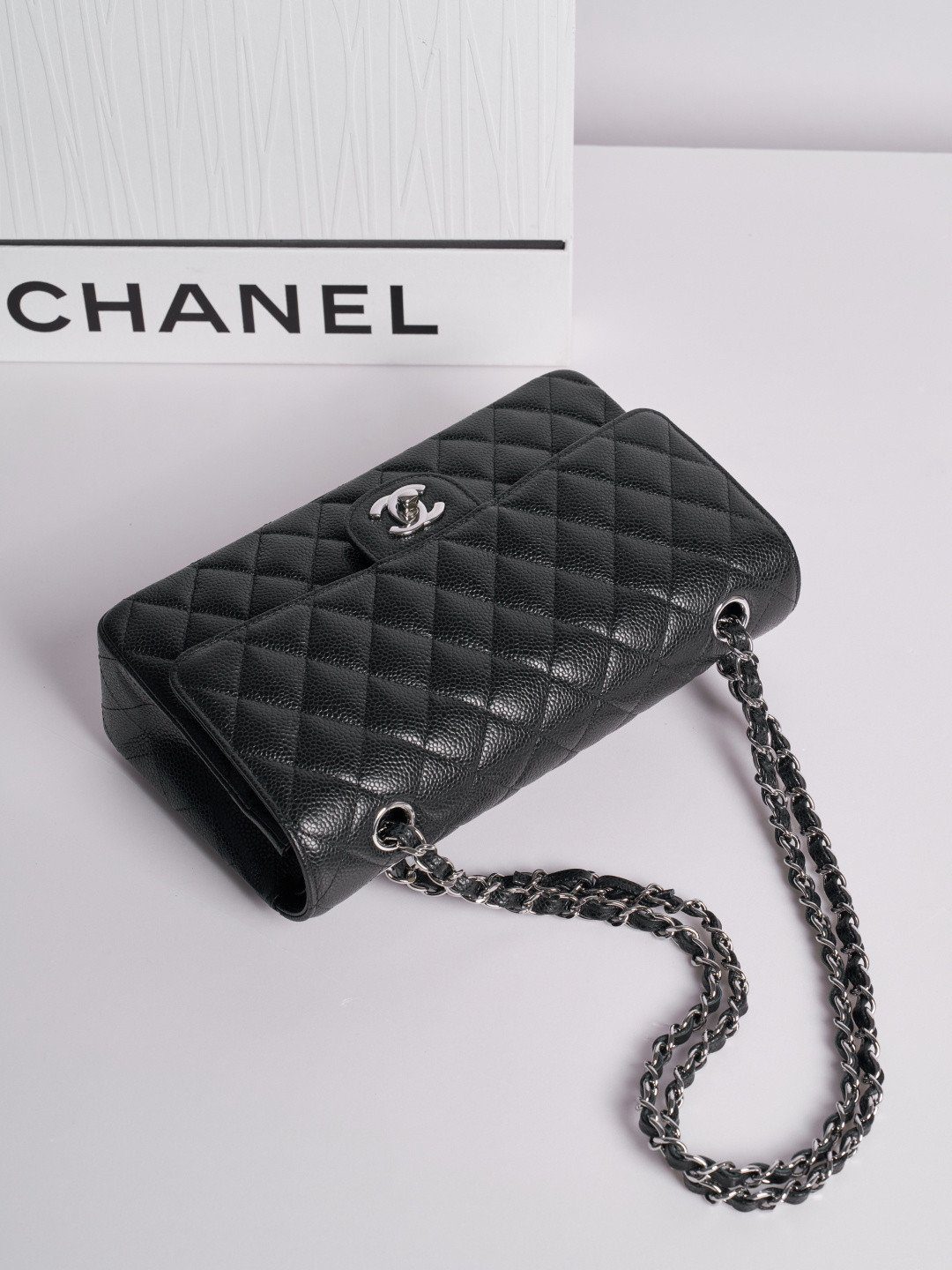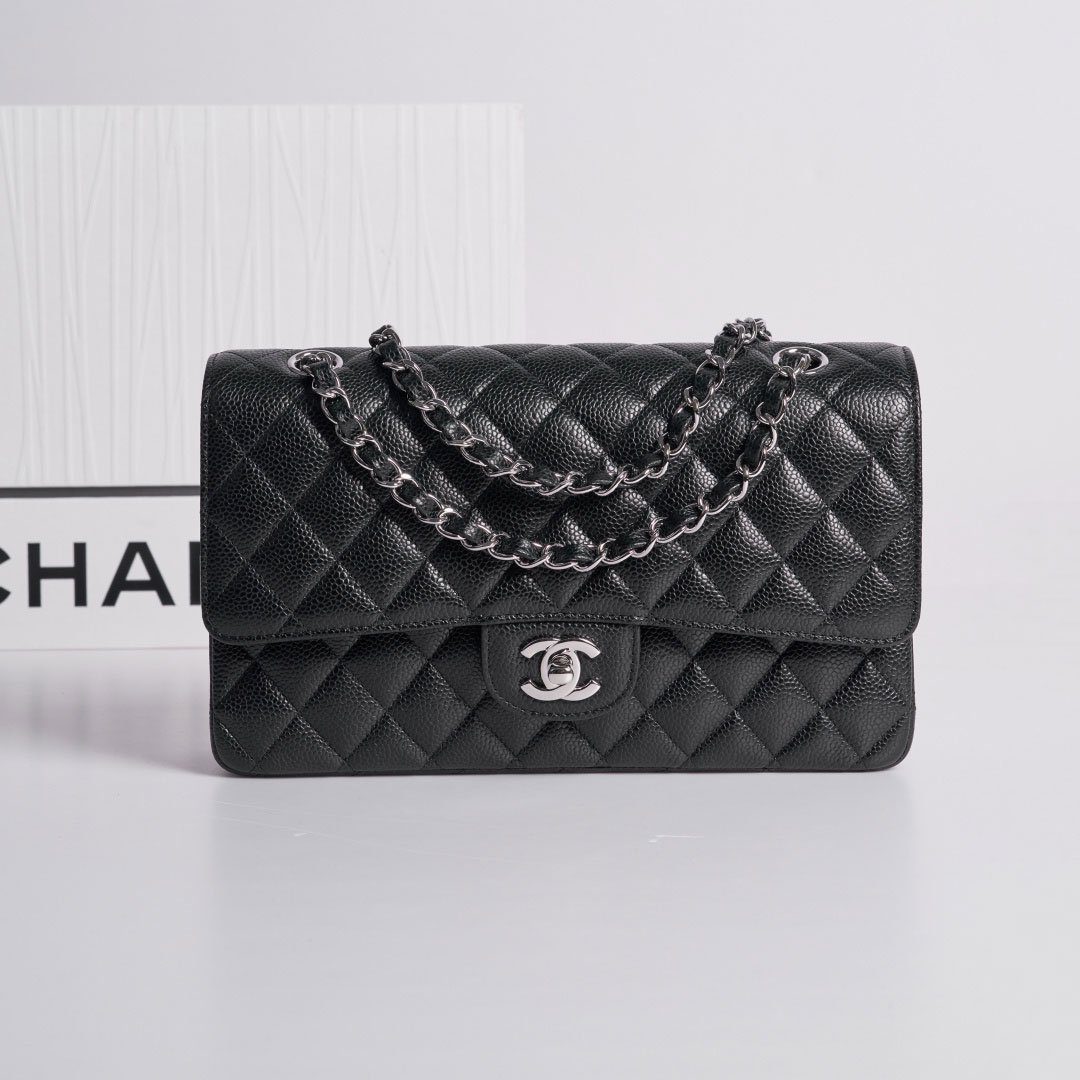 成为第一个评论者 “香奈儿 中号 经典翻盖包25.5厘米 Timeless 黑色 Haas Caviar 皮革 银色 五金”