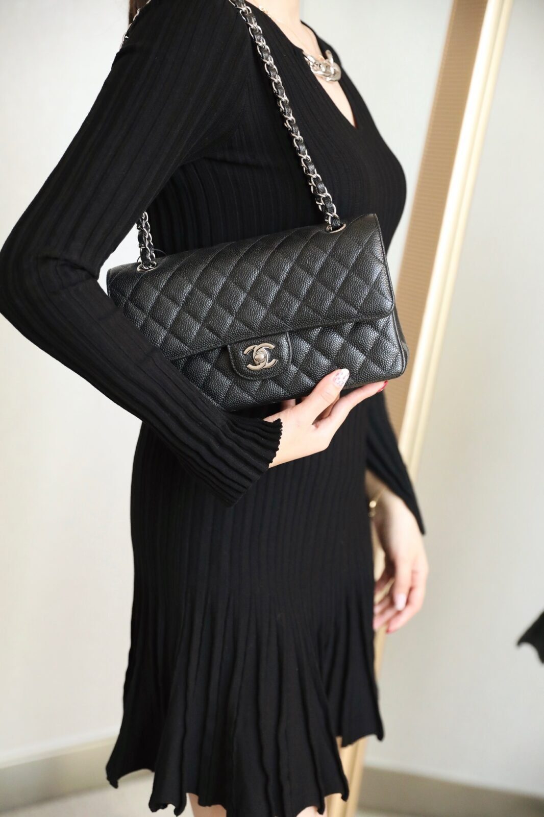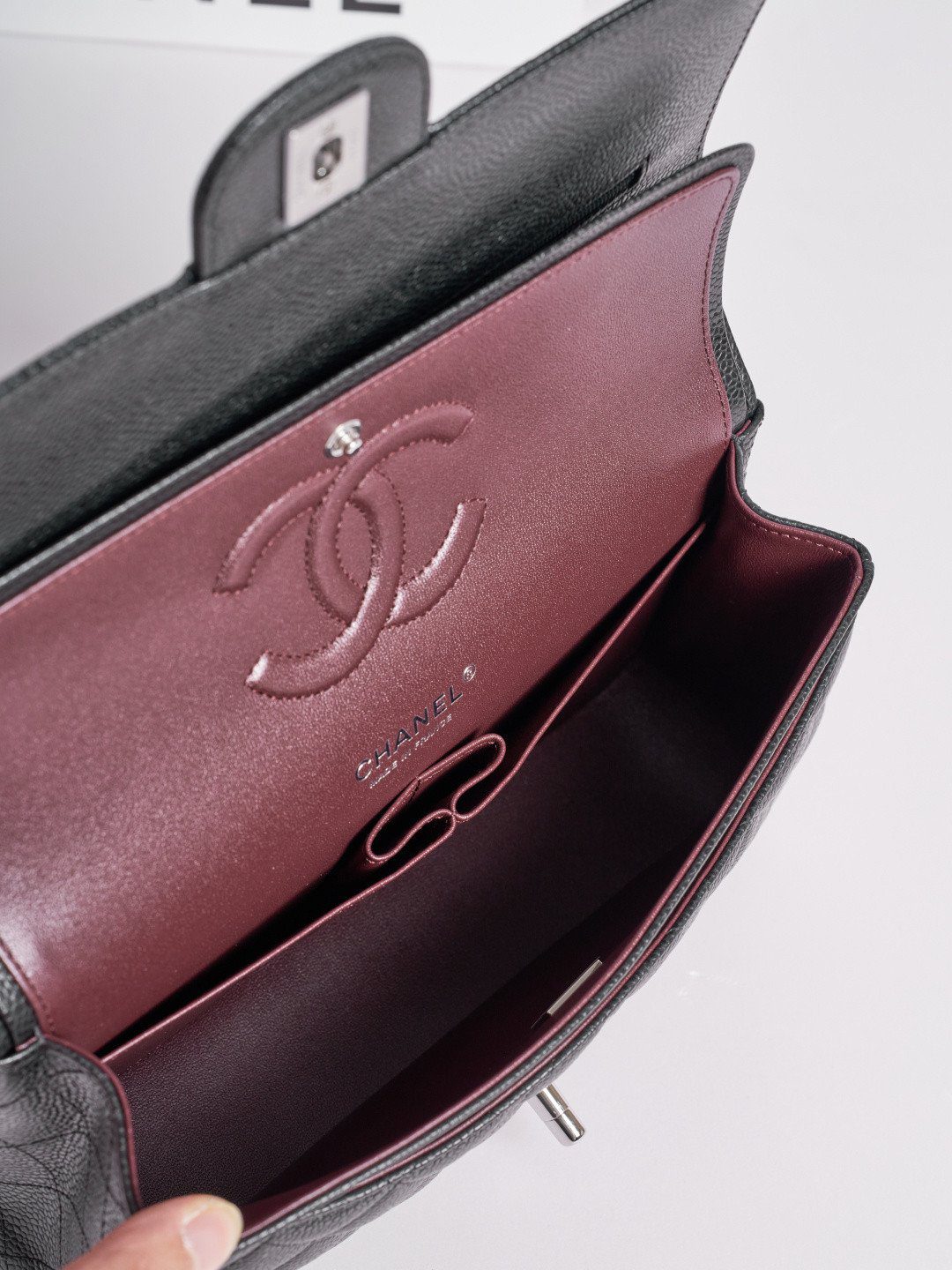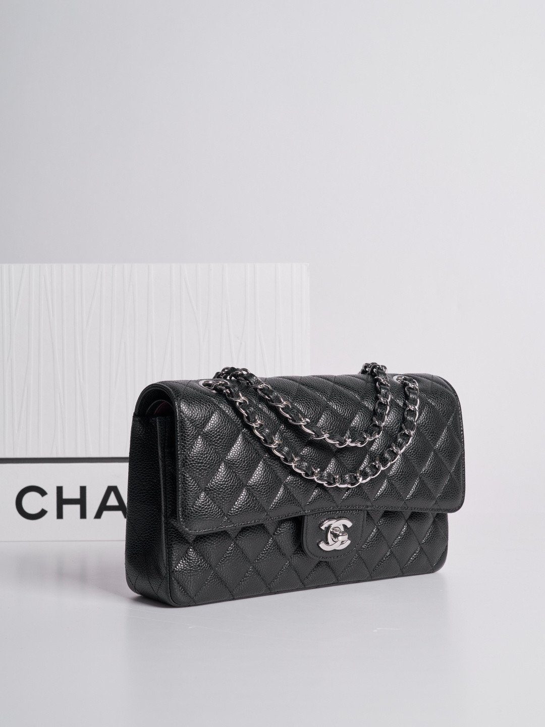 成为第一个评论者 “香奈儿 中号 经典翻盖包25.5厘米 Timeless 黑色 Haas Caviar 皮革 银色 五金”
