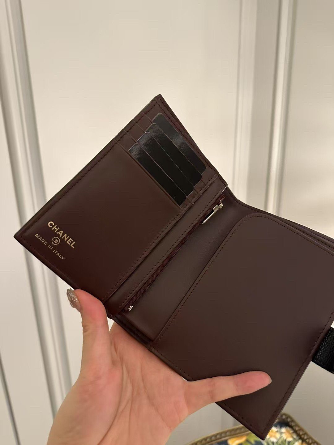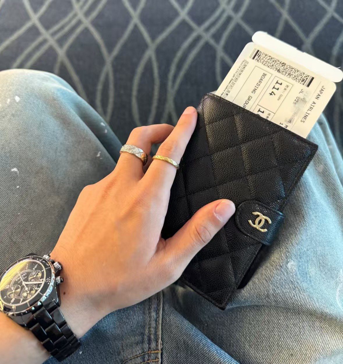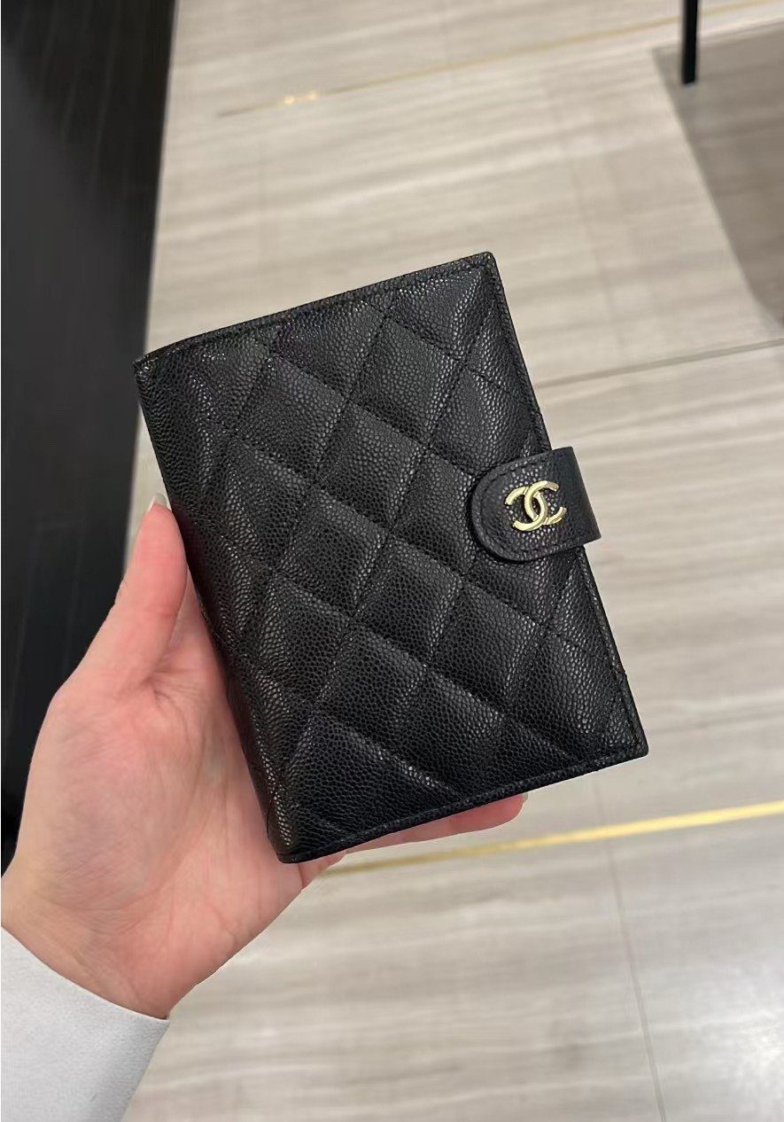 细节尽显奢华:用这款永恒经典的 Chanel 护照夹,提升您的旅行必备品格调。它选用经过严苛甄选的顶级头层小牛皮精制而成,饰有 Chanel 标志性的菱格纹图案,搭配深邃优雅的黑色调,完美衬托您的任何造型。这不仅仅是一件配饰,更是您优雅品味的宣言。