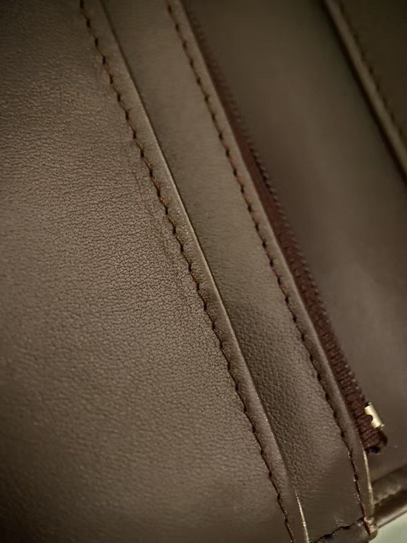 精致鱼子酱纹理皮革:皮革原料直接源自最高品质的切割部门(例如与著名的 Hass 皮革厂合作的供应商),其呈现的中小粒径鱼子酱纹理极其紧密且轮廓分明。每一粒纹理都独一无二、形态各异,充分展现了皮革本身的天然特性。皮质触感丰润,带有深沉饱满的油润感;近距离观察时,甚至能清晰可见其天然、透气的毛孔结构。这种通体染色的头层小牛皮不仅柔韧耐用,更会随着时间的推移,逐渐养出迷人的包浆光泽。