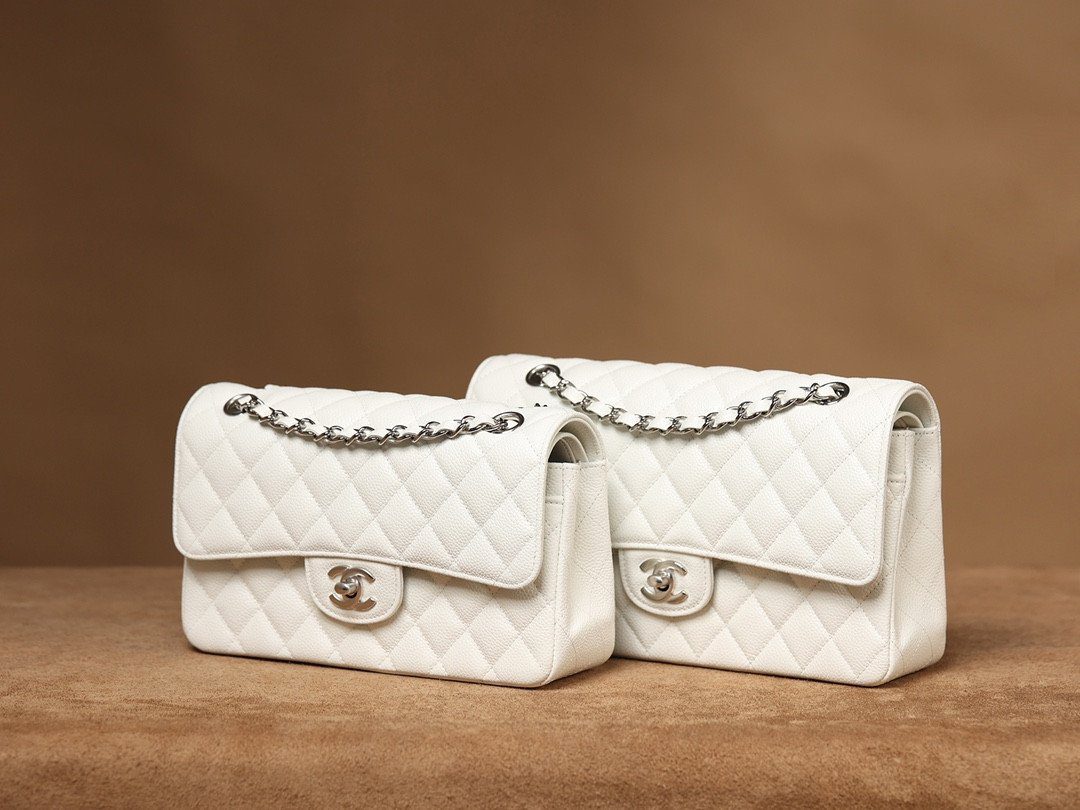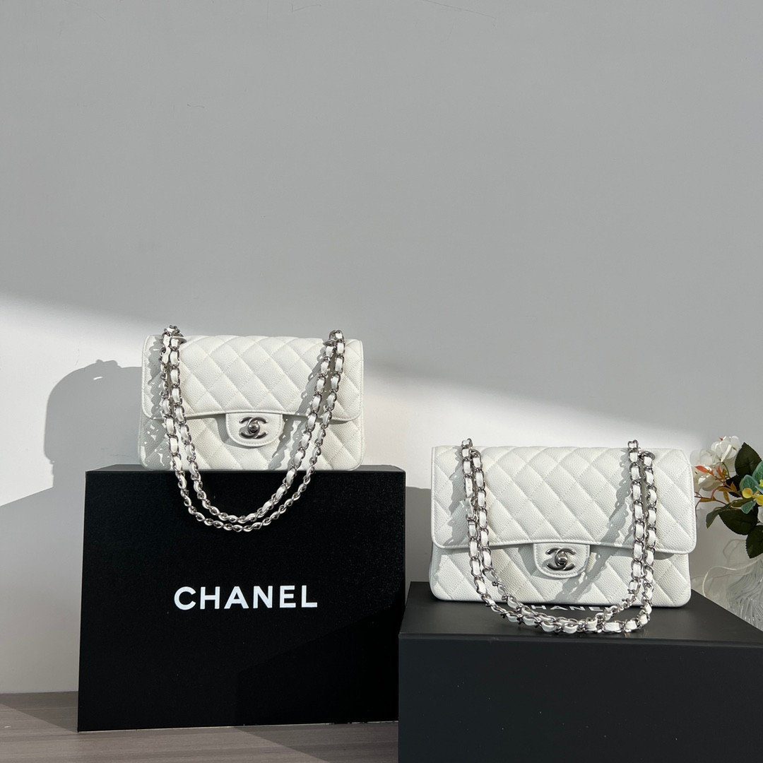 香奈儿 白色 Caviar 皮革 经典翻盖包 银色调 五金 2 种颜色