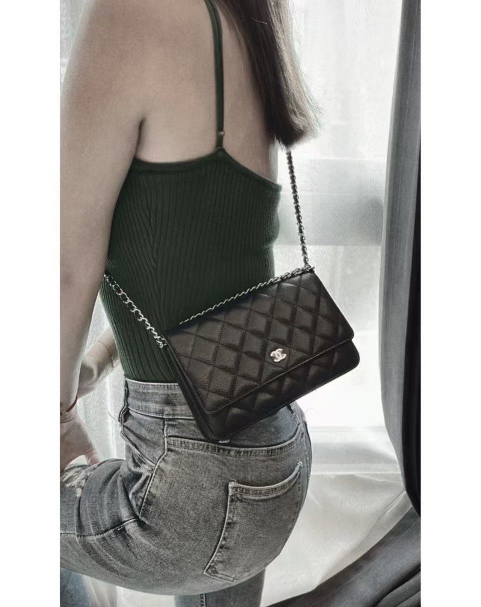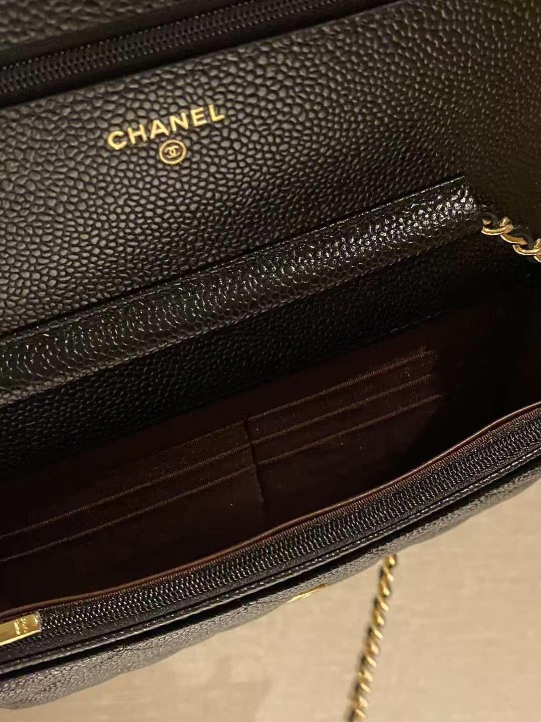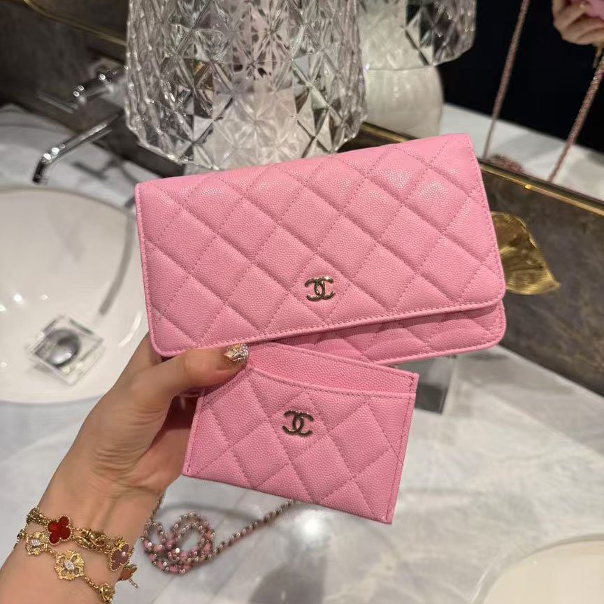 用这款精致非凡的 Chanel 经典链条钱包(WOC)来提升您的收藏品味吧——这是一款兼具永恒魅力与实用功能的完美配饰。此款单品采用享誉业界的“Hass”鱼子酱皮精心打造,所用皮革直接源自原厂供应商的顶级选材。若仔细端详(尤其是在放大镜下观察),您会发现只有真正的鱼子酱皮才具备的那种独特的、不规则的天然纹理;得益于高品质的滚筒染色工艺,皮革表面的天然毛孔痕迹依然清晰可见。