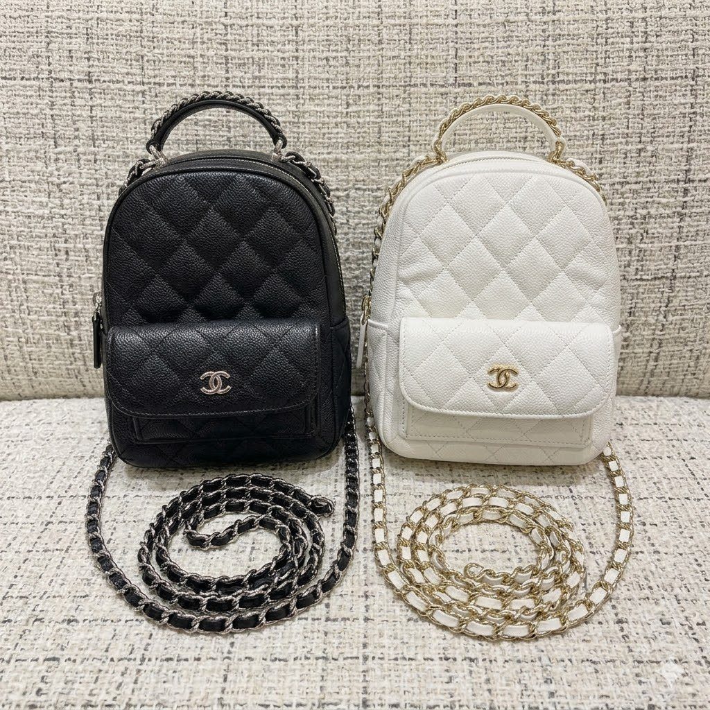 经典传承,细节精致:包身正面饰有标志性的双C(CC)互扣金属Logo。搭配品牌标志性的皮穿链肩带,无论是单肩背负还是作为传统的双肩包使用,都能毫不费力地流露出法式优雅风情。