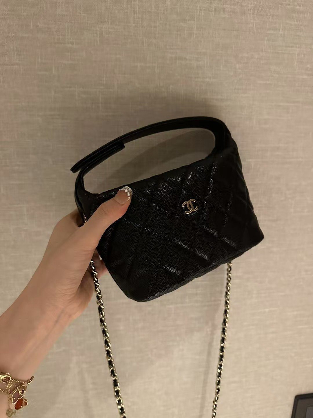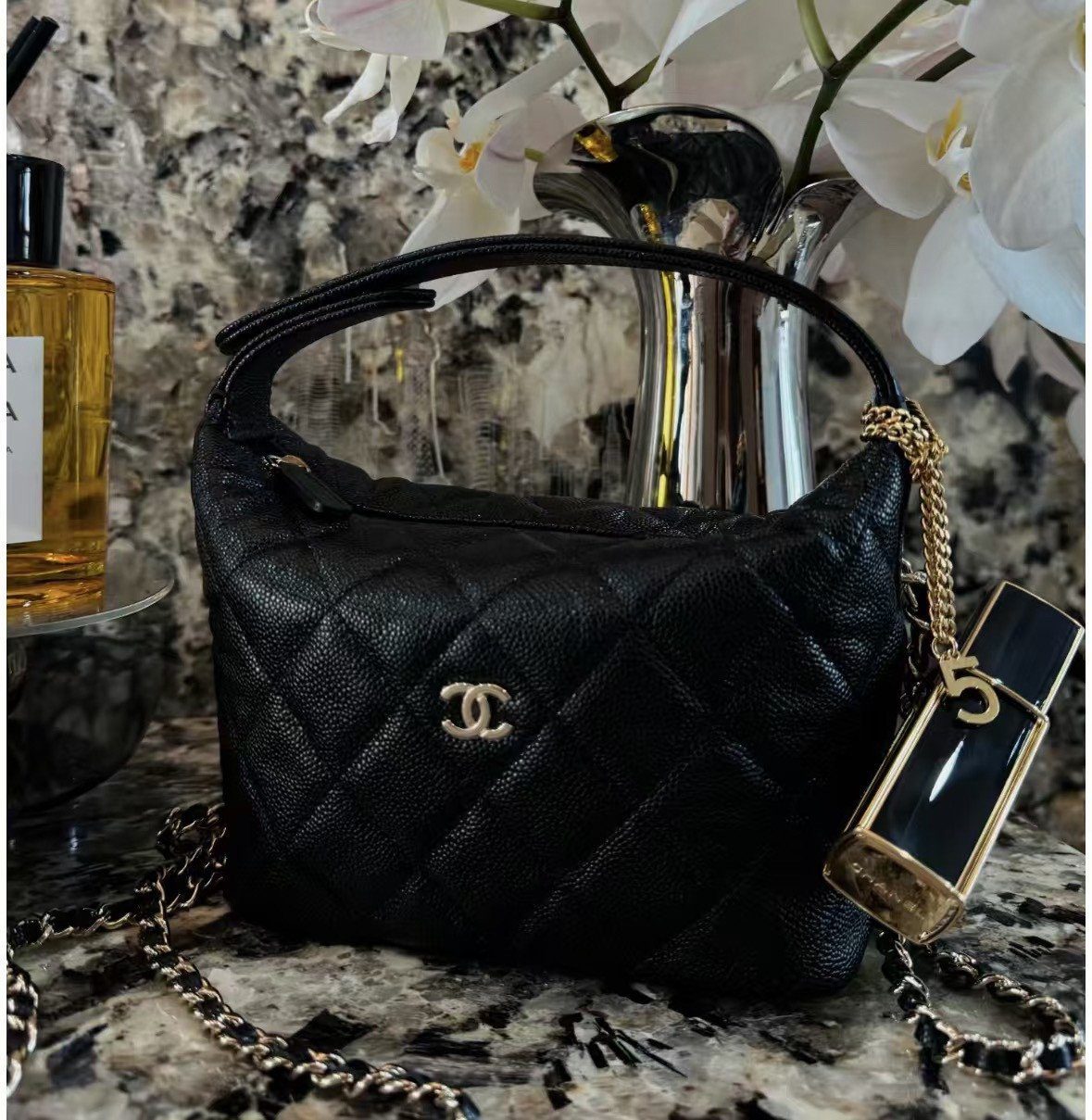 用这款正品 Chanel 小型 Hobo 包为您的藏品增色添彩——它是耐用性与优雅气质的完美融合之作。这款包袋选用正宗的高品质 Hass 粒面小牛皮精制而成,这种皮质素有“鱼子酱皮”(Caviar leather)的美誉。其正宗的 Hass 中粒面纹理呈现出饱满丰润的质感,触感极佳且具有极高的耐用性。精湛的绗缝工艺凸显了皮革天然、浓郁的光泽,营造出一种精致立体的视觉效果,令人一眼便知其纯正的 Chanel 血统。