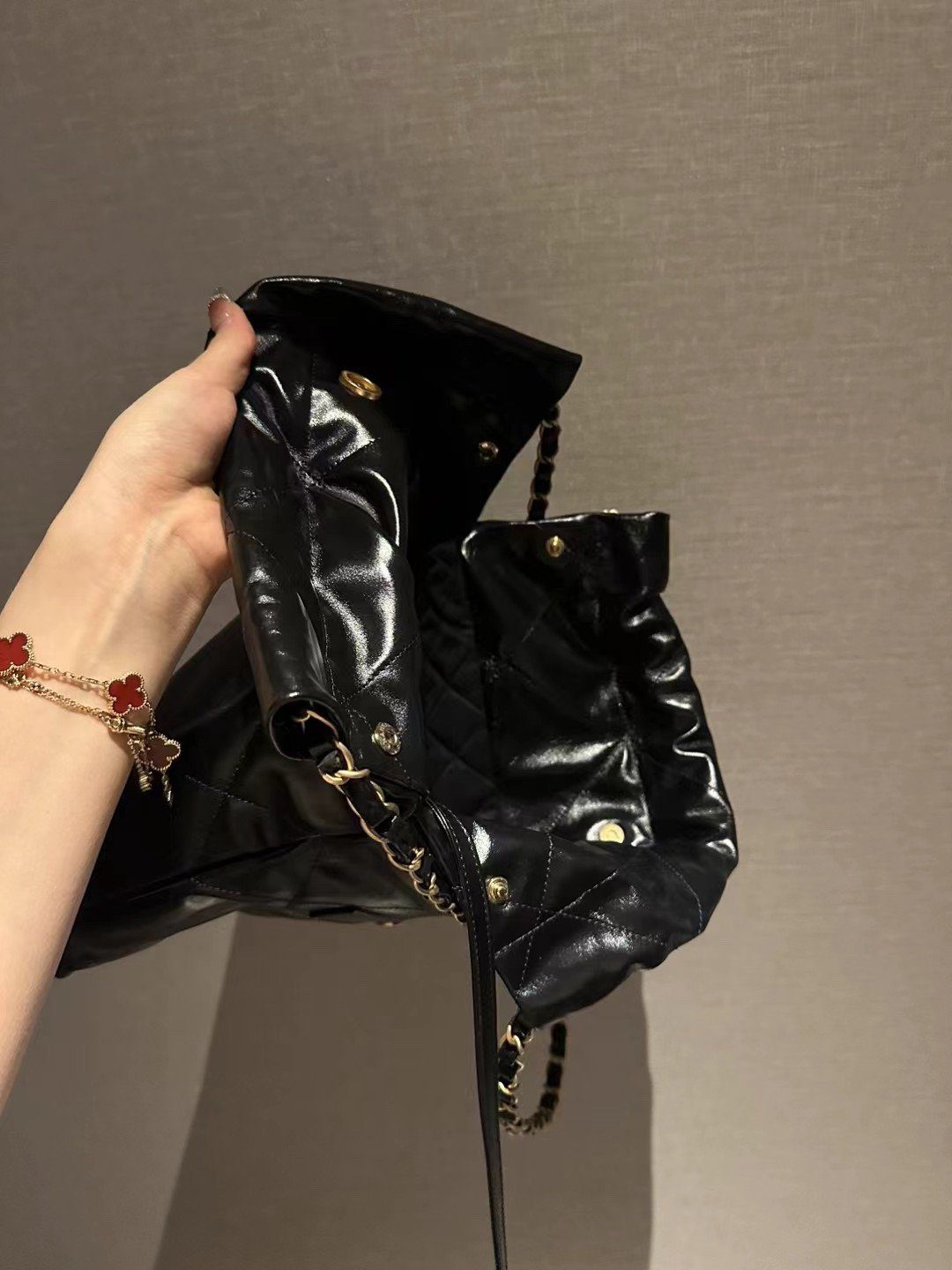 这款精致全新的 Chanel 菱格纹黑色皮革大型 Hobo/托特包,将带您领略永恒的优雅魅力。作为经典风格与现代实用性的完美融合,这款独一无二的单品采用柔软丰润的优质皮革,饰以醒目的大型菱格绗缝;其别致的抽绳式开合设计,巧妙地与品牌标志性的金链皮革交织肩带融为一体。