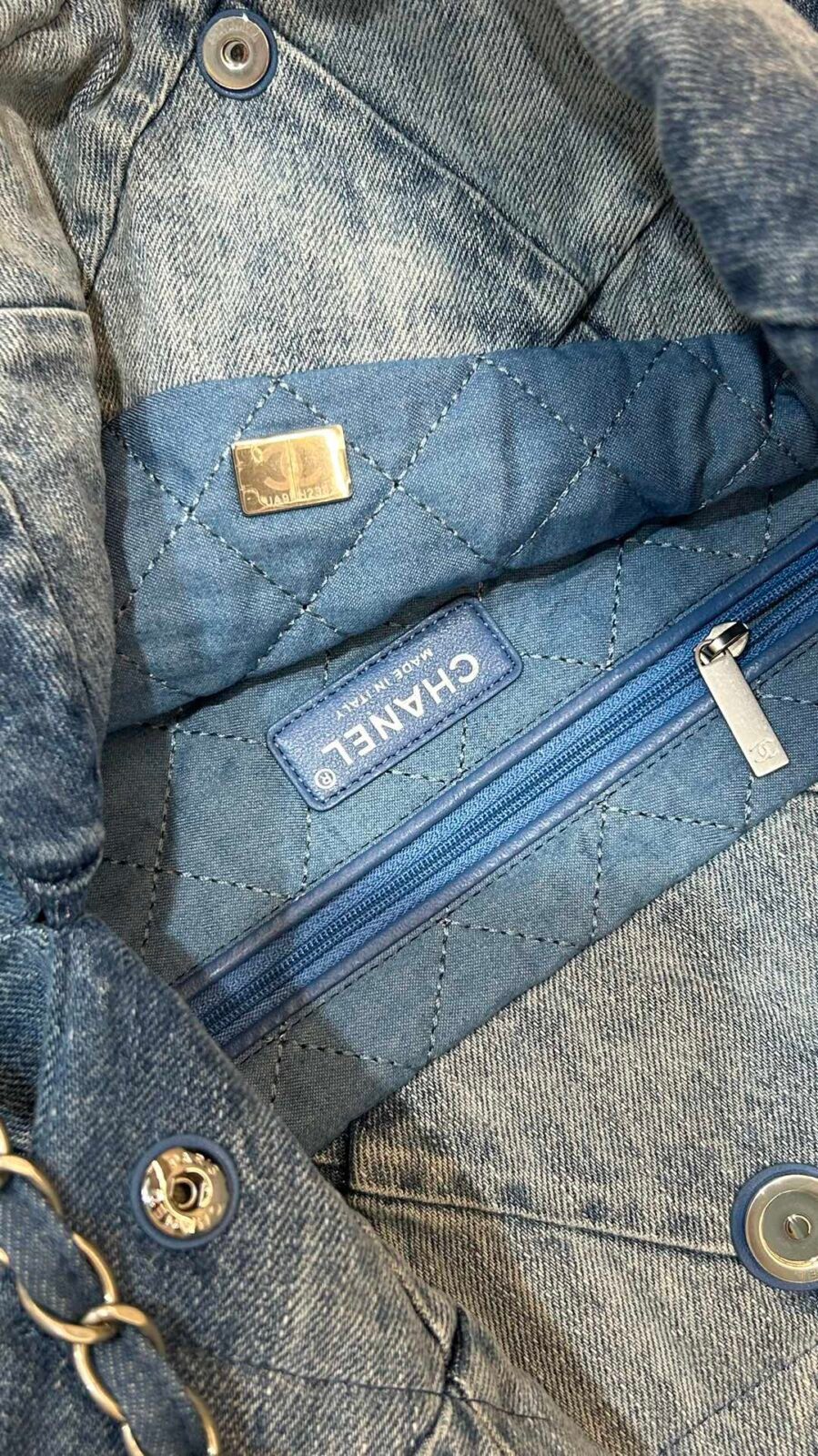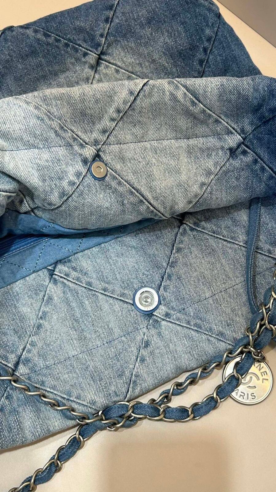 用这款随性优雅的 Chanel 小型 Hobo 包提升您的日常穿搭格调。它采用顶级进口水洗丹宁面料精心打造,触感细腻,质感非凡。包身饰有品牌标志性的菱格纹绗缝工艺,呈现出一种慵懒随性的廓形,完美融合了休闲魅力与奢华格调。包身正面点缀着标志性的“CHANEL”金属字母标识,采用光泽感十足的银色饰面,尽显精致品味。