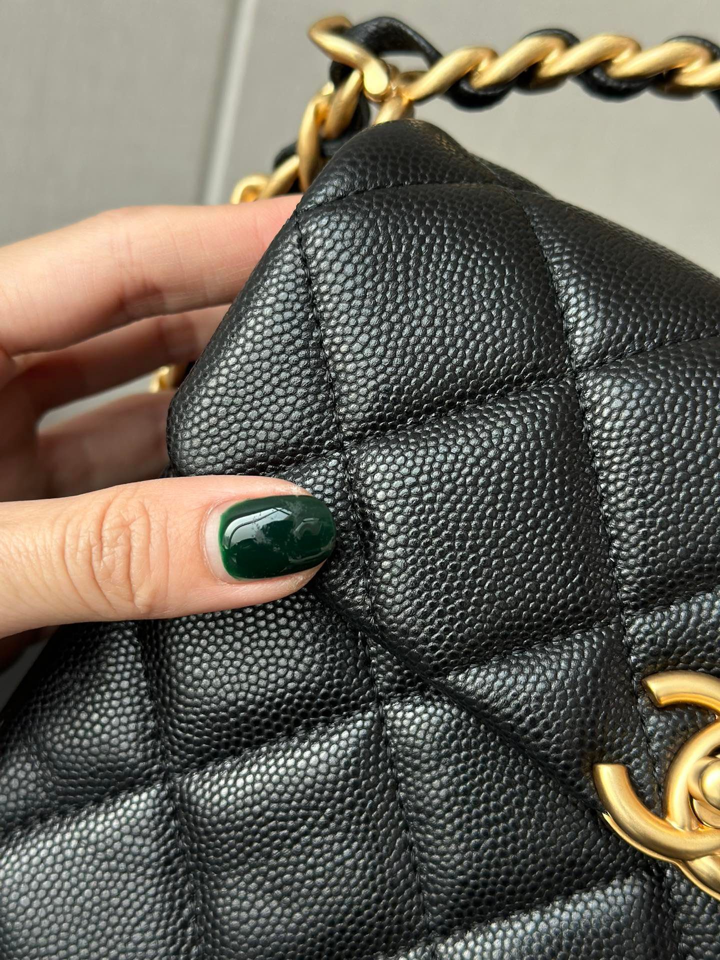 标志性设计:两种皮革版本均饰有 Chanel 经典的菱格纹绗缝工艺,并配有一枚璀璨夺目的金色 CC 旋扣。
