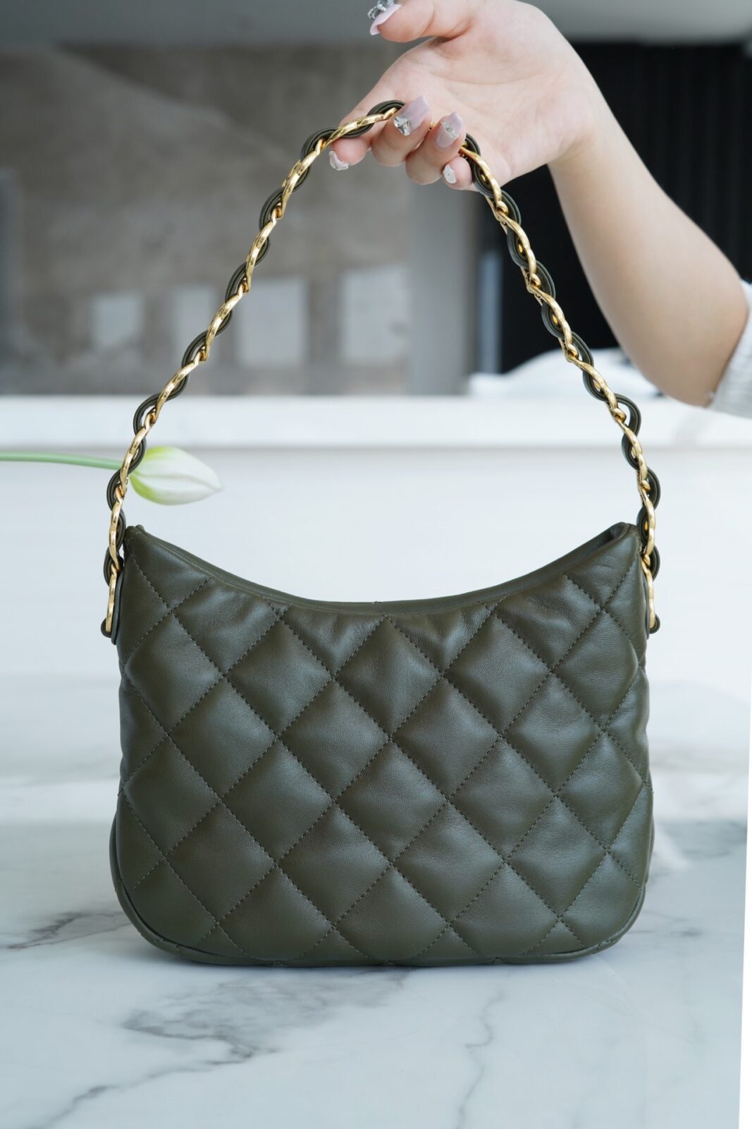 CHANEL 22K 复古 Hobo 腋下包 24cm 臻选柔软小羊皮与经典斜纹软呢