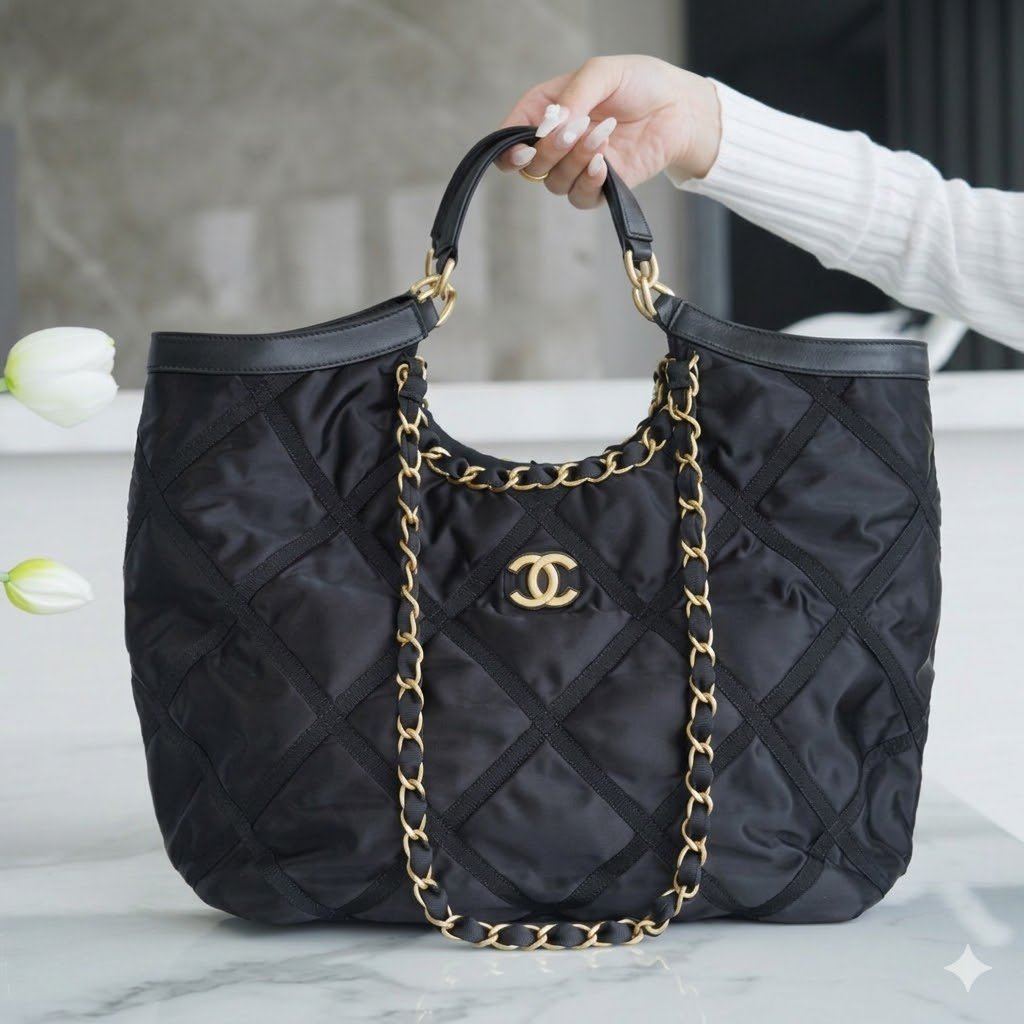 将高级时装的经典传承与现代生活的实用功能完美融合,以此升华您的日常穿搭。作为备受追捧的 Chanel 22P 春夏系列第一篇章(Act 1)的成员,这款大号菱格纹尼龙购物包标志着品牌向“功能性奢华”理念的一次优雅转型。它专为现代女性而设计——那些在忙碌生活中依然坚持对风格毫不妥协的女性;这款托特包在保持 Chanel 标志性美学的同时,呈现出既美观又耐用的包型轮廓。无论您是前往办公室办公、穿梭于世界各地旅行,还是享受周末的购物时光,这款单品都是对“永恒优雅”在21世纪语境下重新演绎的最佳佐证。