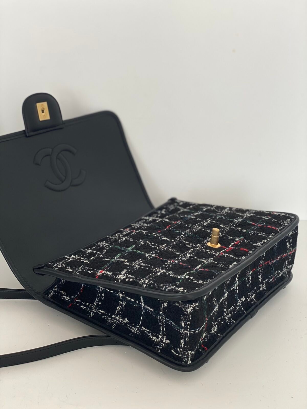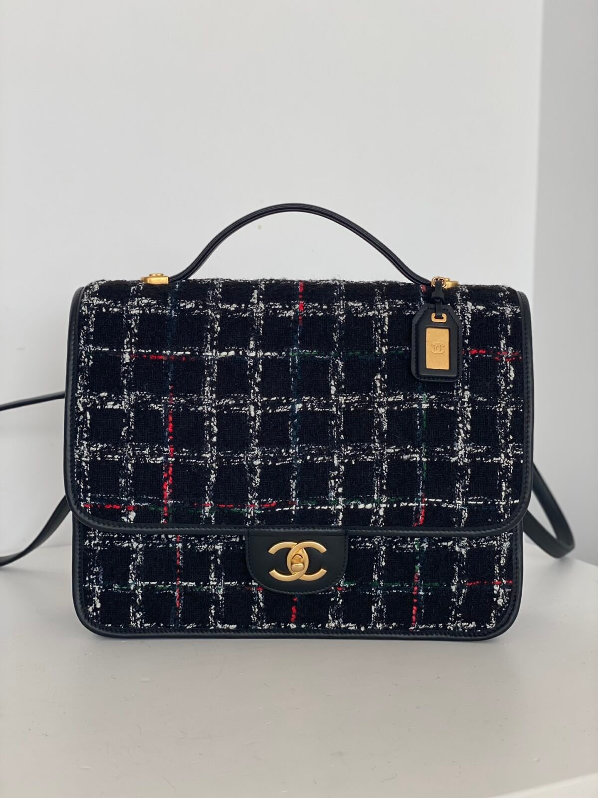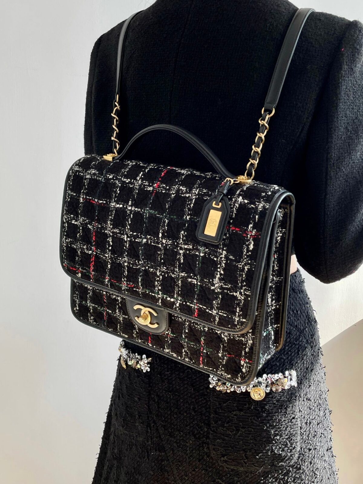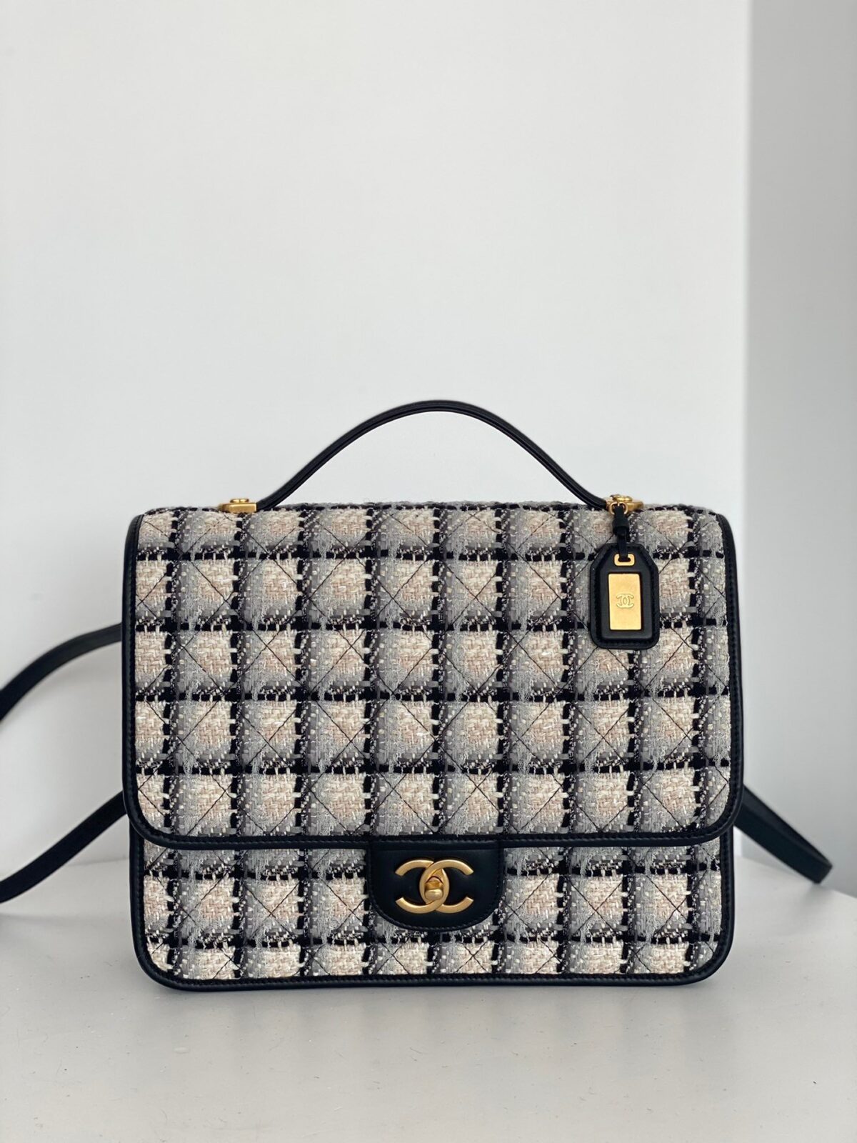 精湛工艺与非凡质感——这款包袋选用色彩层次丰富、色调变幻多姿的斜纹软呢面料,带来极具格调的触感体验。提供经典的“炭灰拼色”与优雅的“灰白格纹”两种款式选择;其精密的编织纹理与优质皮革饰边相得益彰,并辅以品牌标志性的交织链条细节作为点缀。包身前翻盖处镶嵌着传奇般的金色双C(CC)旋扣,既确保了包袋的安全闭合,又如同一座灯塔般彰显着高级时装的深厚传承。包身廓形既挺括有型又不失柔韧触感,在保持完美包型的同时,兼具奢华斜纹软呢特有的柔和质感。