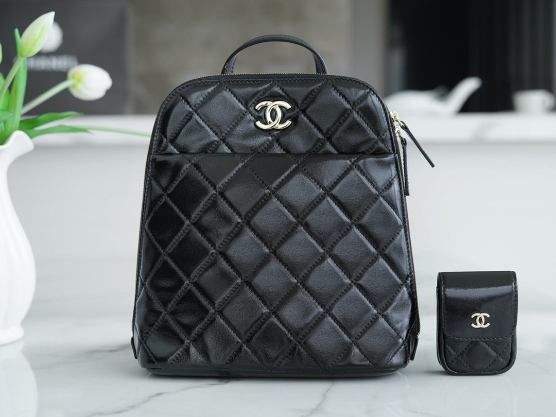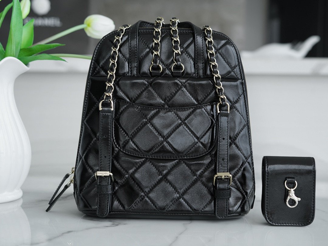 香奈儿CHANEL 22A 高级工坊系列 光泽小牛皮双肩包 配可拆卸迷你小袋 皮质都市背包