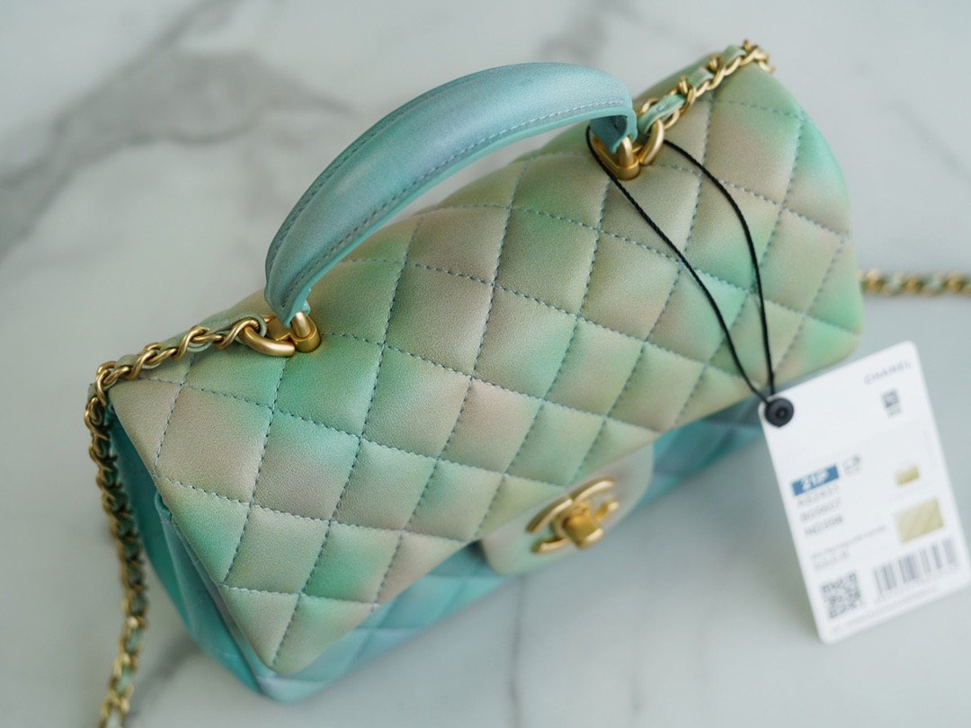 Chanel 2022春夏(22P)系列不仅仅是推出了一款新配饰,更是一段传奇的诞生。这款带有顶部手柄的 Mini Classic Flap(Mini CF),被收藏家们广泛誉为“22P 包袋之王”,堪称风格融合的巅峰之作。它天衣无缝地结合了 Mini CF 系列那小巧迷人的经典轮廓,以及 Coco Handle 系列那精致考究的包身结构。如果您正在寻觅一款既兼具“经典”底蕴又不失“端庄优雅”气质的单品,那么它无疑是您的不二之选。