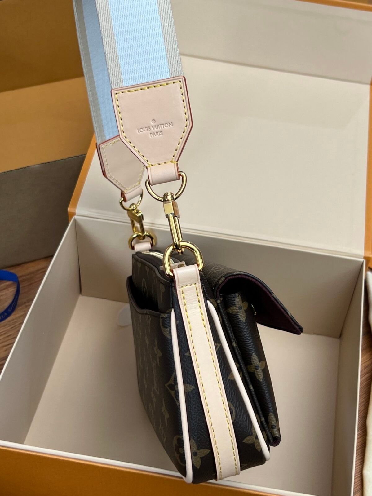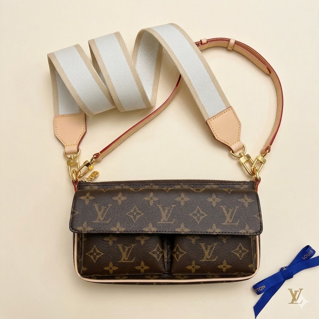 织物肩带:若想打造充满运动活力与都市气息的时尚“Vibe”,这条宽版织物肩带便是您的不二之选。它饰有醒目的条纹图案,并点缀着标志性的 LV Circle 圆形标识。这条肩带尤为适合斜挎背携,不仅能为您提供全天候的舒适体验,更能为您的整体造型注入一丝前卫的街头时尚格调。