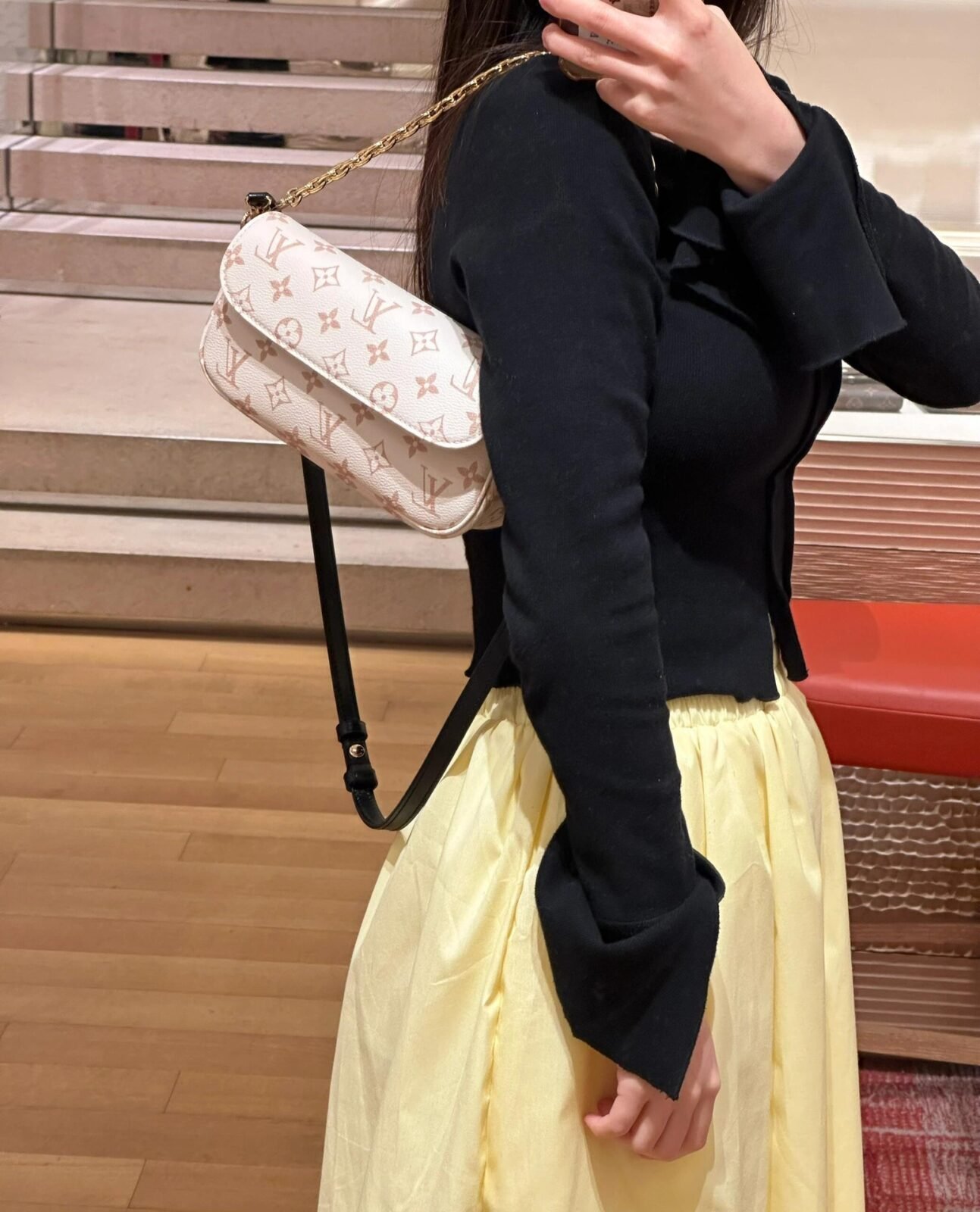 极致的多功能性:双重背带设计——多功能性是 Wallet On Chain Ivy 设计理念的核心所在。路易威登深知现代生活方式对灵活适应性的需求,因此为这款包袋配备了两种截然不同且均可完全拆卸的背携方式。若想增添一抹 unmistakable 的迷人魅力,打造适合晚间场合的优雅风情,包袋配有一条光泽璀璨的金色粗链条。这条精致的链条在光线下熠熠生辉,既可用于演绎优雅的短肩背造型,亦可作为时尚的手拿包使用。当您的一天需要更轻松随性、解放双手的背携方式时,只需装上那条柔软细腻的黑色皮革背带即可。这条皮革背带长度完全可调,让您可以舒适地将包袋单肩背负或斜挎,轻松适应您的身高及个人造型偏好。