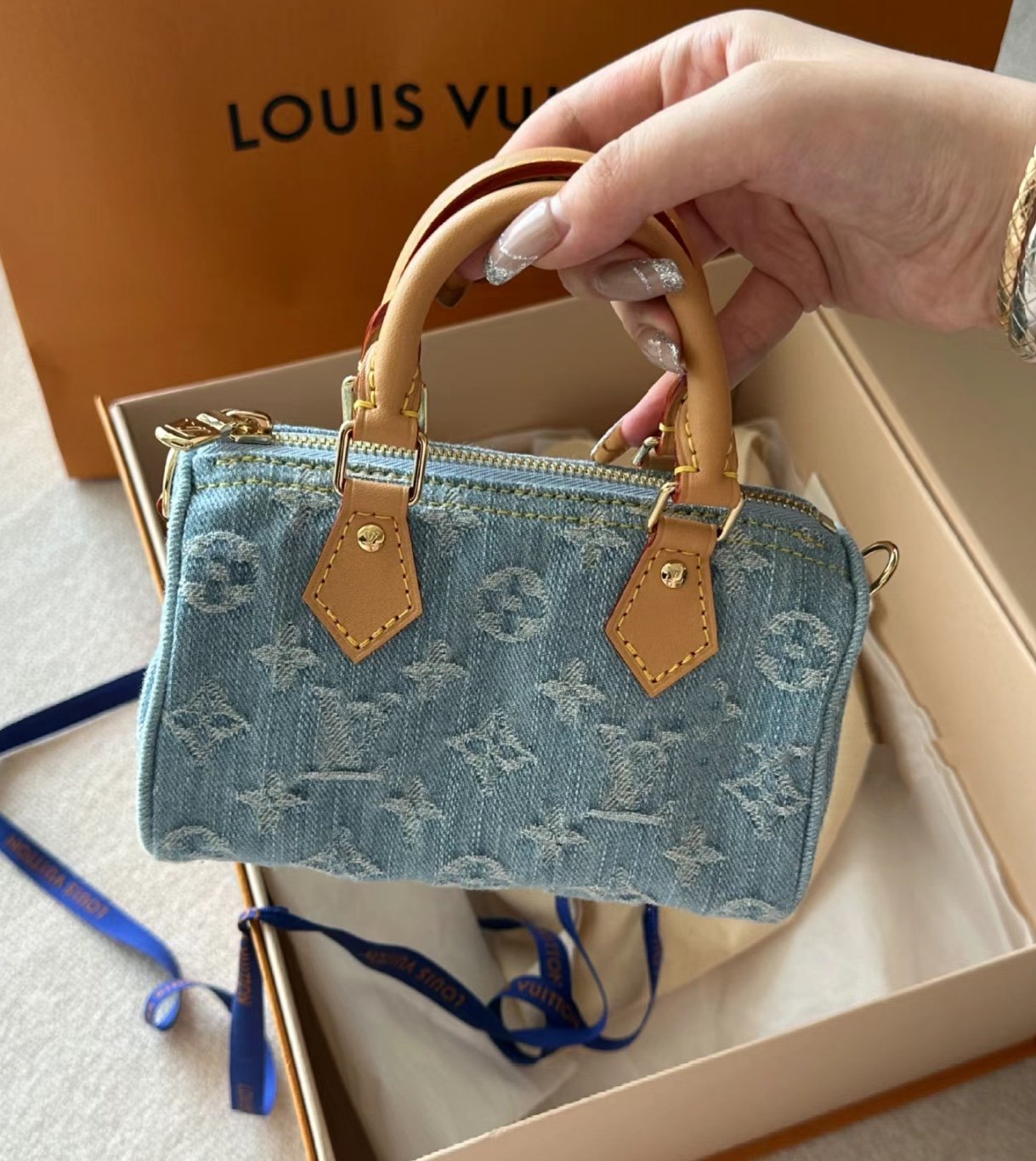 产品概览:路易威登(Louis Vuitton)Nano Speedy 系列在其传奇般的奢侈品家族中,始终占据着“永恒经典”且无可争议的地位。它是配饰领域的典范之作,一款绝不会出错的完美单品——您可以满怀信心地将其收入囊中,因为深知它永远不会过时或被时尚潮流所淘汰。两年前,该系列的经典棕色 Monogram 帆布版本横空出世,彻底打破了业界的销售天花板,引发了一场巨大的抢购热潮;无数时尚爱好者因未能抢购到手而深感遗憾。如果您当时不幸错失良机,那么这一次,您绝不能再让这款令人惊艳的全新力作从指尖溜走。我们倍感荣幸地为您呈现本年度最新的季节限定杰作:路易威登 Nano Speedy 限定版——浅蓝色丹宁款。它散发出一种轻松自在、毫不费力的时尚感以及深邃的格调,瞬间就能提升您整体衣橱的时尚品味。