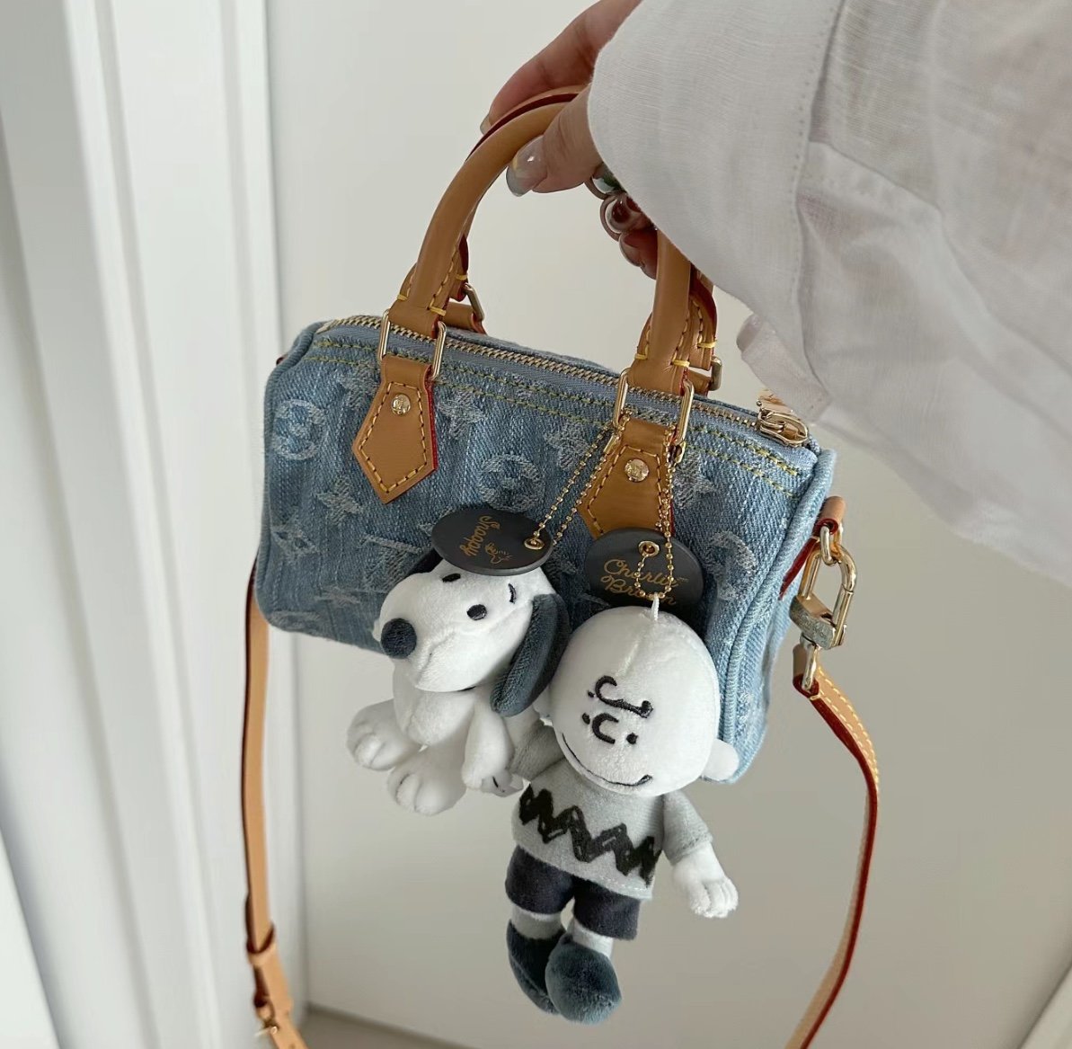 **Nano Speedy 的时尚搭配指南** 这款浅蓝色丹宁特别版的魅力,在于其无与伦比的搭配灵活性。它以一种从容优雅的姿态,完美融合了高端奢华与日常街头风格。您可以将其搭配心仪的清爽白色夏日连衣裙与凉鞋,打造出轻盈浪漫的周末造型;亦可将其斜挎于身,搭配剪裁利落的西装外套、简约白 T 恤及复古牛仔裤,演绎出极具时尚感的“双重丹宁”(Double Denim)美学。其柔和的粉彩浅色调,宛如一抹美妙且低调的点睛之笔,能与米色、奶油色、灰色等中性色调完美相衬。
