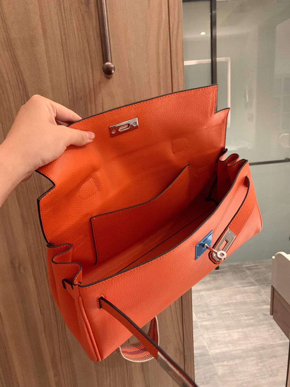 大师级工艺与顶级材质——这款手袋选用顶级全粒面皮革精制而成,其卓越的耐用性与奢华的触感令人赞叹。与市面上批量生产的同类产品截然不同,我们的 Kelly Elan 采用了“全皮”结构——这意味着无论是包袋的外层还是内衬,均由同一批顶级皮革打造而成。